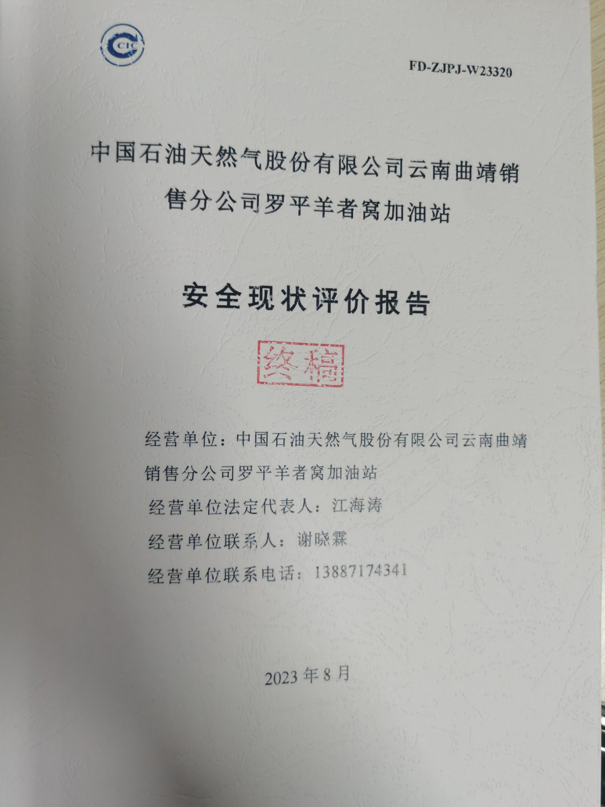 中國石油天然氣股份有限公司云南曲靖銷售分公司羅平羊者窩加油站 安全現(xiàn)狀評(píng)價(jià)報(bào)告