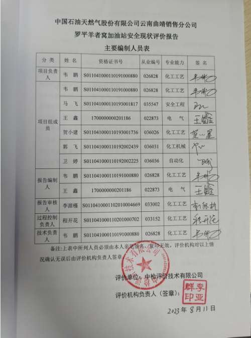 項(xiàng)目名稱 | 中國石油天然氣股份有限公司云南曲靖銷售分公司羅平羊者窩加油站 安全現(xiàn)狀評(píng)價(jià)報(bào)告 | ||||||