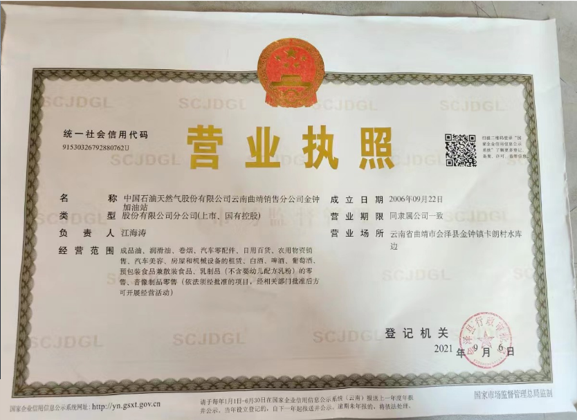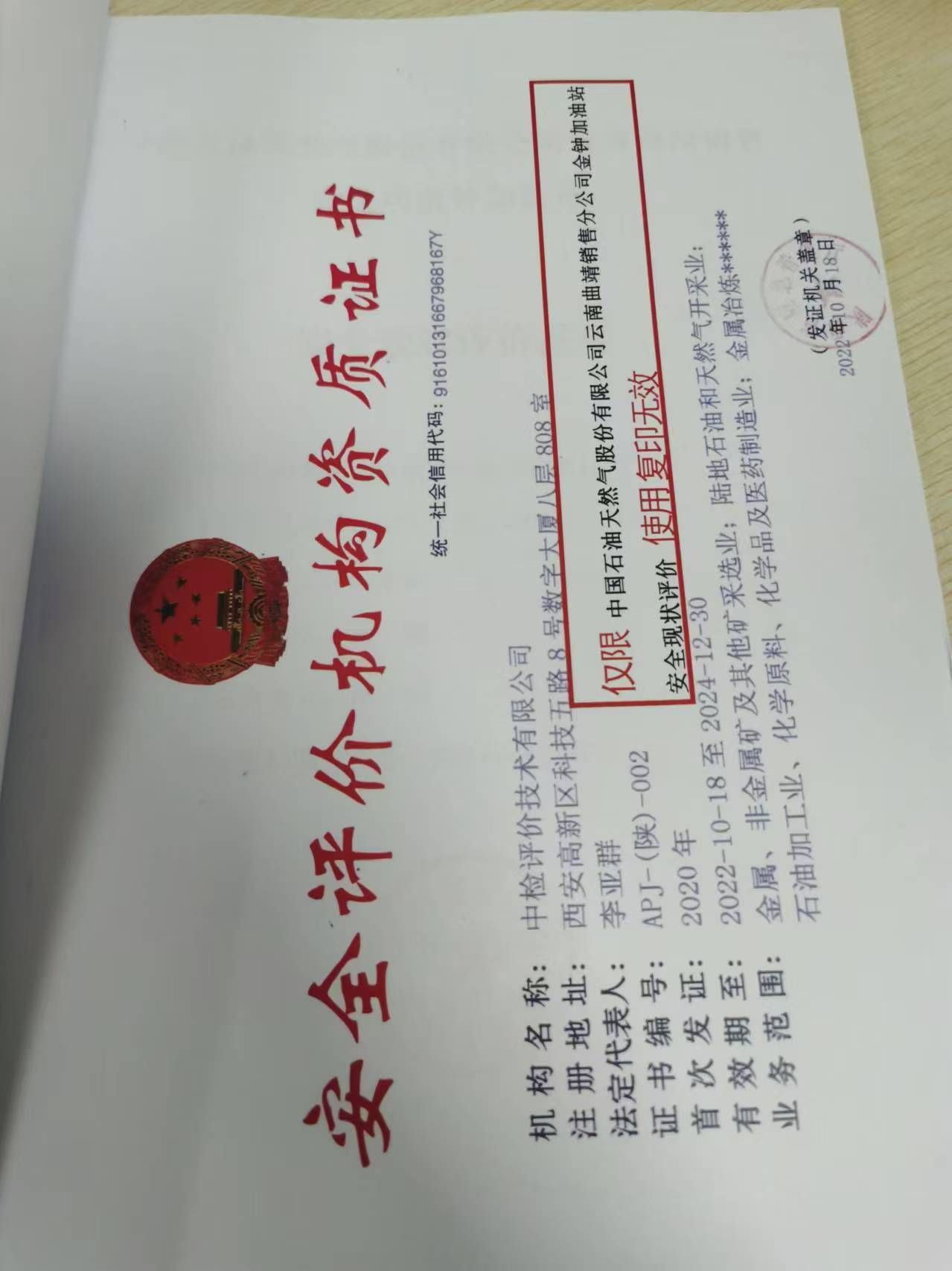 中國(guó)石油天然氣股份有限公司云南曲靖銷售分公司金鐘加油站安全現(xiàn)狀評(píng)價(jià)報(bào)告
