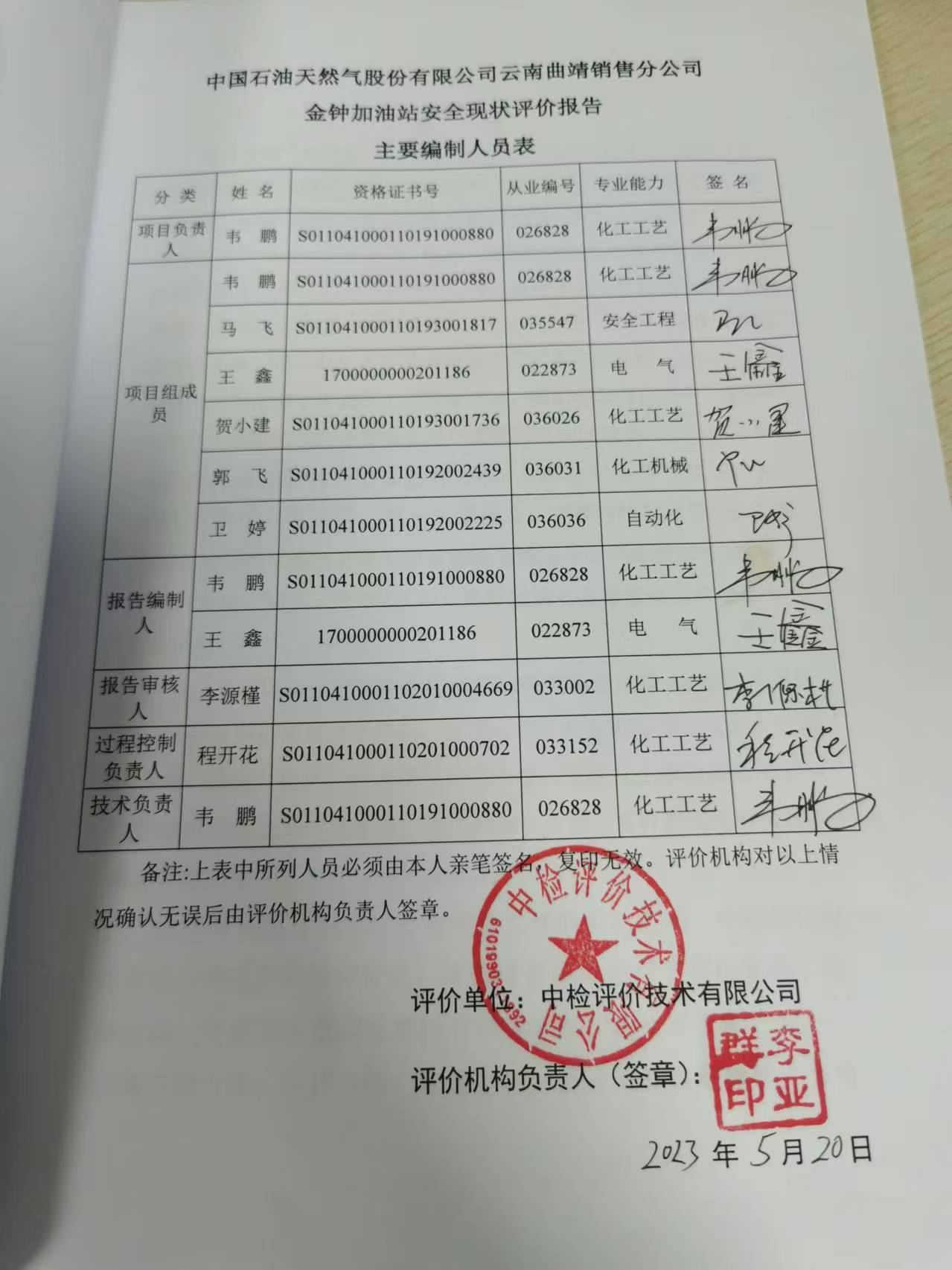 項(xiàng)目名稱 | 中國(guó)石油天然氣股份有限公司云南曲靖銷售分公司金鐘加油站安全現(xiàn)狀評(píng)價(jià)報(bào)告 | ||||||
