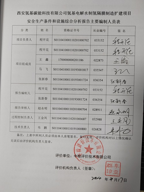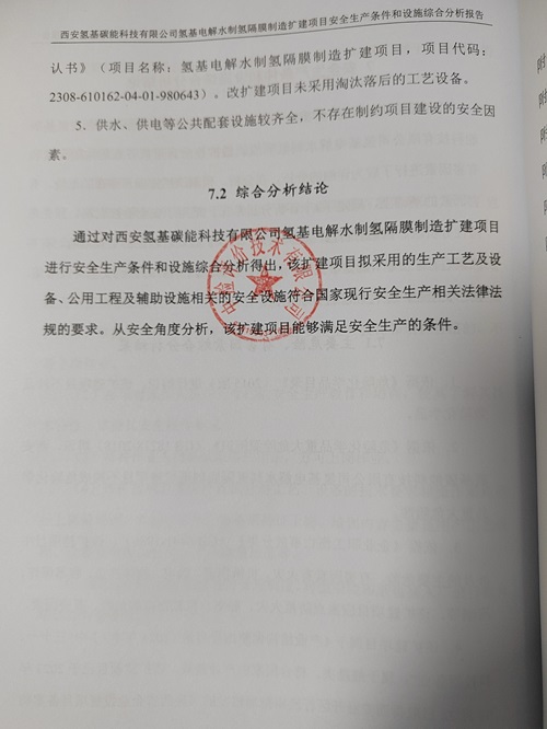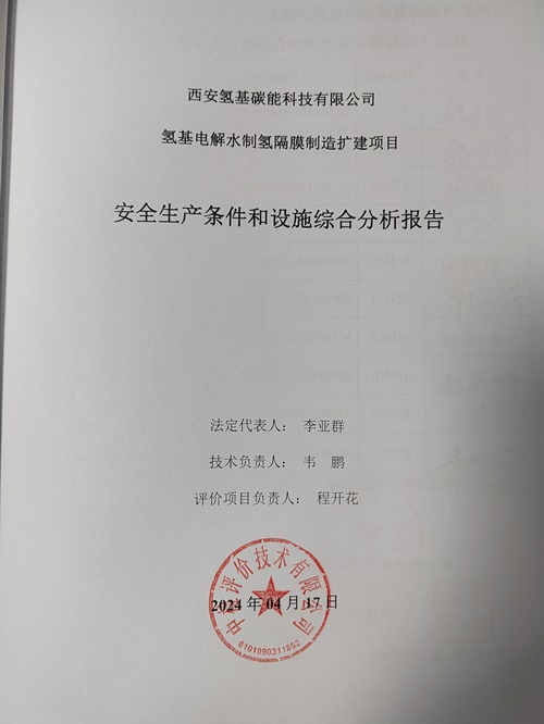 項目名稱 | 西安氫基碳能科技有限公司氫基電解水制氫隔膜制造擴建項目 安全生產(chǎn)條件和設施綜合分析 | ||||||