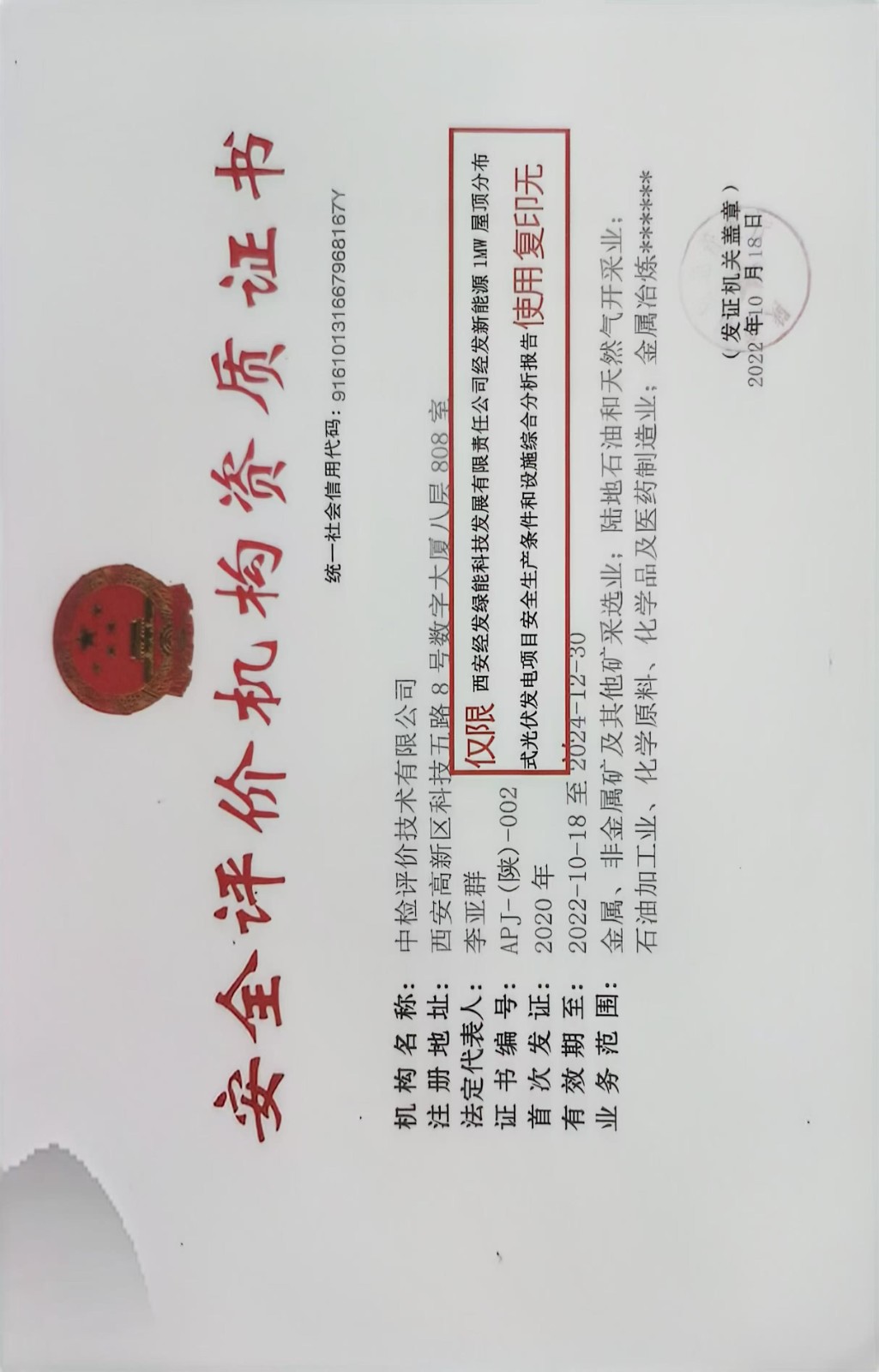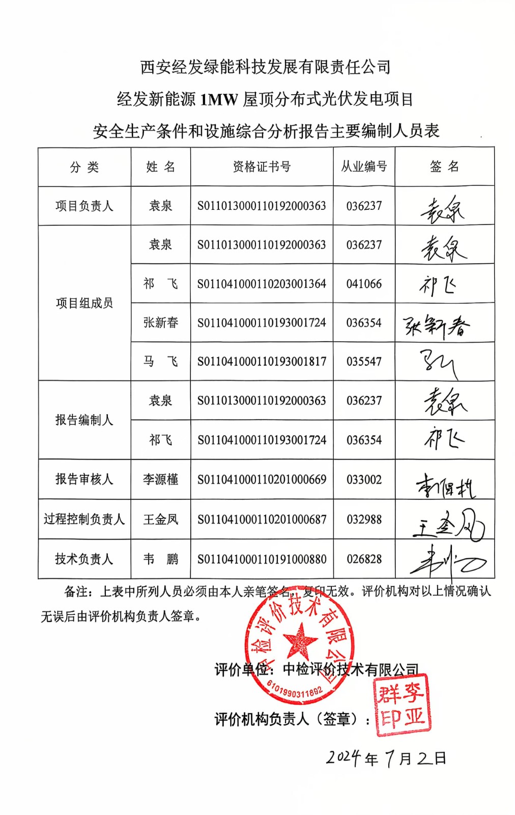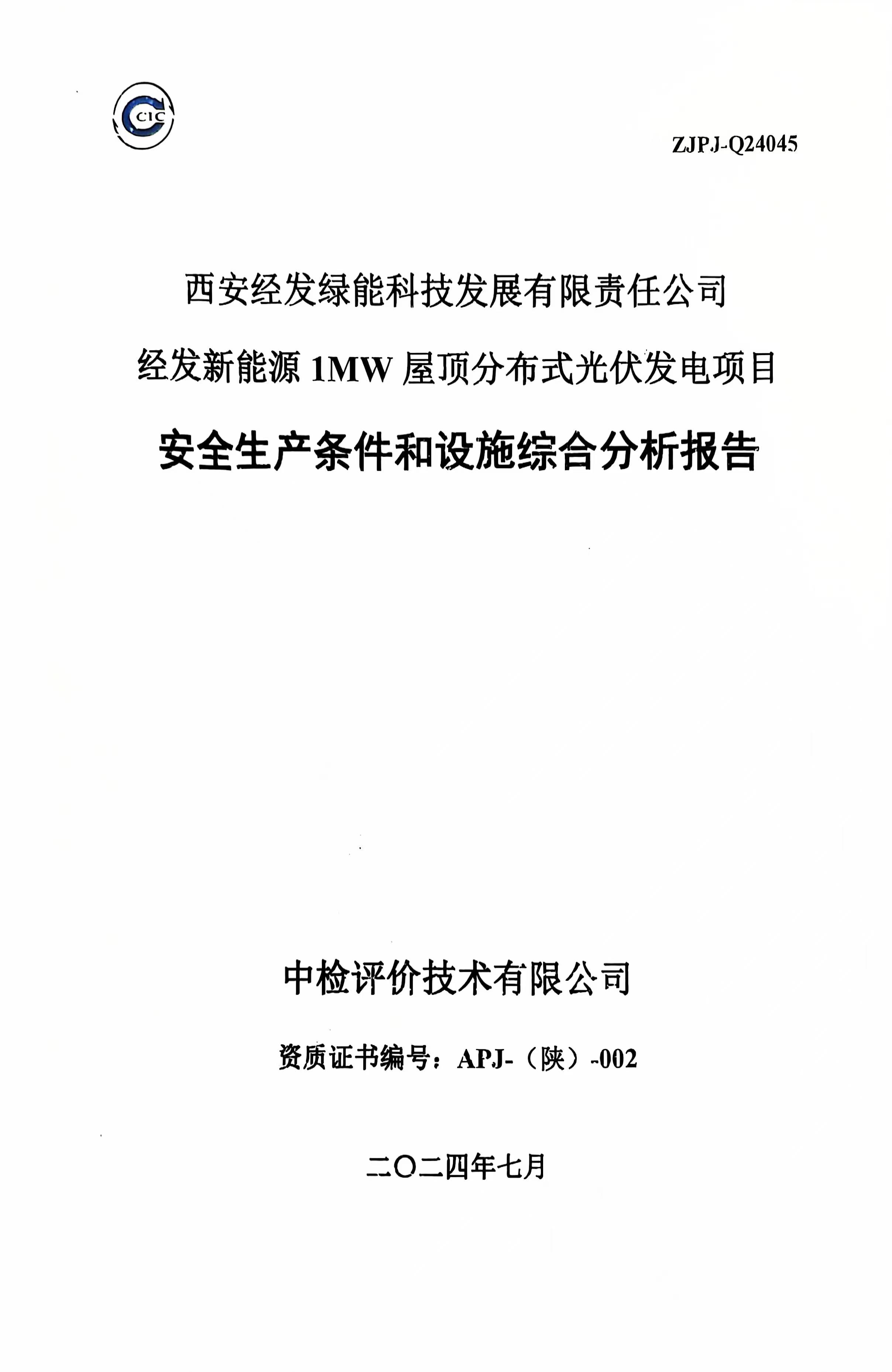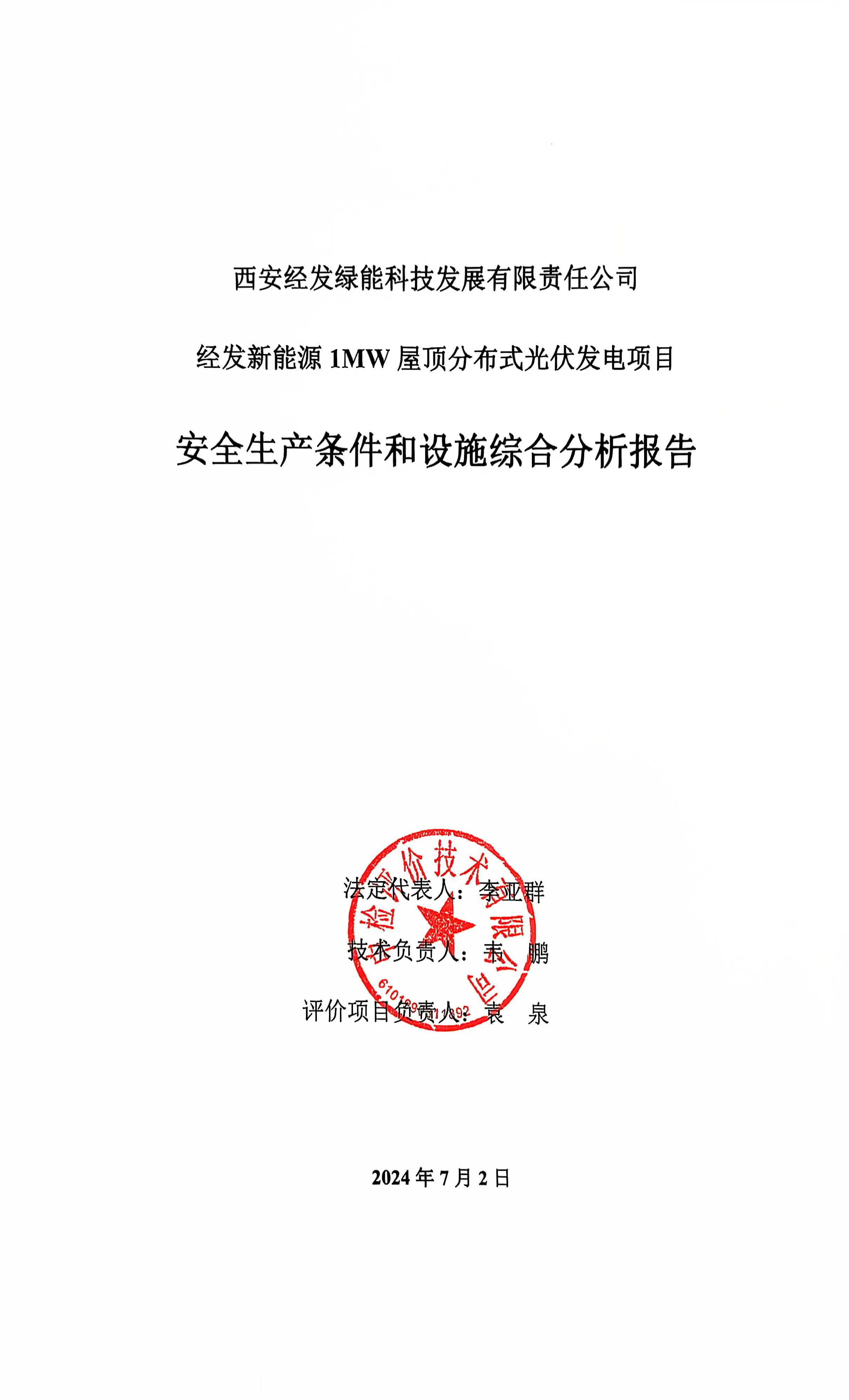 西安經(jīng)發(fā)綠能科技發(fā)展有限責(zé)任公司經(jīng)發(fā)綠能1MW屋頂分布式光伏發(fā)電項目安全生產(chǎn)條件和設(shè)施綜合分析報告