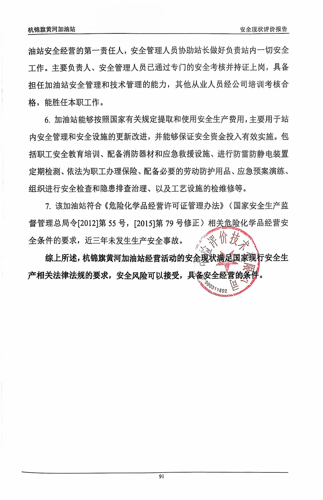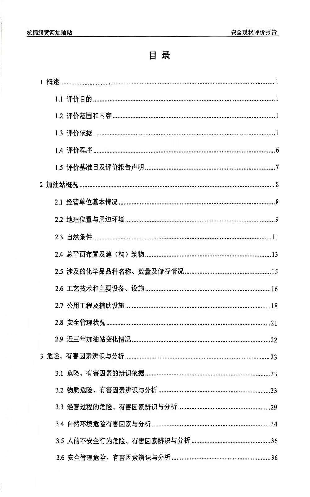 杭錦旗黃河加油站安全現(xiàn)狀評價報告