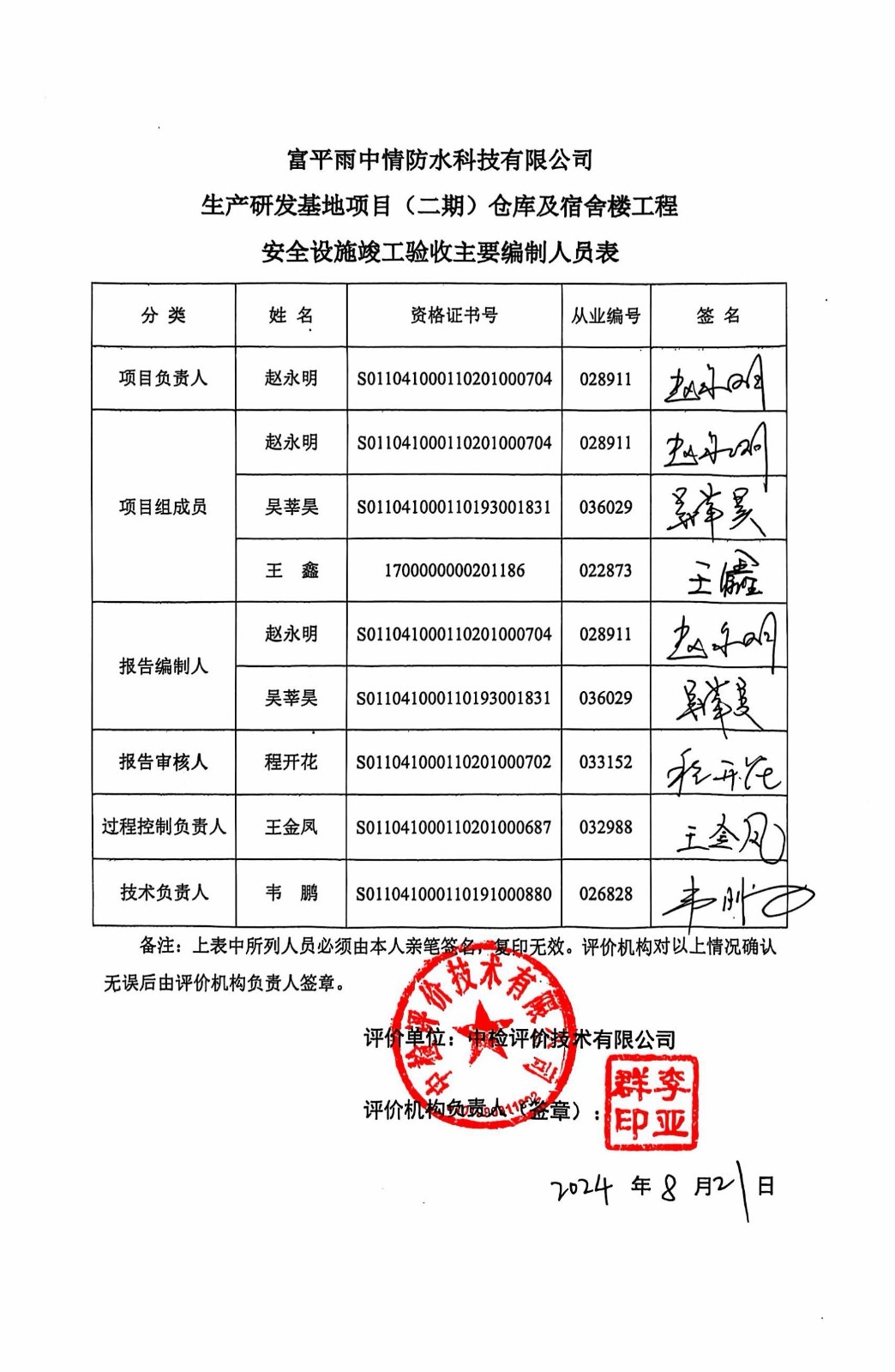 項目名稱 | 富平雨中情防水科技有限公司生產(chǎn)研發(fā)基地項目(二期)倉庫及宿舍樓工程 安全設(shè)施竣工驗收 | ||||||