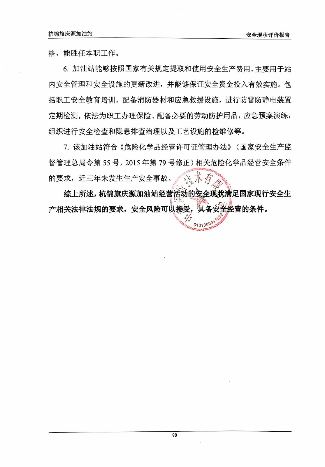 杭錦旗慶源加油站安全現(xiàn)狀評價報告