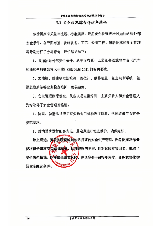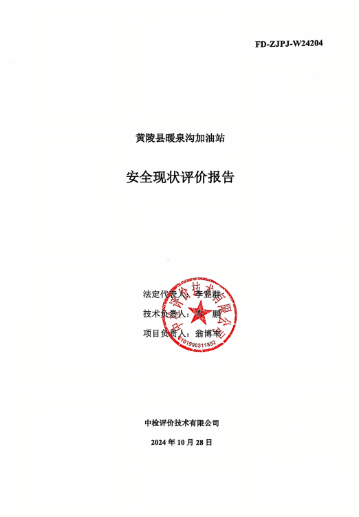 黃陵縣暖泉溝加油站安全現(xiàn)狀評(píng)價(jià)報(bào)告