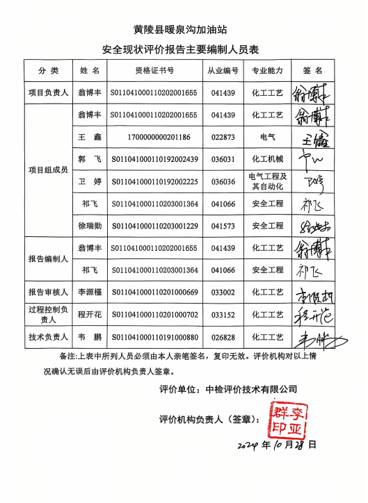 項(xiàng)目名稱 | 黃陵縣暖泉溝加油站安全現(xiàn)狀評(píng)價(jià) | ||||||