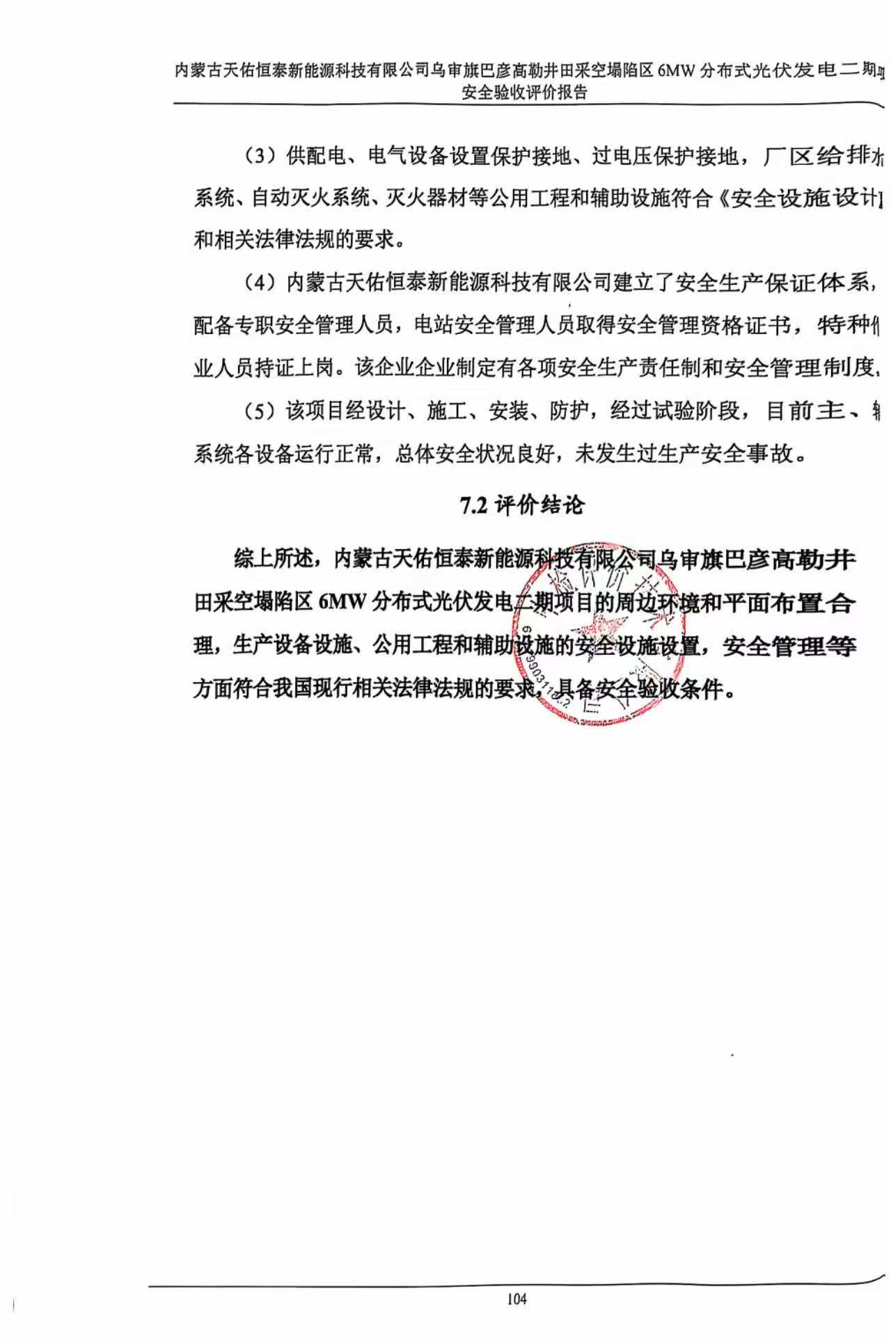 內(nèi)蒙古天佑恒泰新能源科技有限公司烏審旗巴彥高勒井田采空塌陷區(qū)6MW分布式光伏發(fā)電二期項目安全驗收評價報告