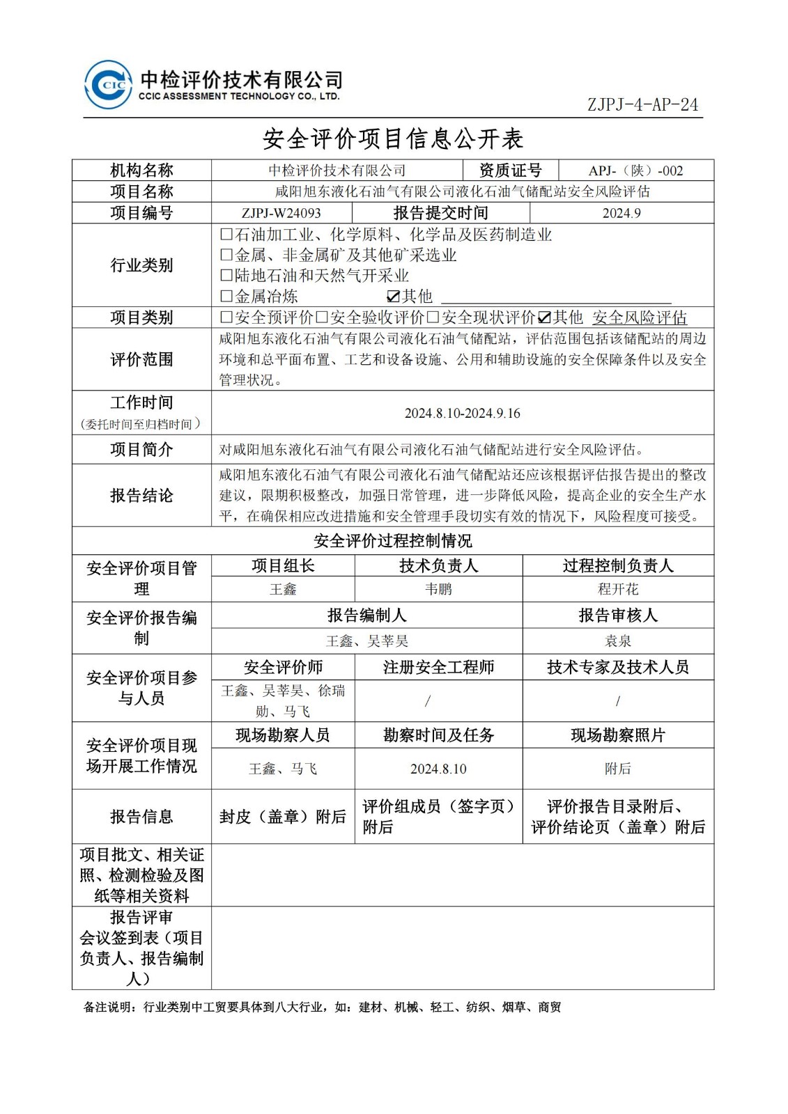 咸陽旭東液化石油氣有限公司 液化石油氣儲配站安全風險評估