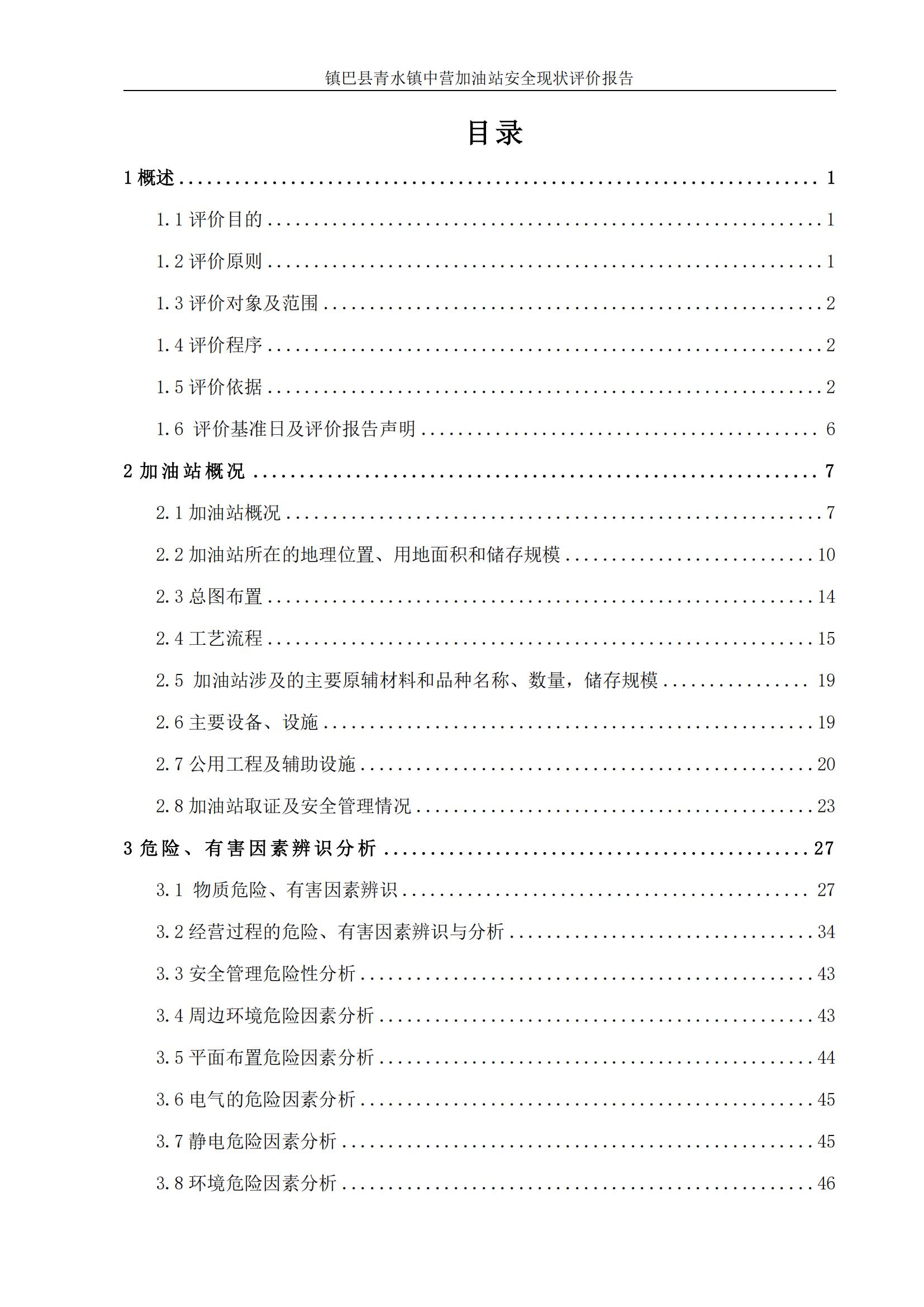項(xiàng)目名稱(chēng) | 鎮(zhèn)巴縣青水鎮(zhèn)中營(yíng)加油站安全現(xiàn)狀評(píng)價(jià)報(bào)告 | ||||||