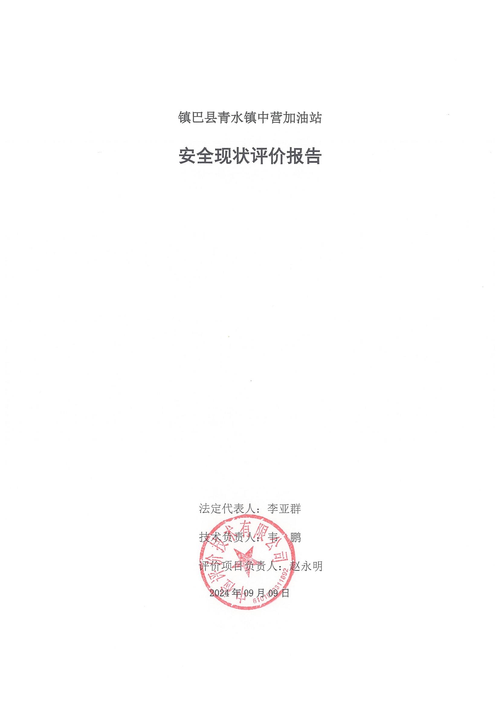 鎮(zhèn)巴縣青水鎮(zhèn)中營(yíng)加油站安全現(xiàn)狀評(píng)價(jià)報(bào)告