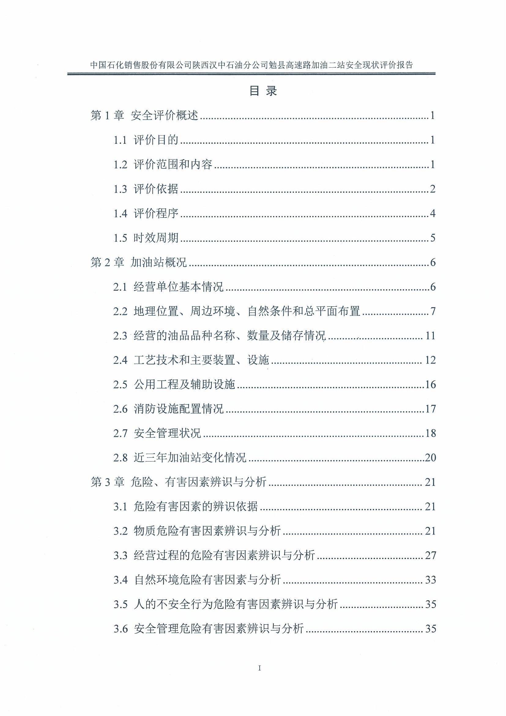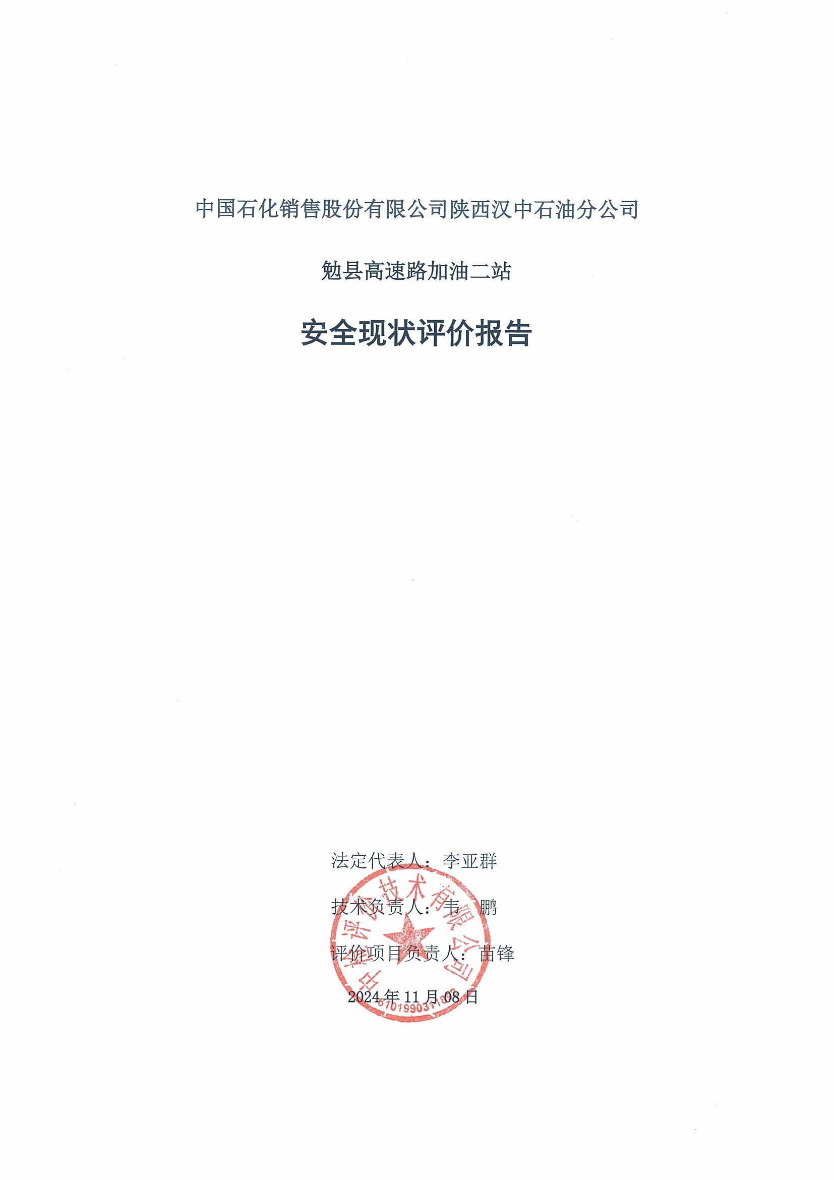 中國石化銷售股份有限公司陜西漢中石油分公司勉縣高速路加油二站安全現(xiàn)狀評價報告