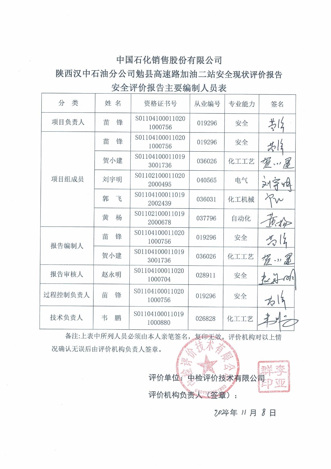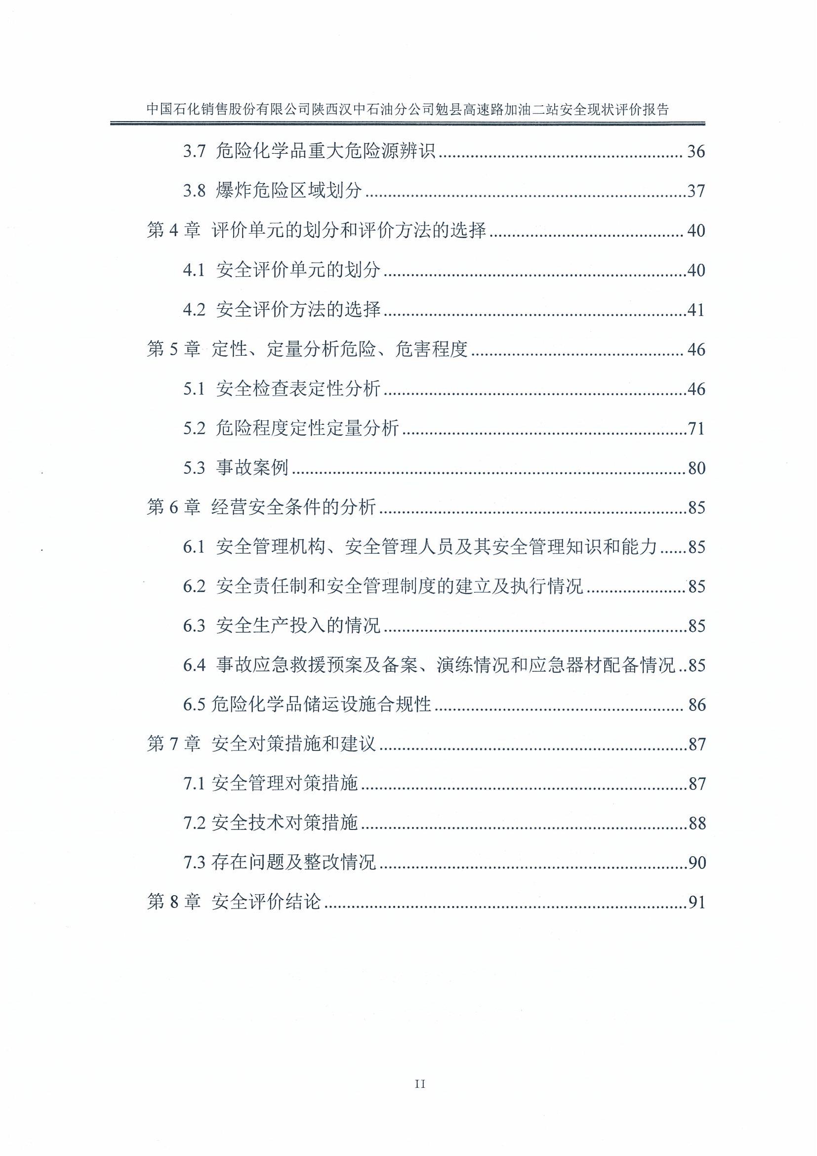 項目名稱 | 中國石化銷售股份有限公司陜西漢中石油分公司勉縣高速路加油二站安全現(xiàn)狀評價報告 | ||||||