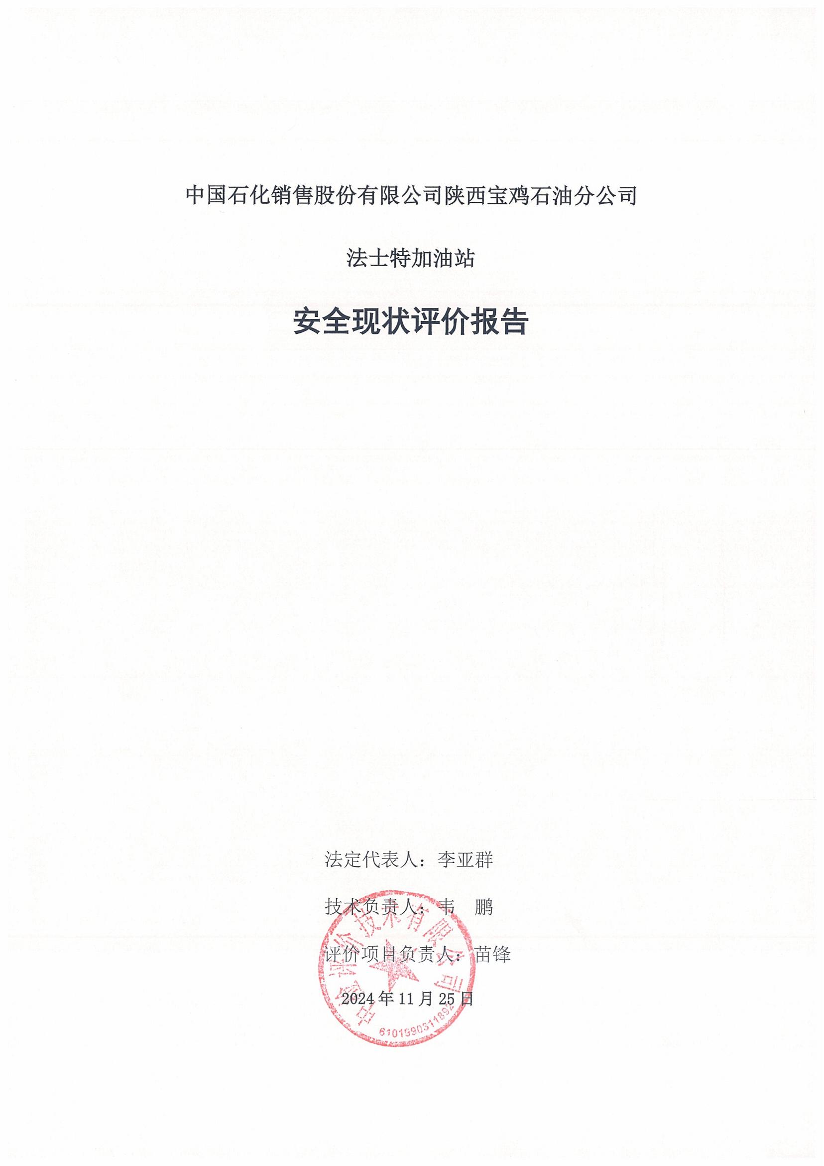 中國石化銷售股份有限公司陜西寶雞石油分公司法士特加油站安全現(xiàn)狀評價報告