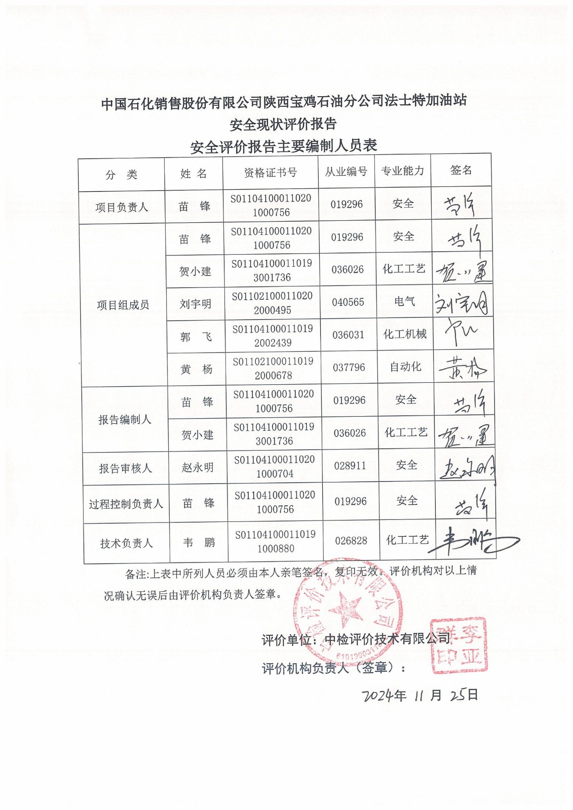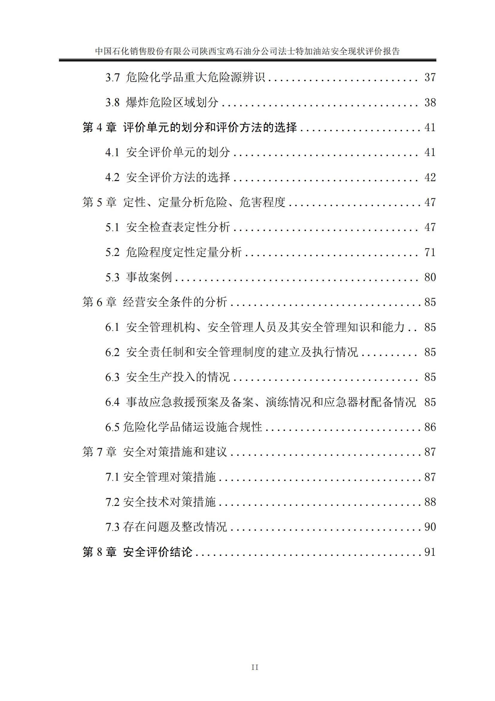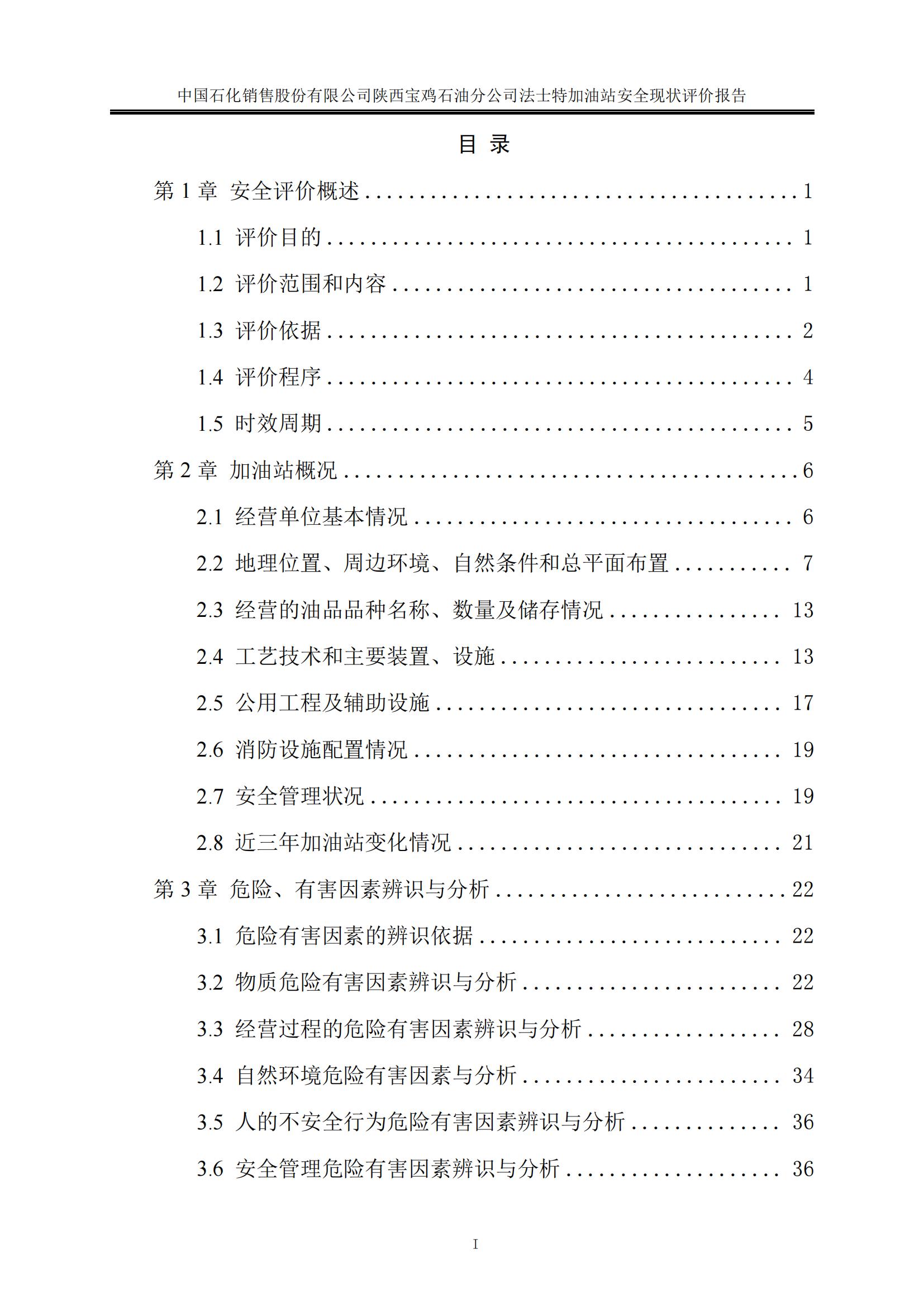 項目名稱 | 中國石化銷售股份有限公司陜西寶雞石油分公司法士特加油站安全現(xiàn)狀評價報告 | ||||||