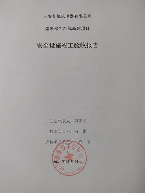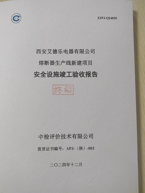 西安艾德樂電器有限公司熔斷器生產(chǎn)線新建項(xiàng)目安全設(shè)施竣工驗(yàn)收