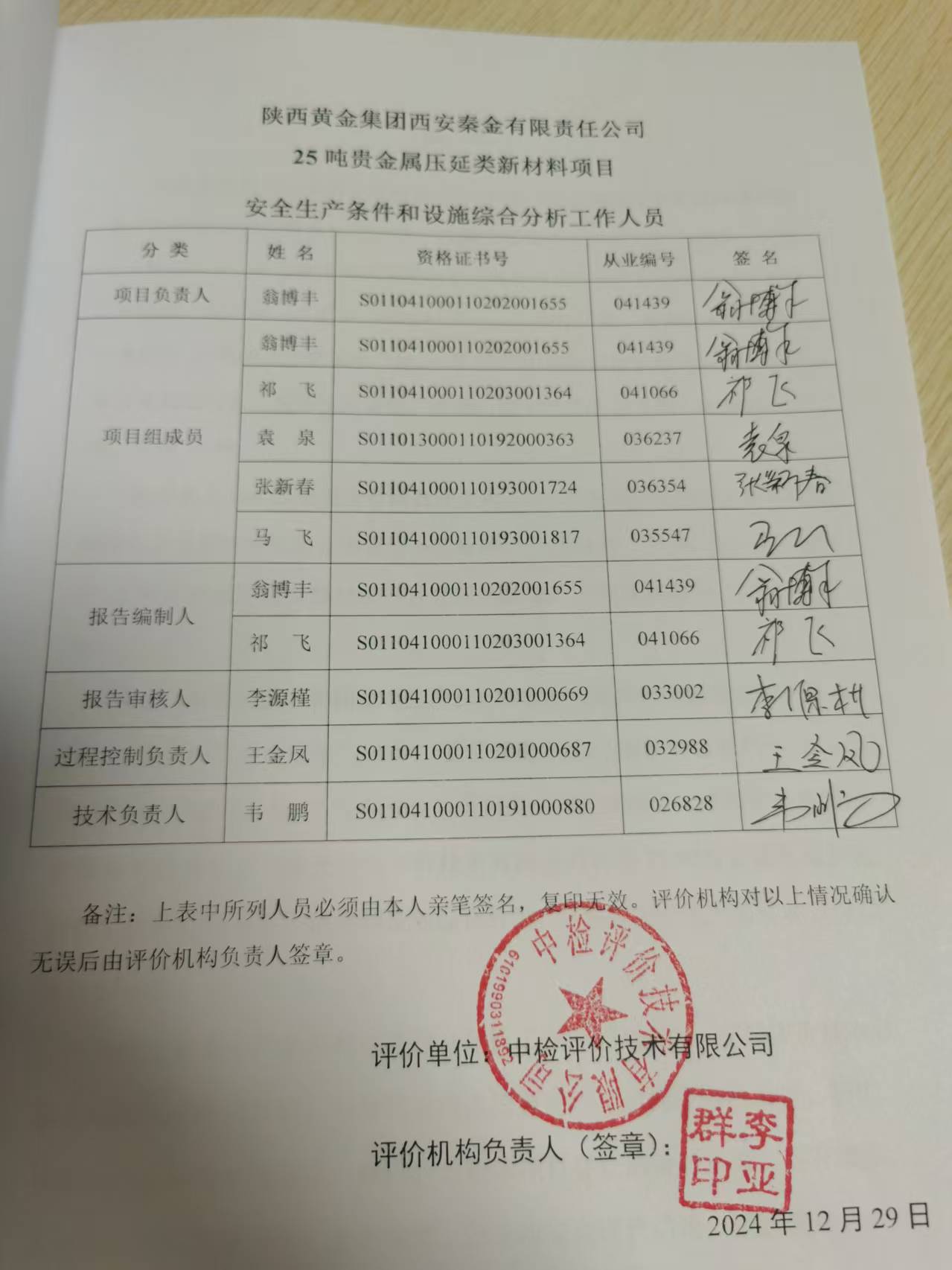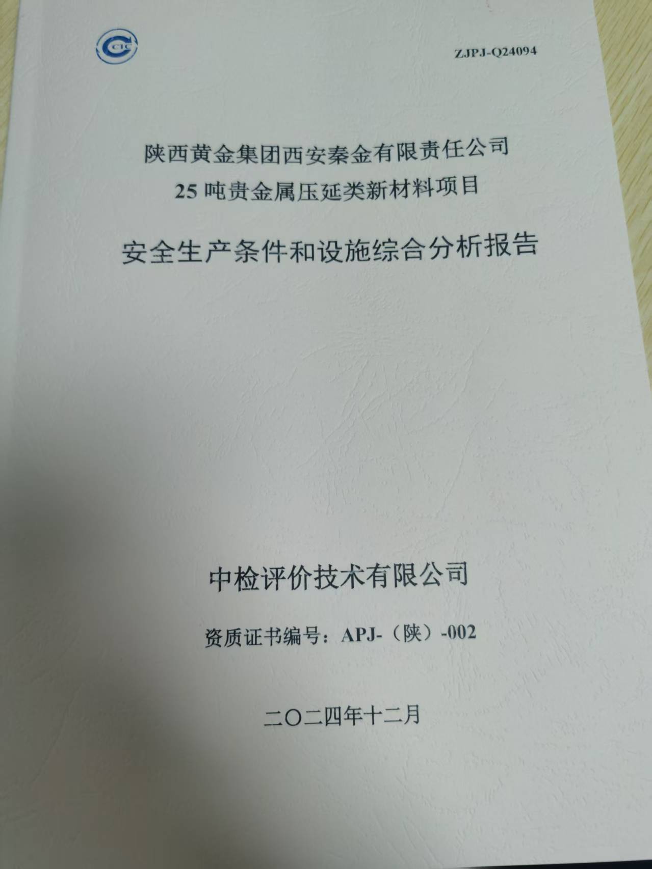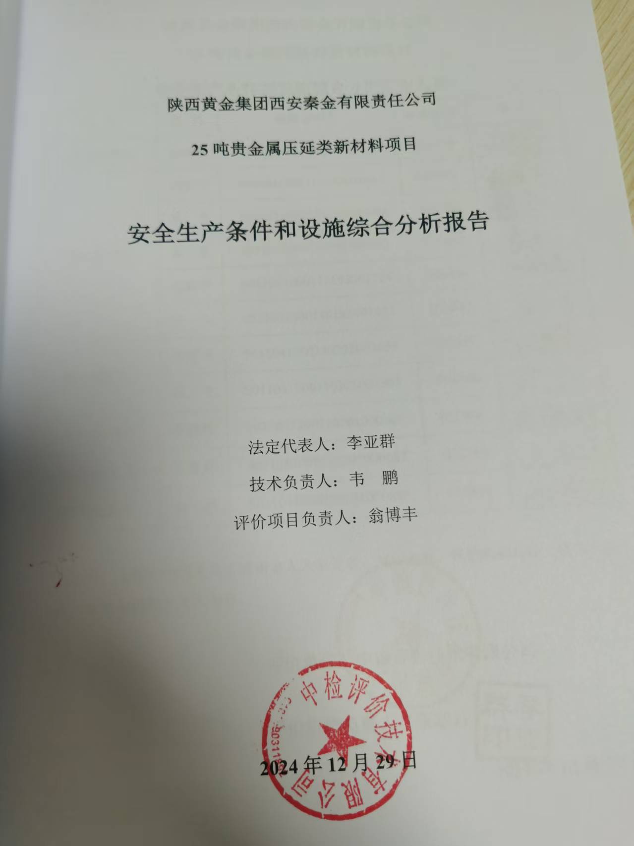 陜西黃金集團(tuán)西安秦金有限責(zé)任公司25噸貴金屬壓延類新材料項(xiàng)目安全生產(chǎn)條件和設(shè)施綜合分析