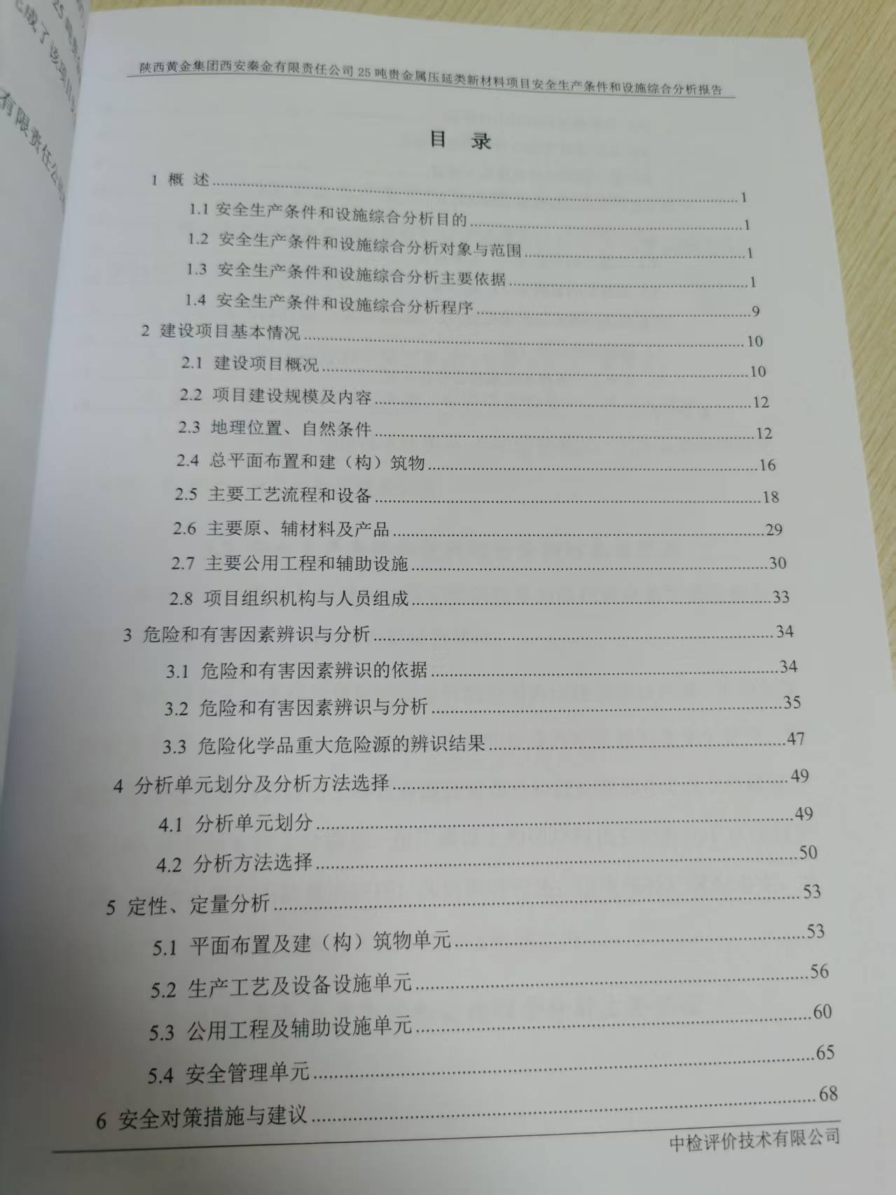 項(xiàng)目名稱 | 陜西黃金集團(tuán)西安秦金有限責(zé)任公司25噸貴金屬壓延類新材料項(xiàng)目 安全生產(chǎn)條件和設(shè)施綜合分析 | ||||||