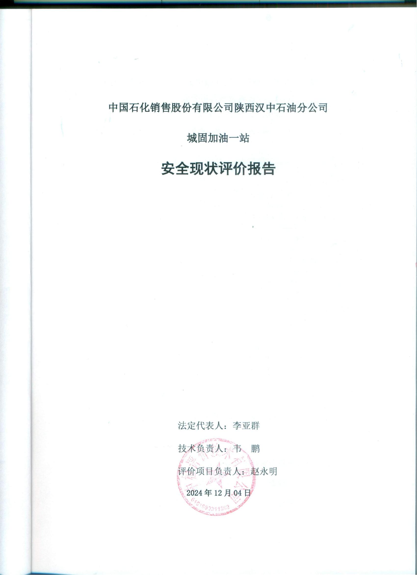 中國石化銷售股份有限公司陜西漢中石油分公司城固加油一站安全現(xiàn)狀評價報告