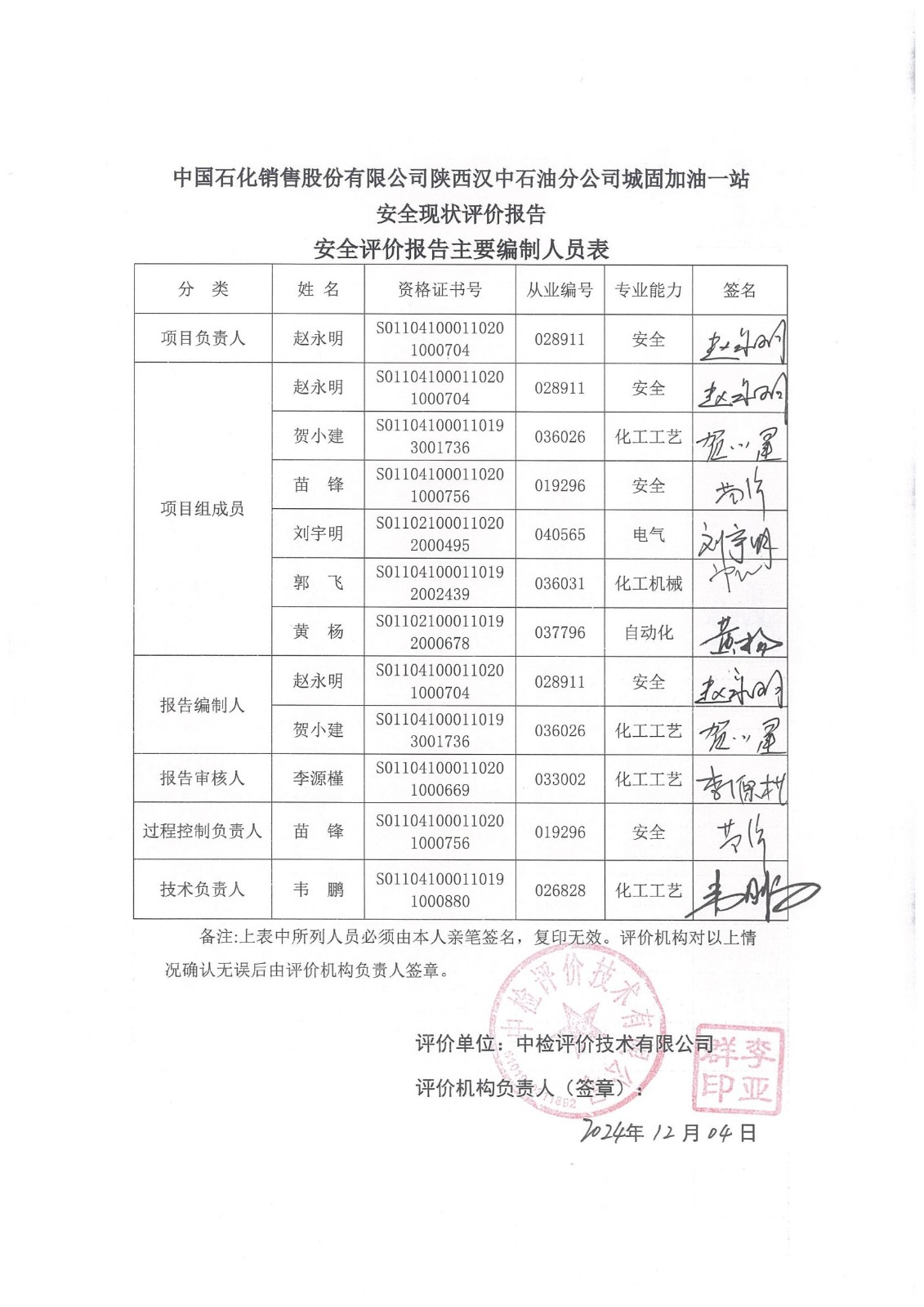 安全評價報告 編制 | 報告編制人 | 報告審核人 | |||||
