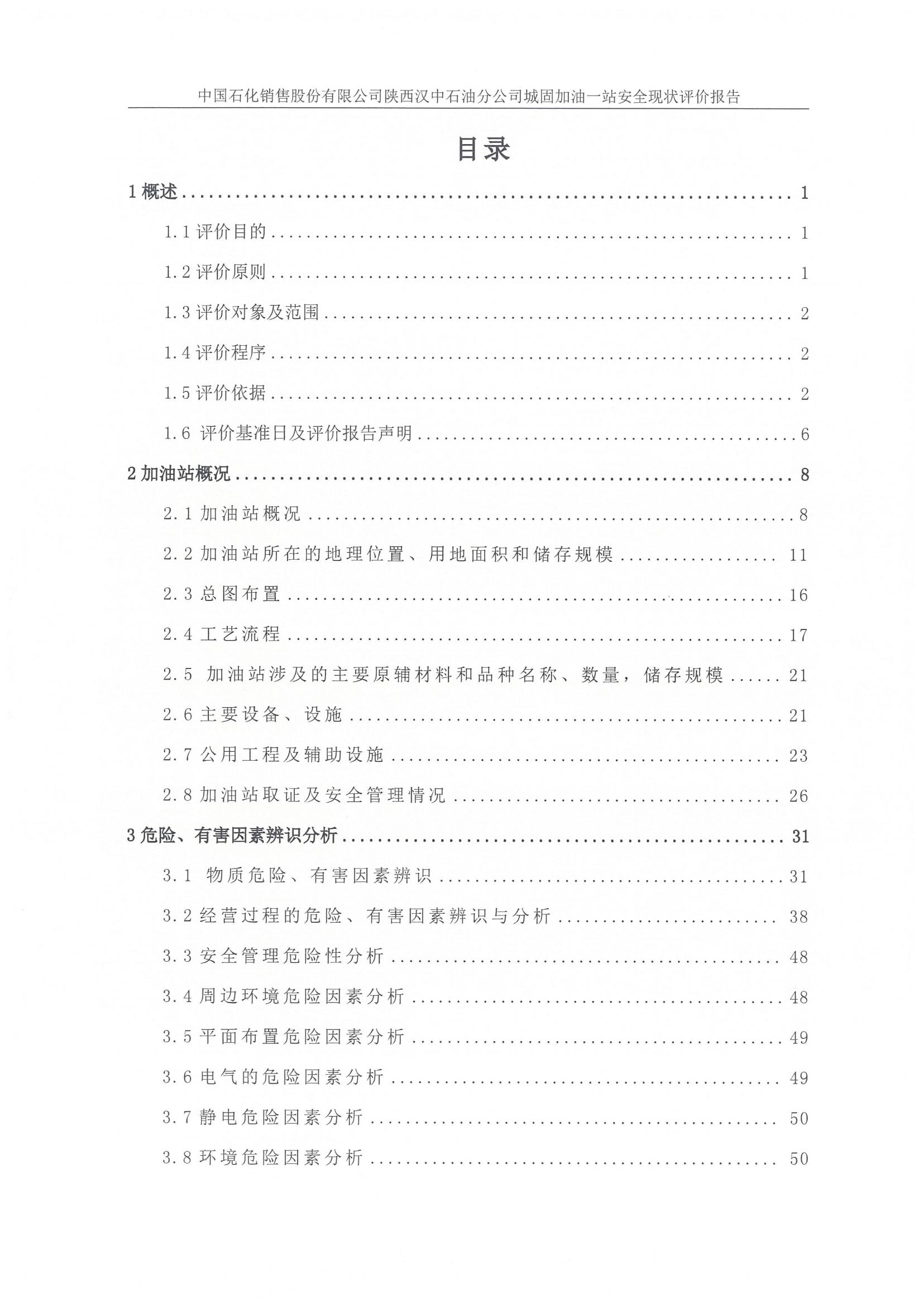 項目名稱 | 中國石化銷售股份有限公司陜西漢中石油分公司 城固加油一站安全現(xiàn)狀評價報告 | ||||||