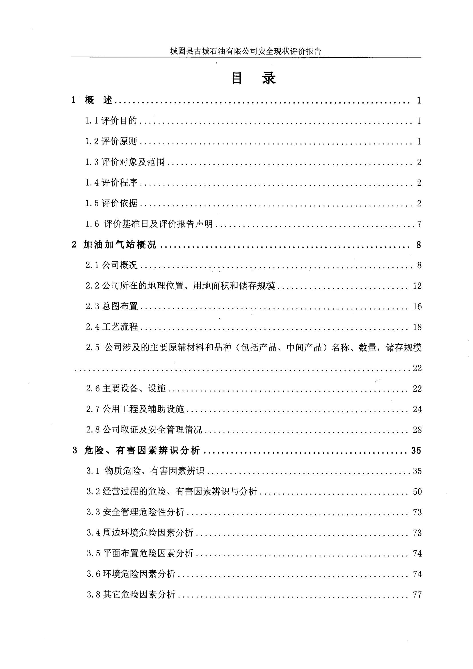 項目名稱 | 城固縣古城石油有限公司安全現(xiàn)狀評價報告 | ||||||