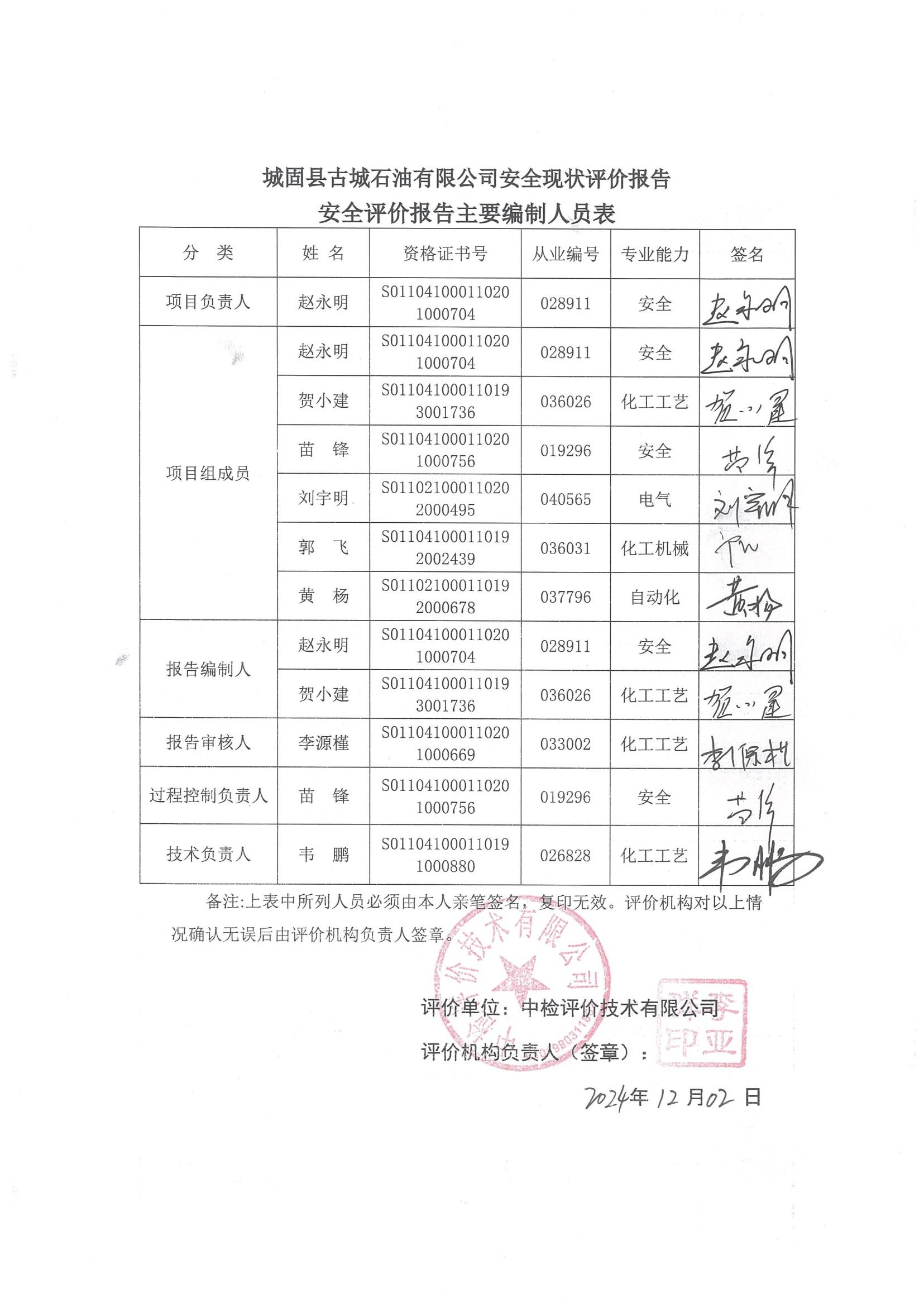 安全評價報告編制 | 報告編制人 | 報告審核人 | |||||