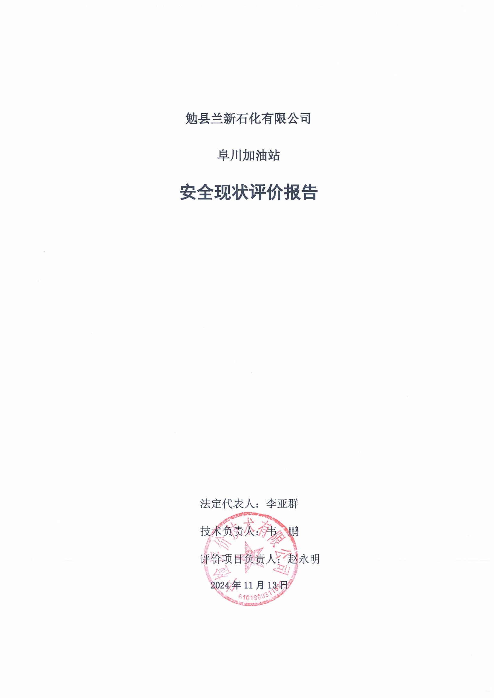 勉縣蘭新石化有限公司阜川加油站安全現(xiàn)狀評價報告
