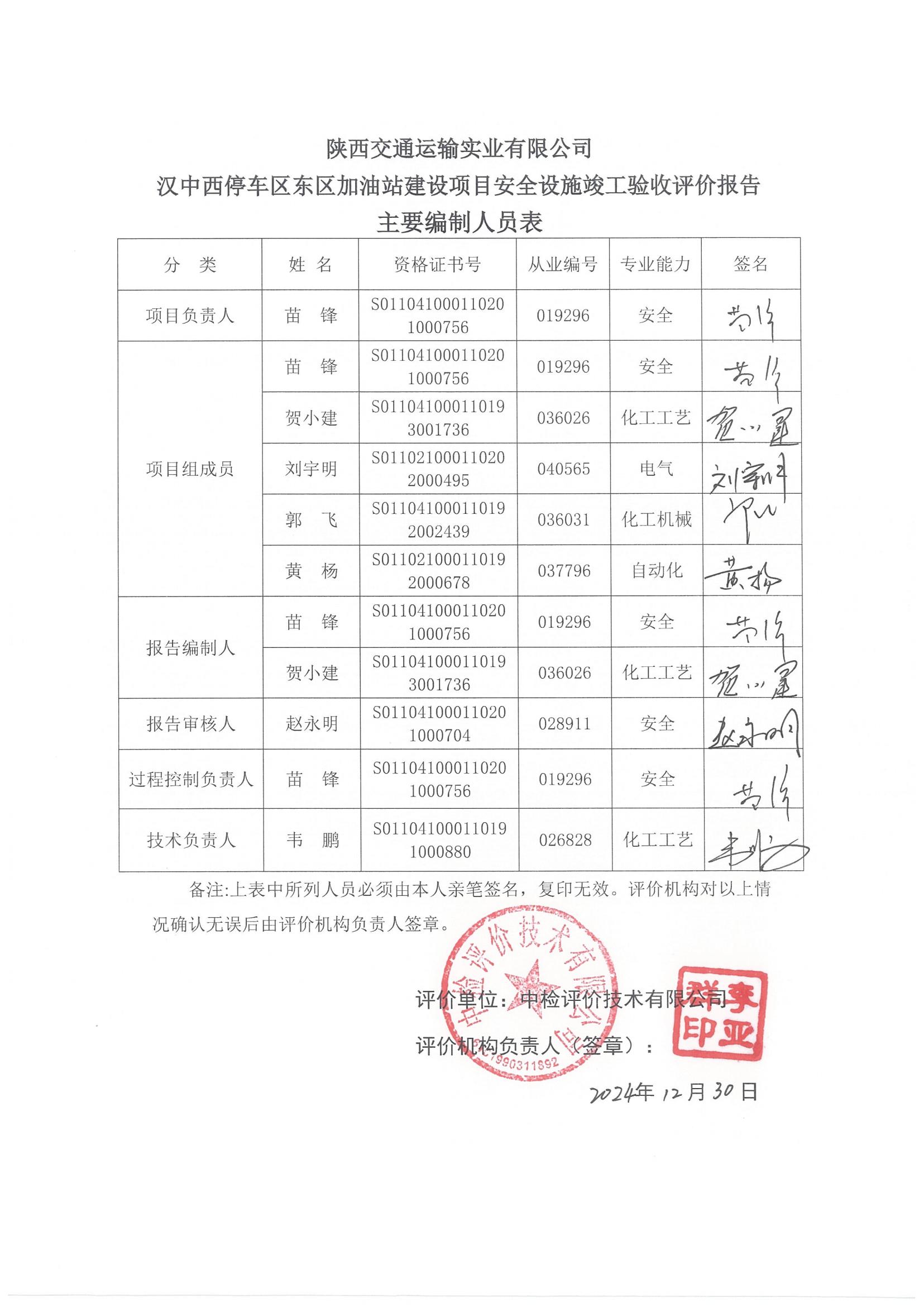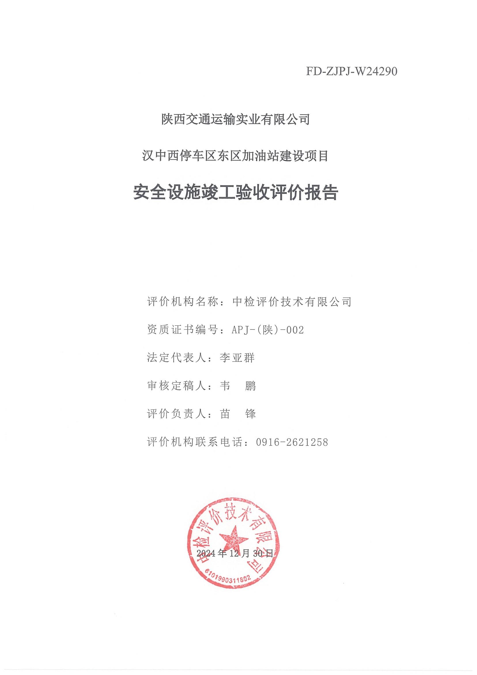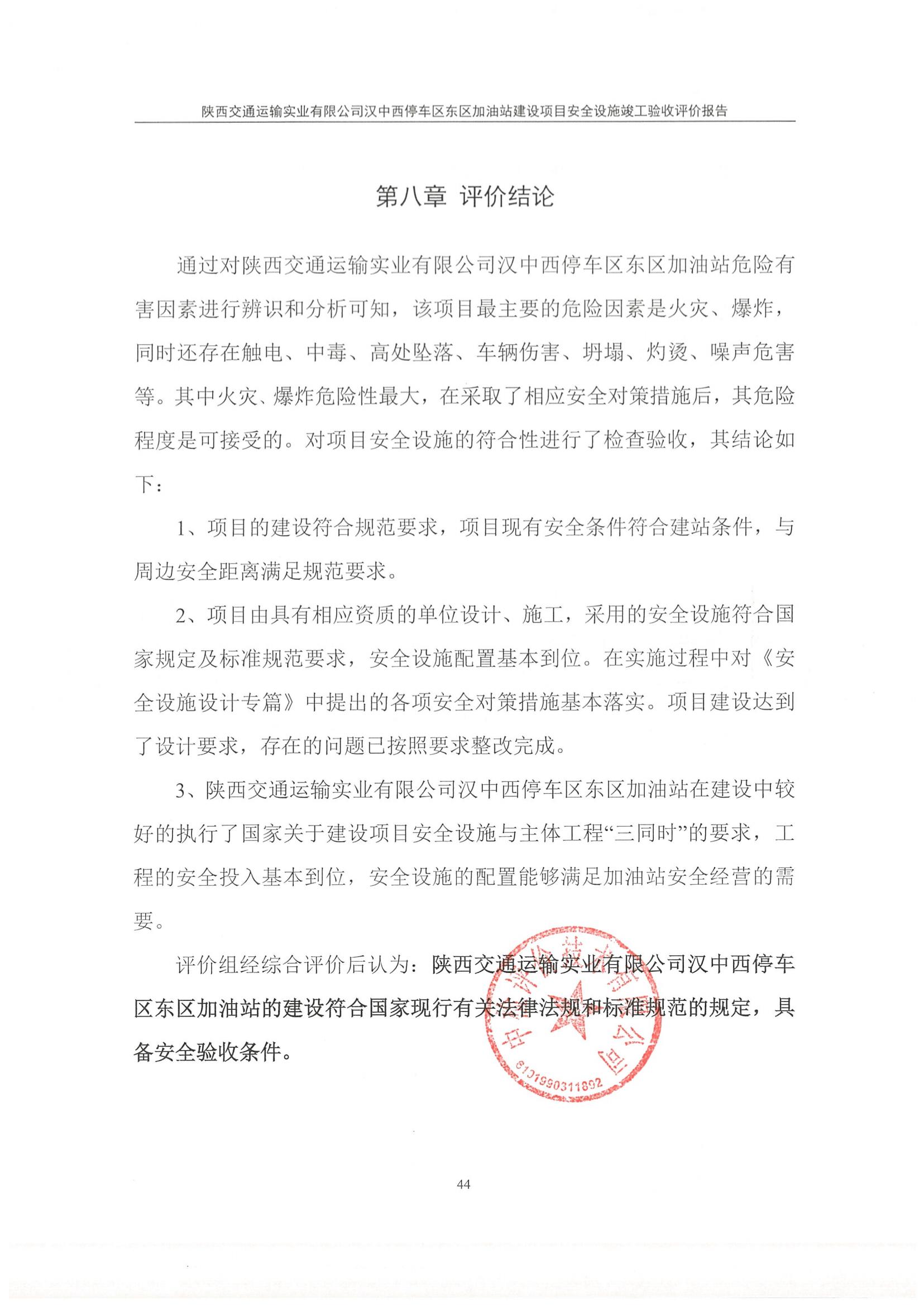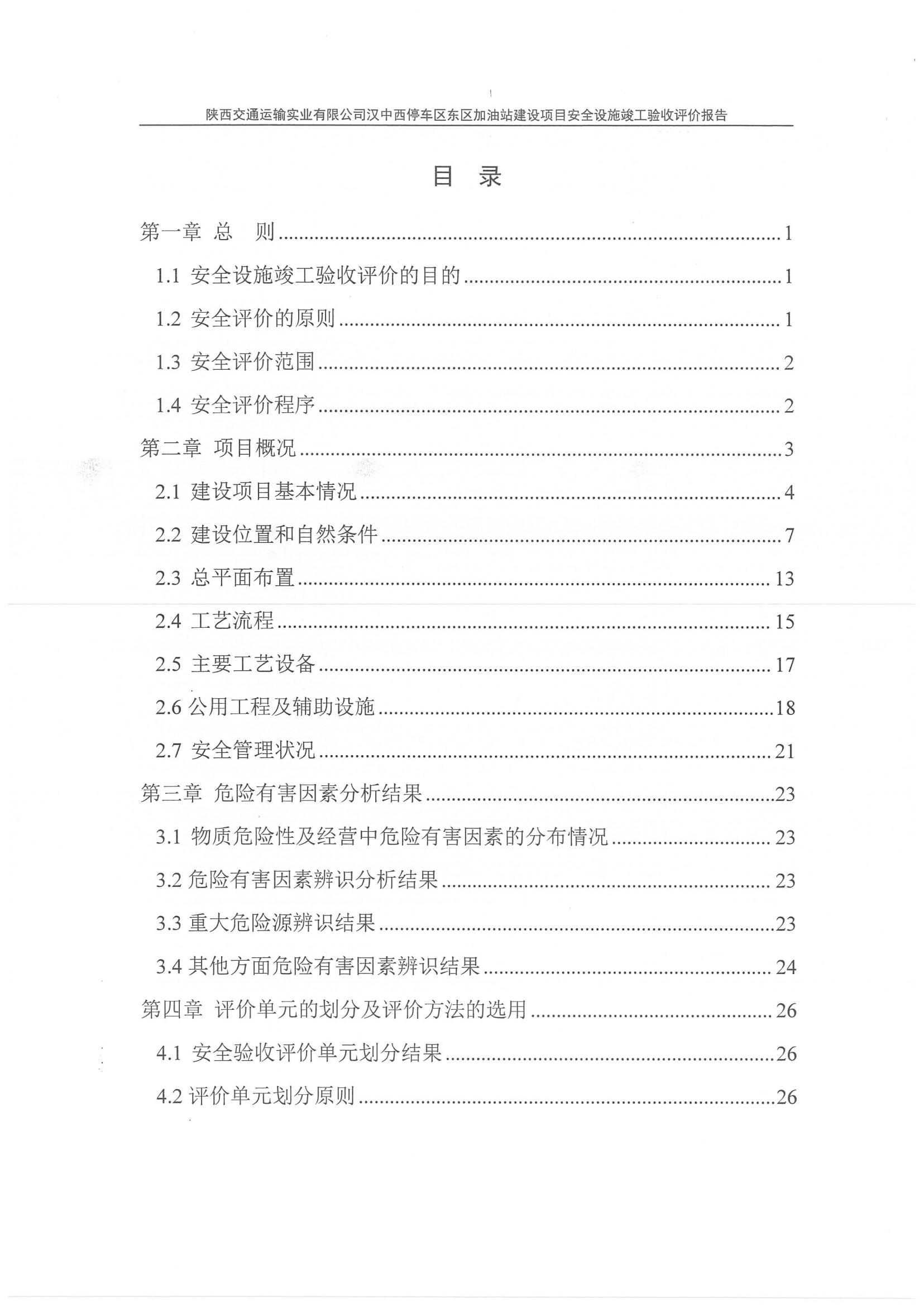陜西交通運(yùn)輸實(shí)業(yè)有限公司漢中西停車(chē)區(qū)東區(qū)加油站安全設(shè)施竣工驗(yàn)收評(píng)價(jià)報(bào)告