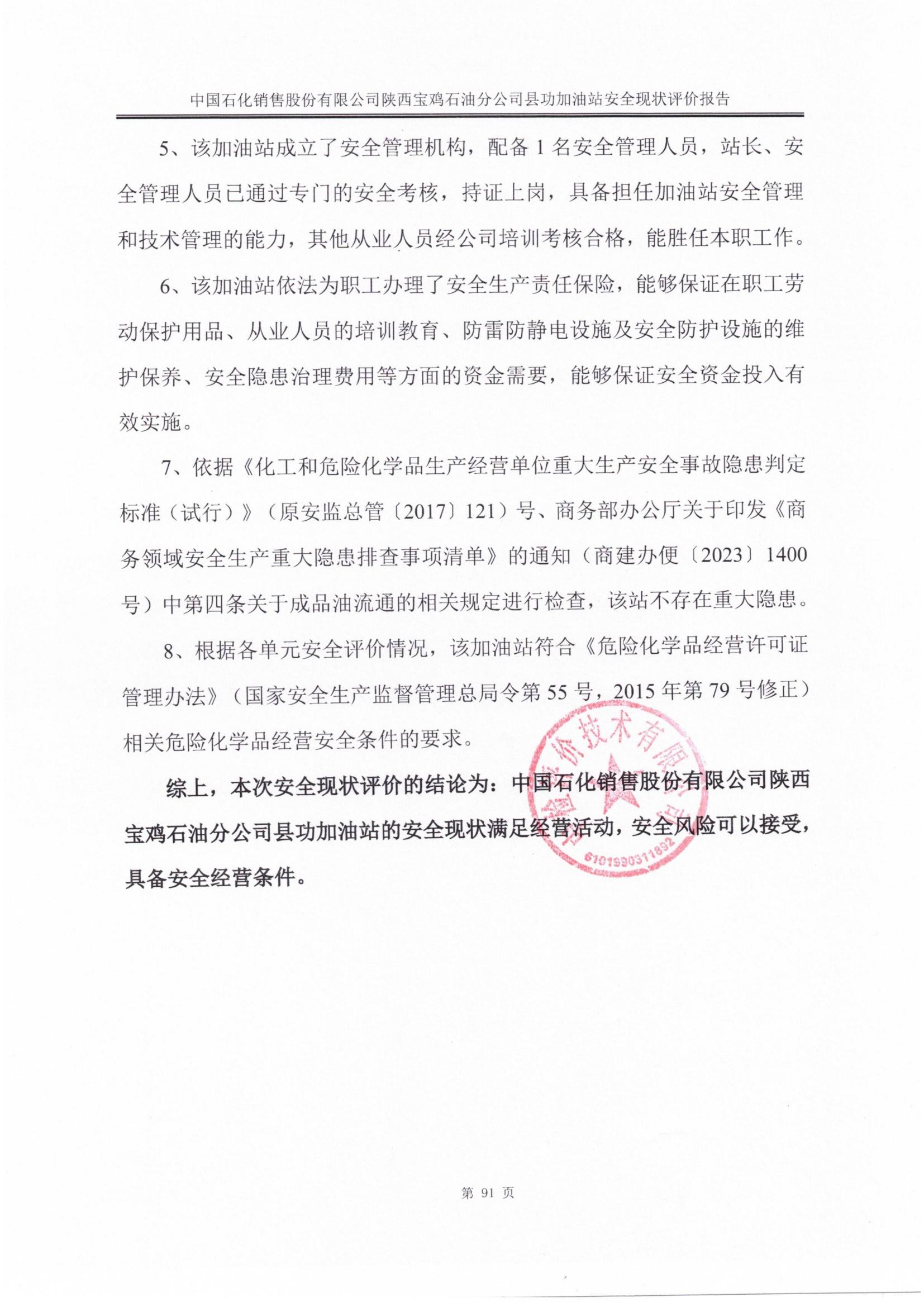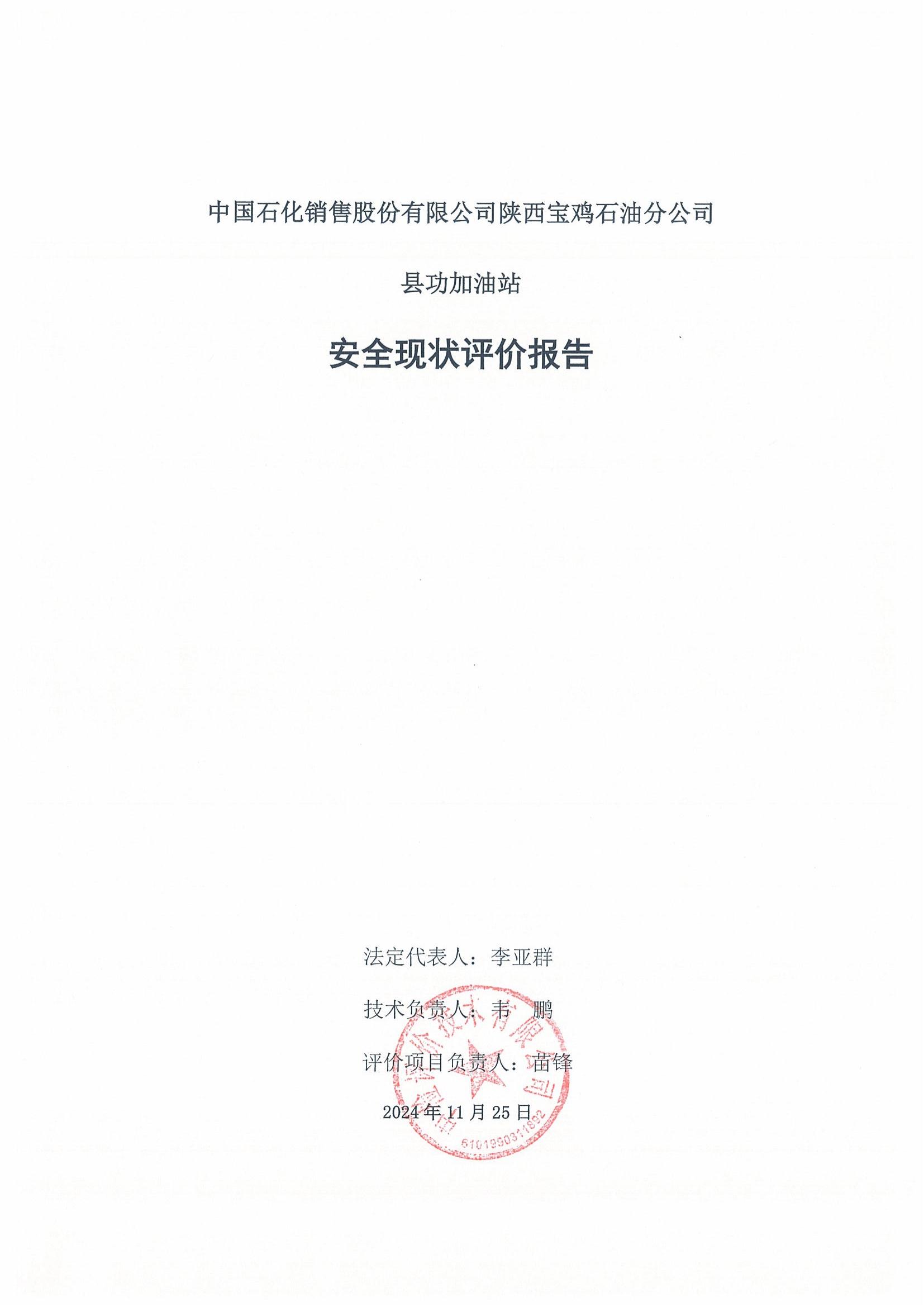 中國(guó)石化銷售股份有限公司陜西寶雞石油分公司縣功加油站安全現(xiàn)狀評(píng)價(jià)報(bào)告