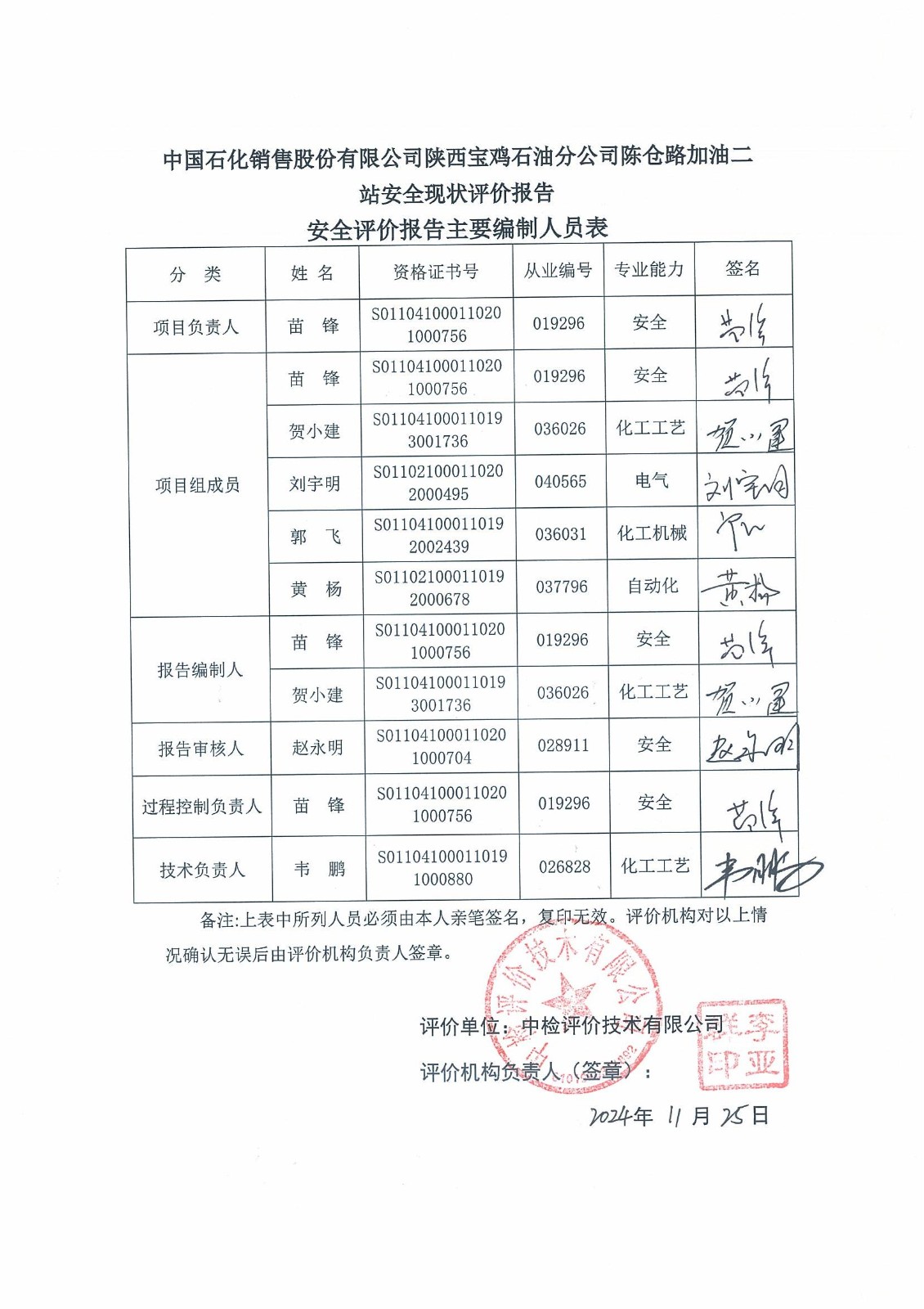項目名稱 | 中國石化銷售股份有限公司陜西寶雞石油分公司陳倉路加油二站安全現(xiàn)狀評價報告 | ||||||