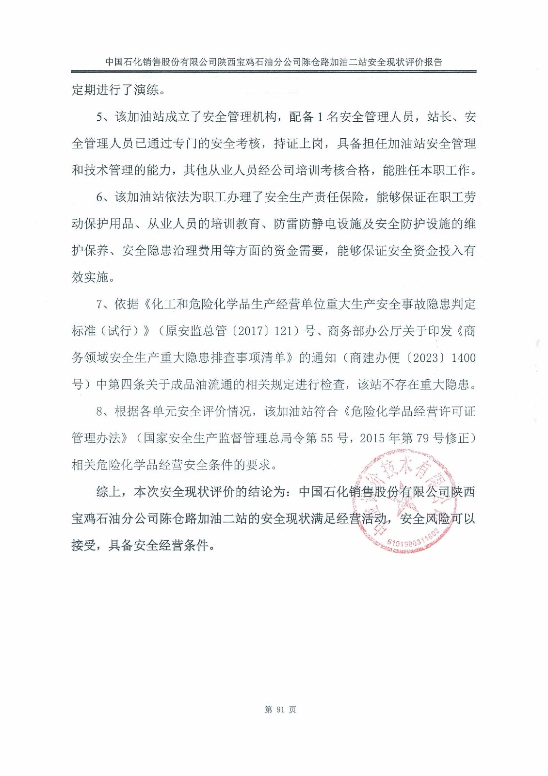 中國石化銷售股份有限公司陜西寶雞石油分公司陳倉路加油二站安全現(xiàn)狀評價報告