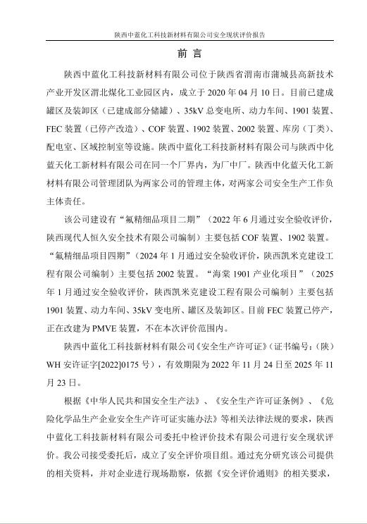 陜西中藍(lán)化工科技新材料有限公司安全現(xiàn)狀評(píng)價(jià)