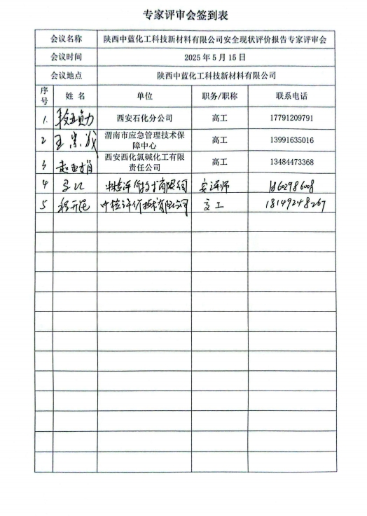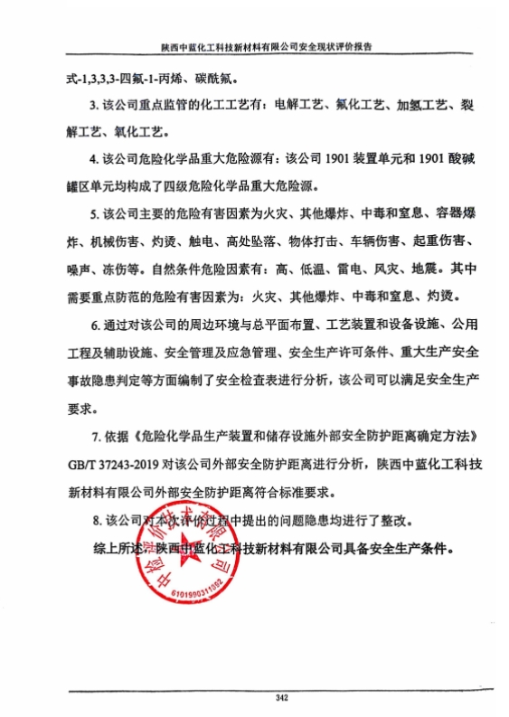 報(bào)告結(jié)論 | 陜西中藍(lán)化工科技新材料有限公司具備安全生產(chǎn)條件。 | ||||||