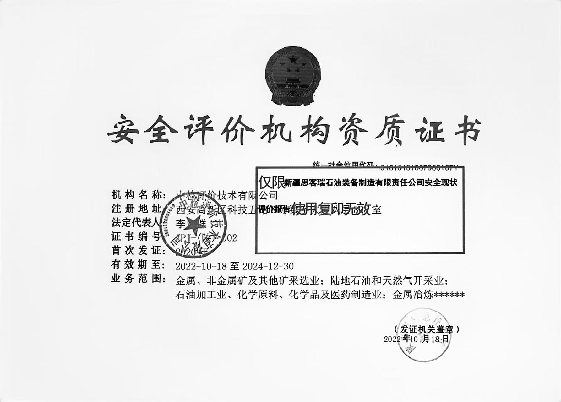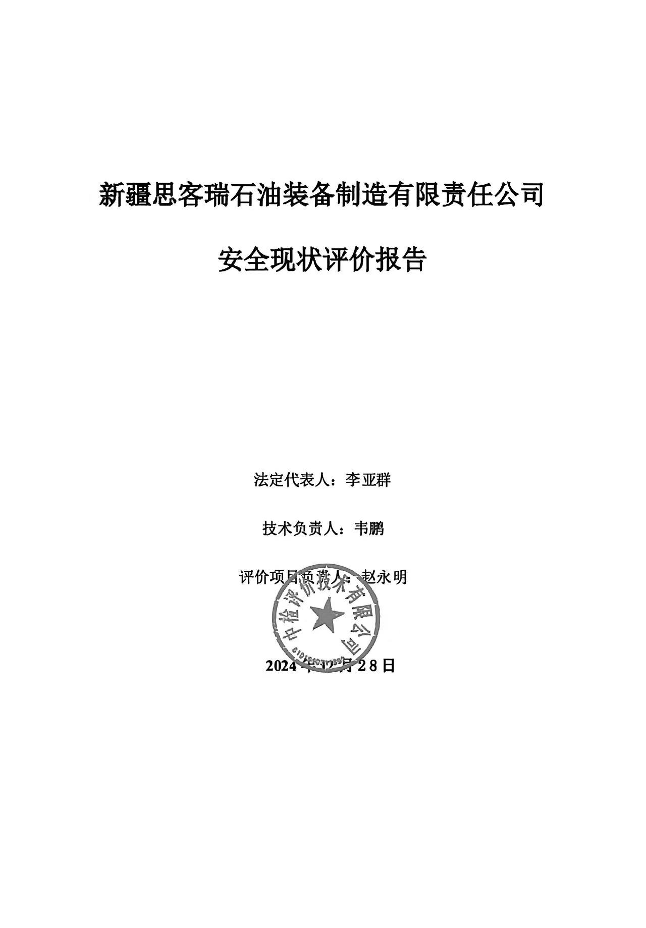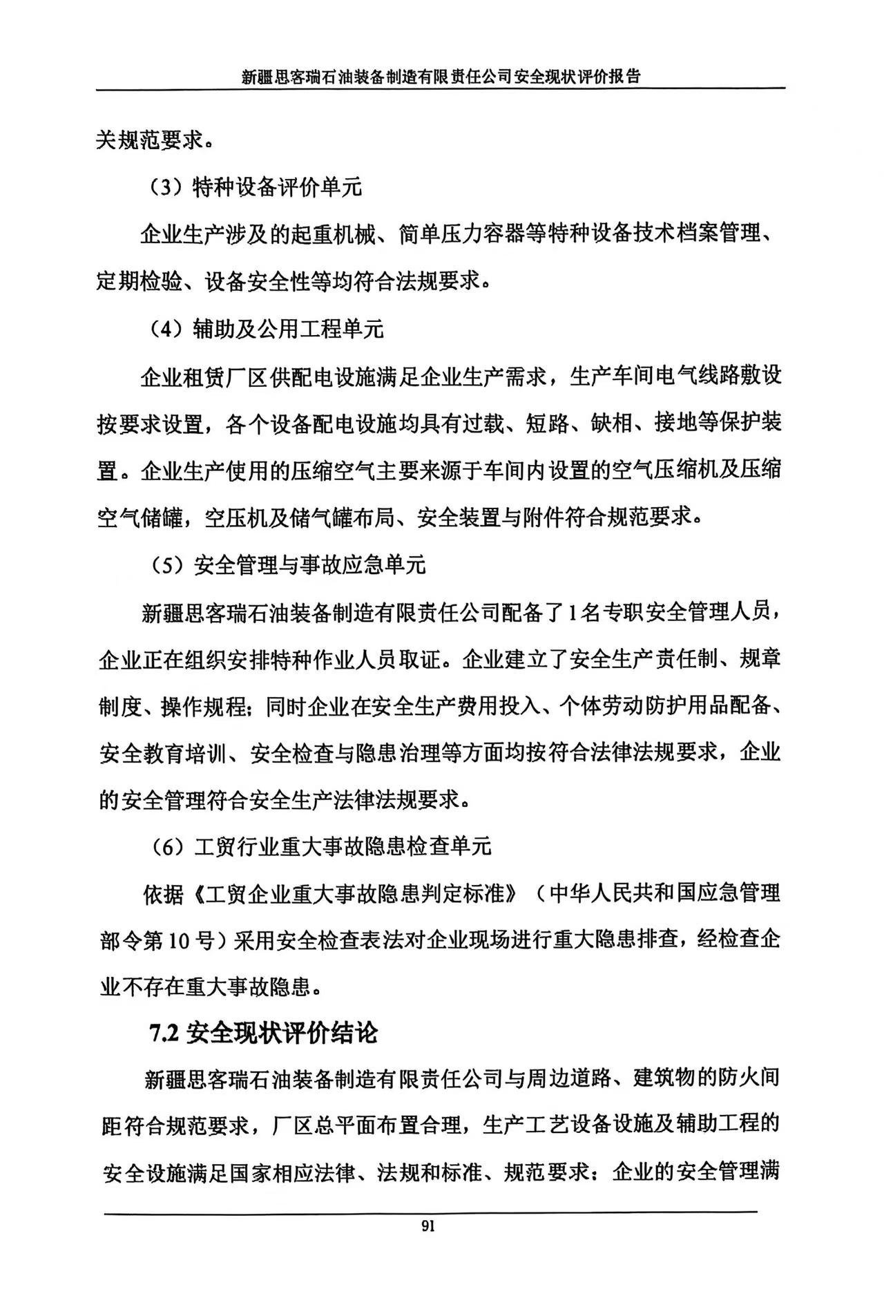 新疆思客瑞石油裝備制造有限責任公司安全現(xiàn)狀評價報告