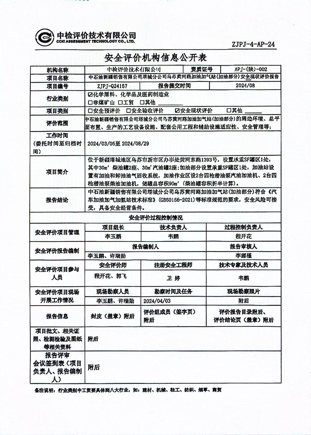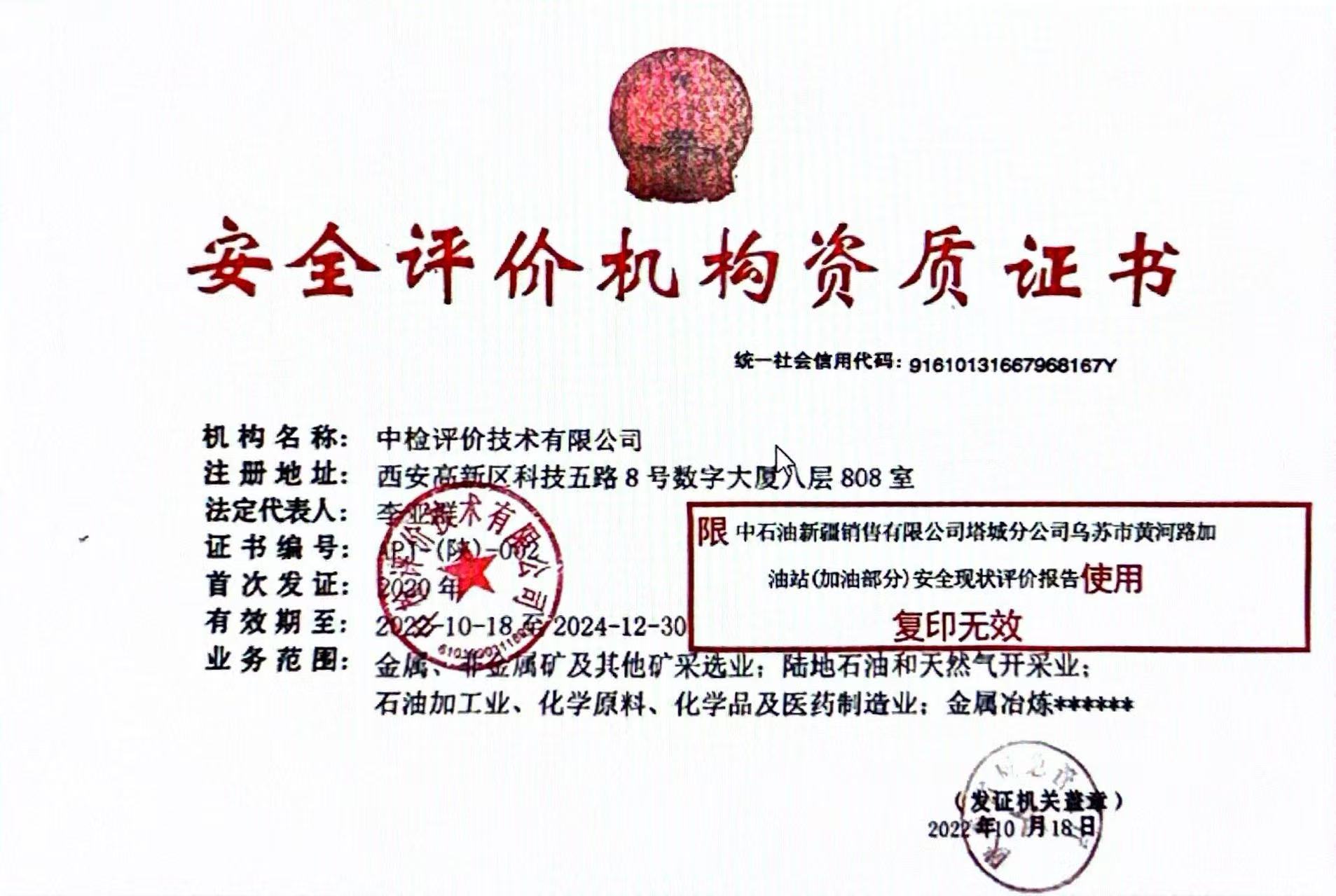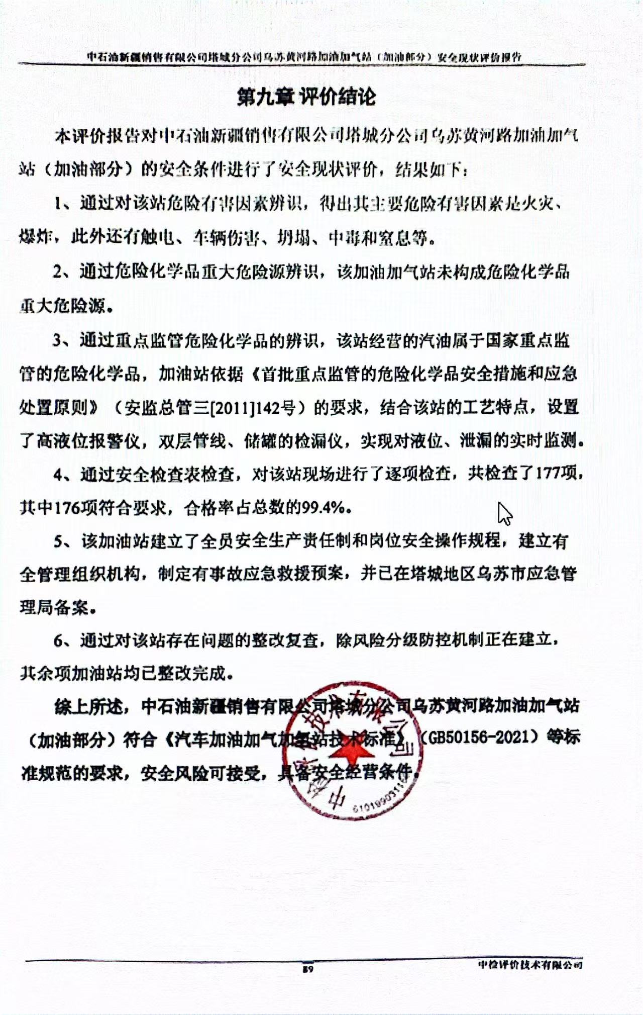 中石油新疆銷售有限公司塔城分公司烏蘇黃河路加油加氣站(加油部分)安全現(xiàn)狀評價報告