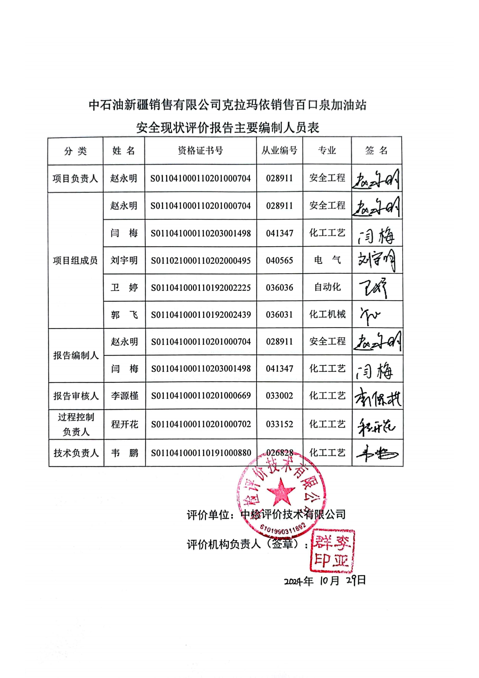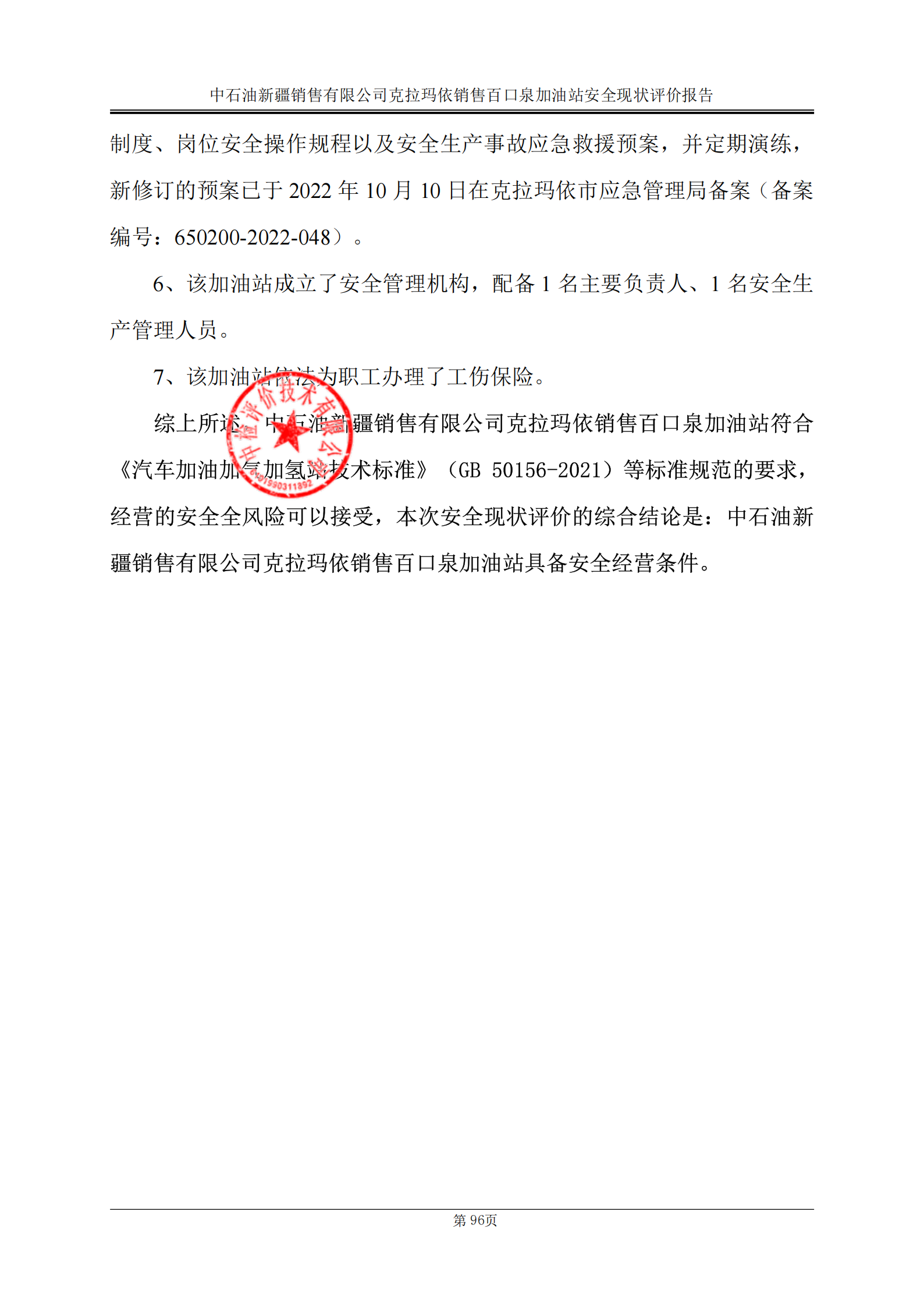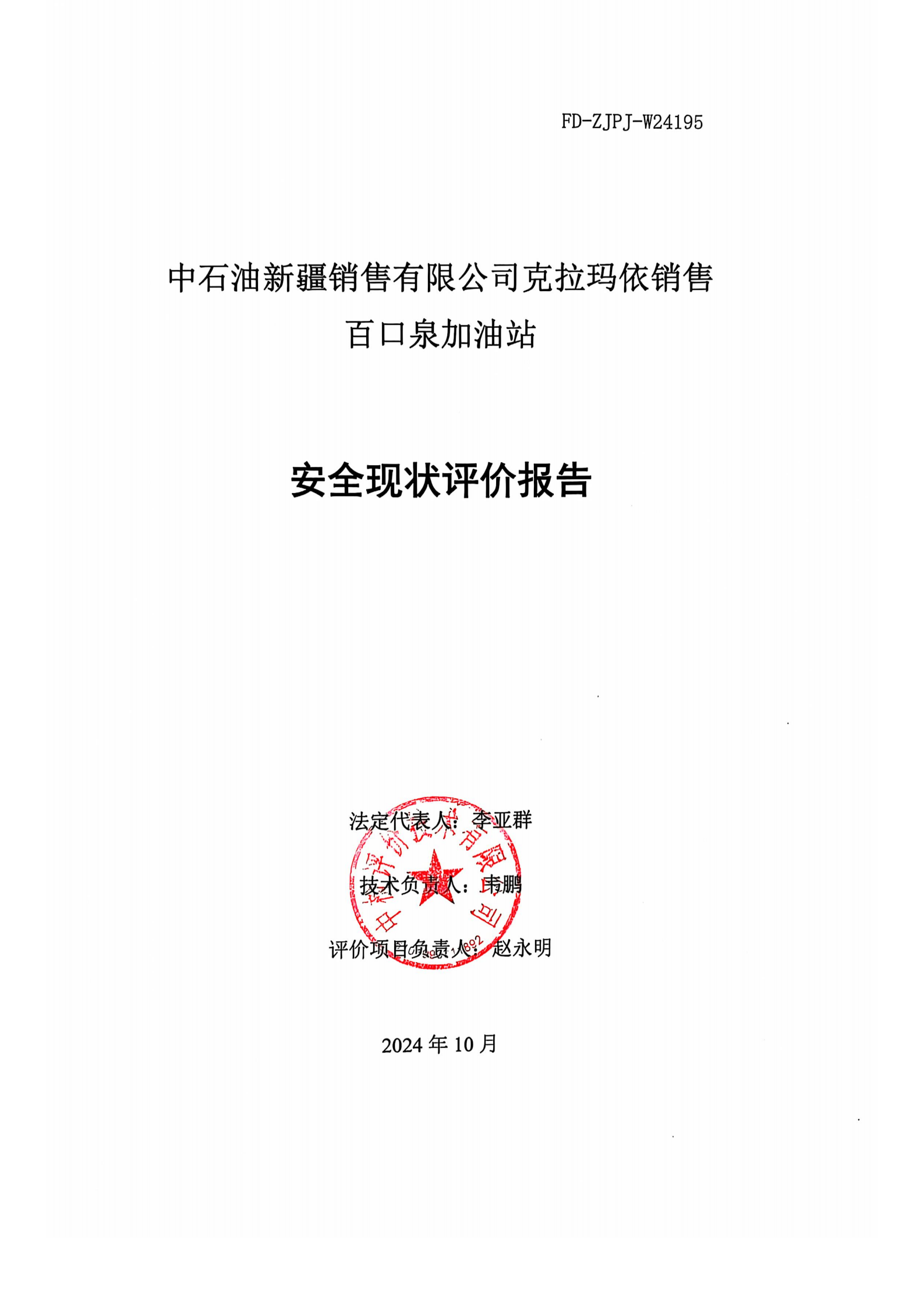 中石油新疆銷售有限公司克拉瑪依銷售百口泉加油站安全現(xiàn)狀評價報告