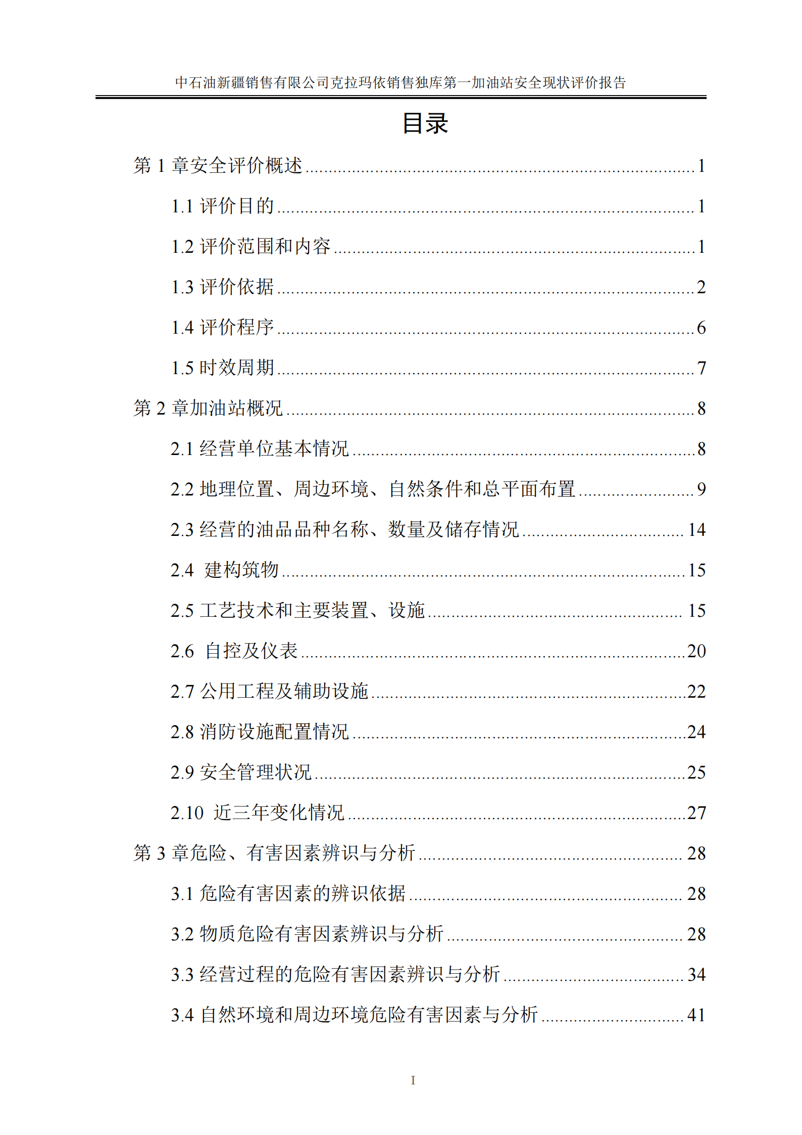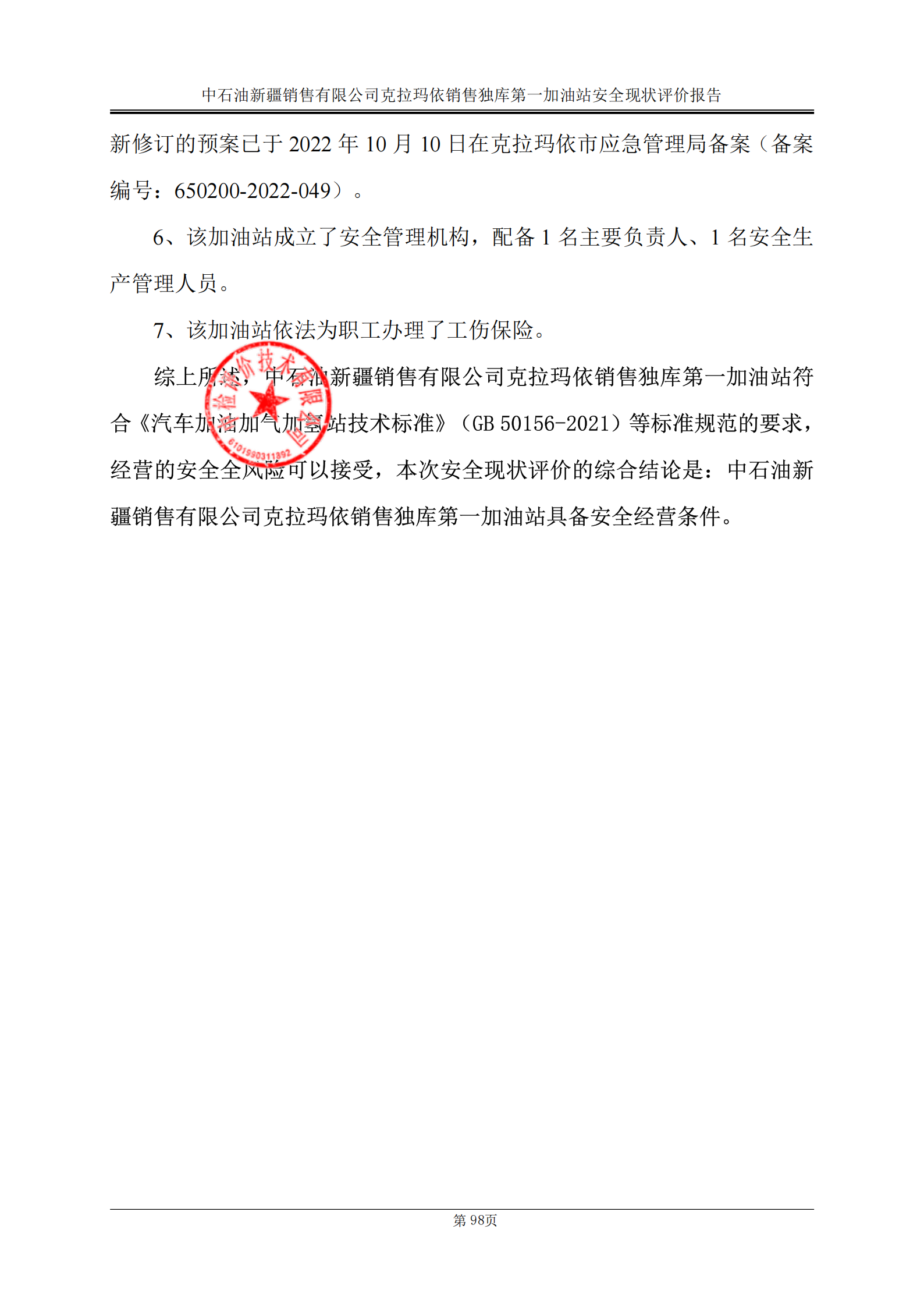 中石油新疆銷售有限公司克拉瑪依銷售獨(dú)庫第一加油站安全現(xiàn)狀評價(jià)報(bào)告