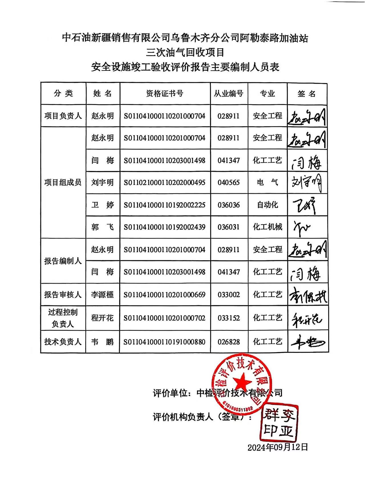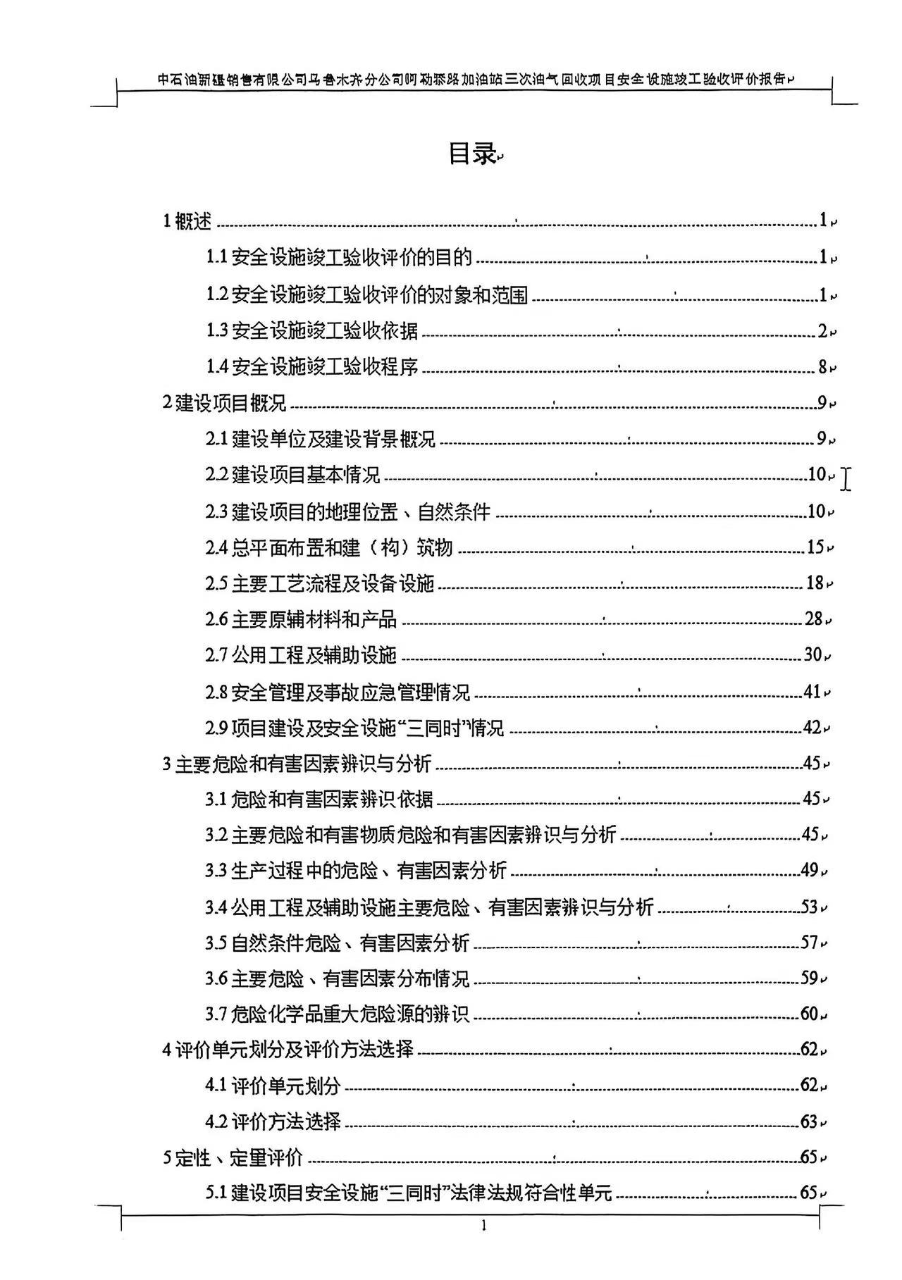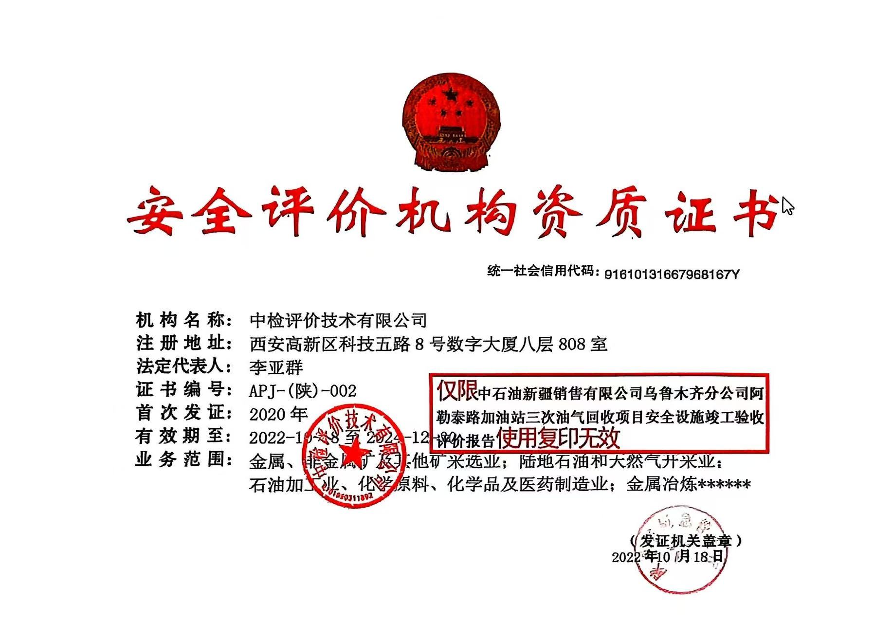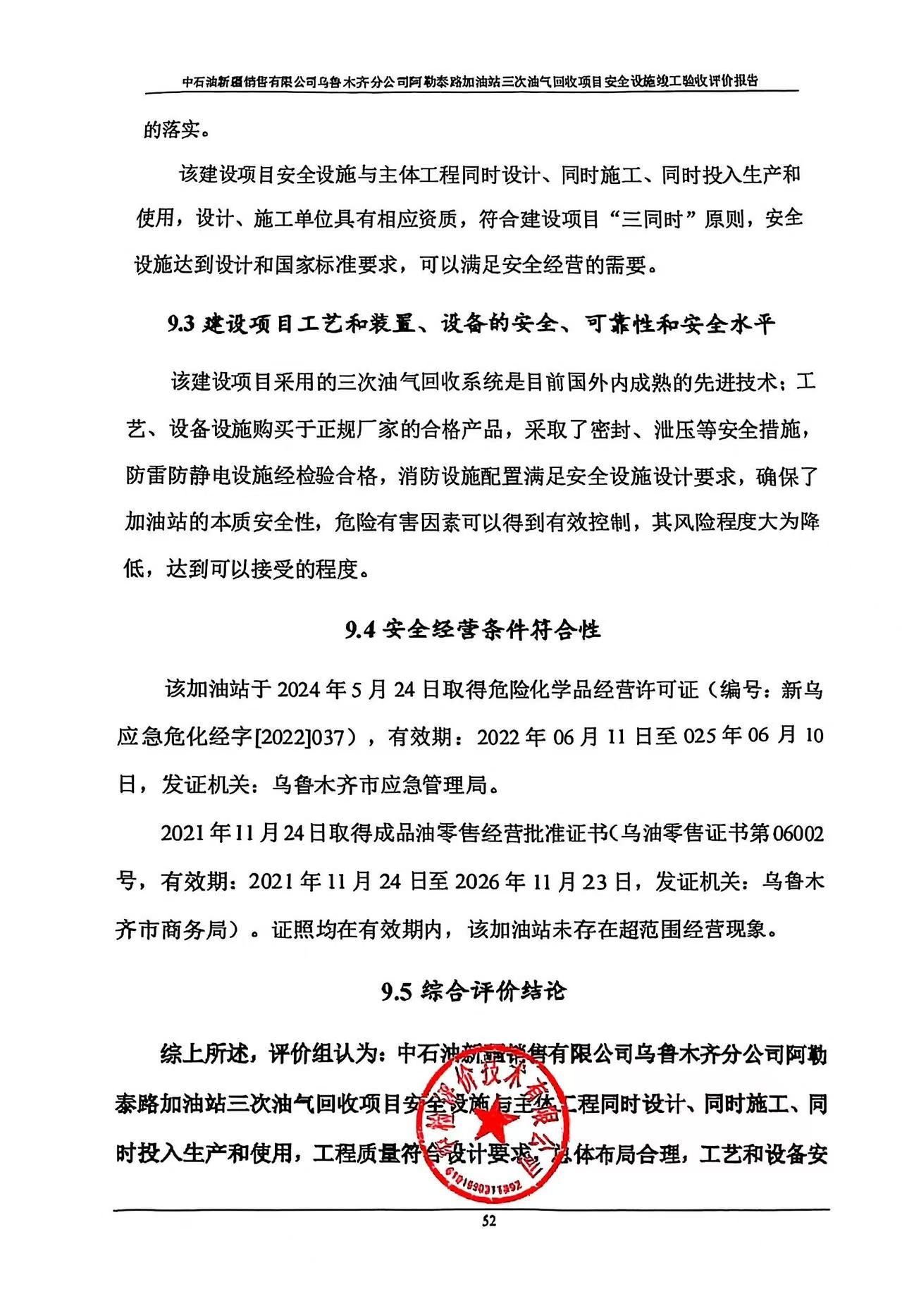 中石油新疆銷售有限公司烏魯木齊分公司阿勒泰路加油站三次油氣回收項目安全設(shè)施竣工驗收評價報告