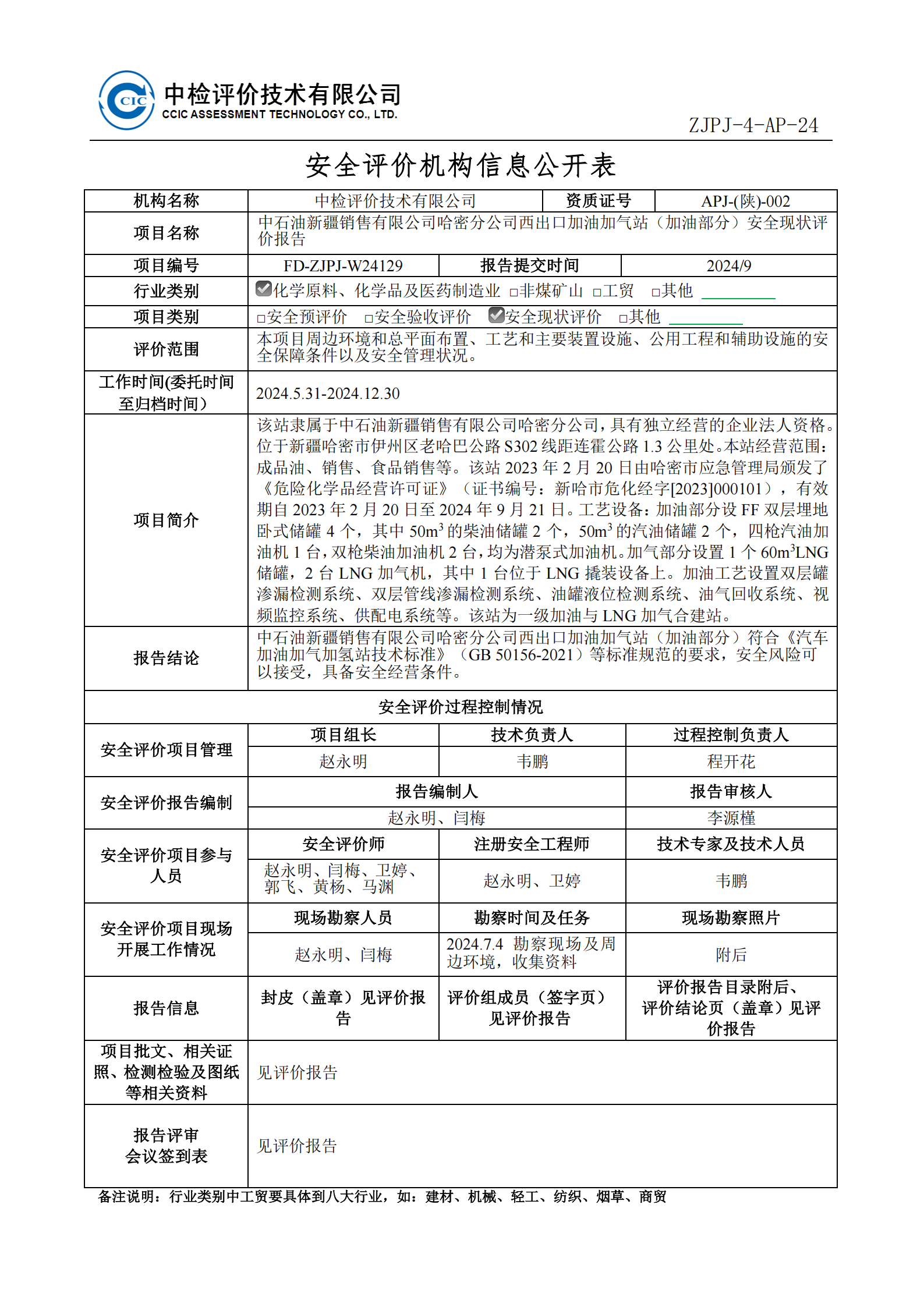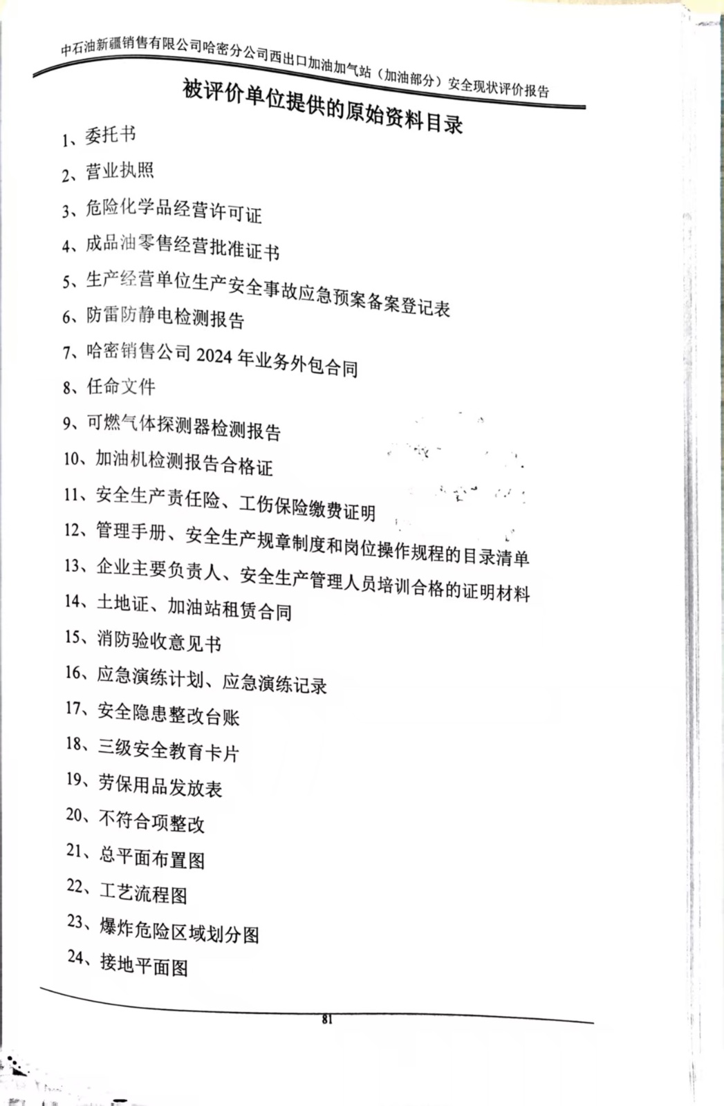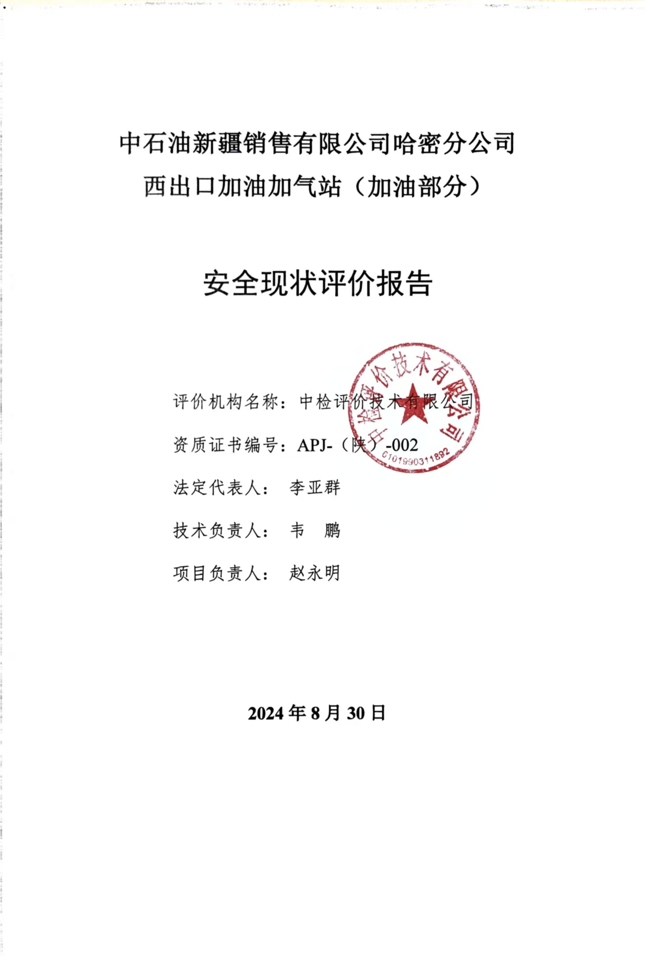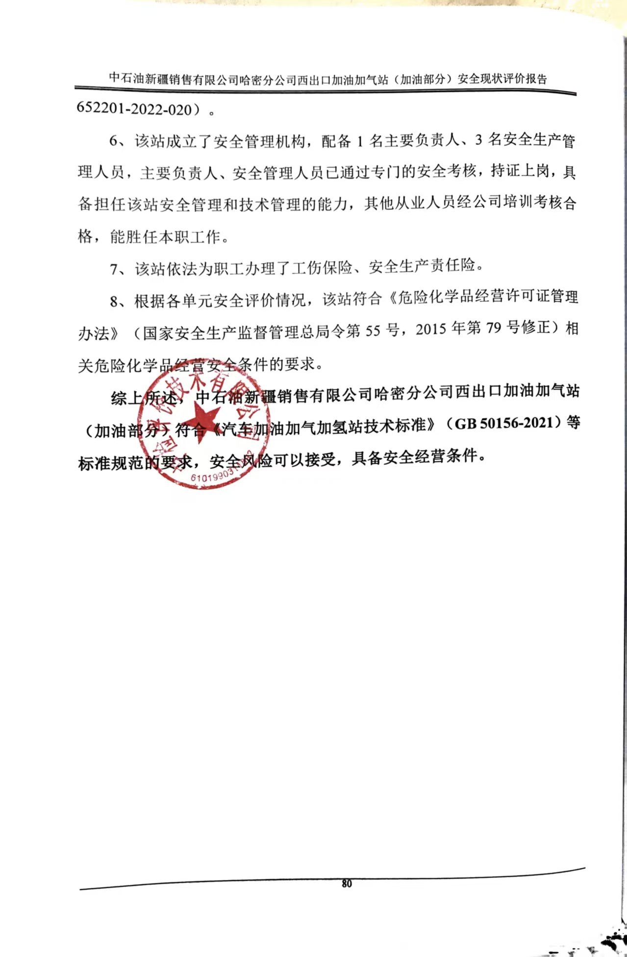 中石油新疆銷售有限公司哈密分公司西出口加油加氣站(加油部分)安全現(xiàn)狀評價報告