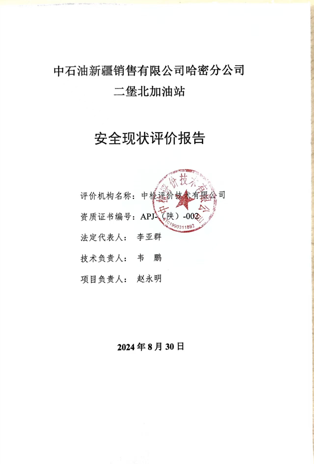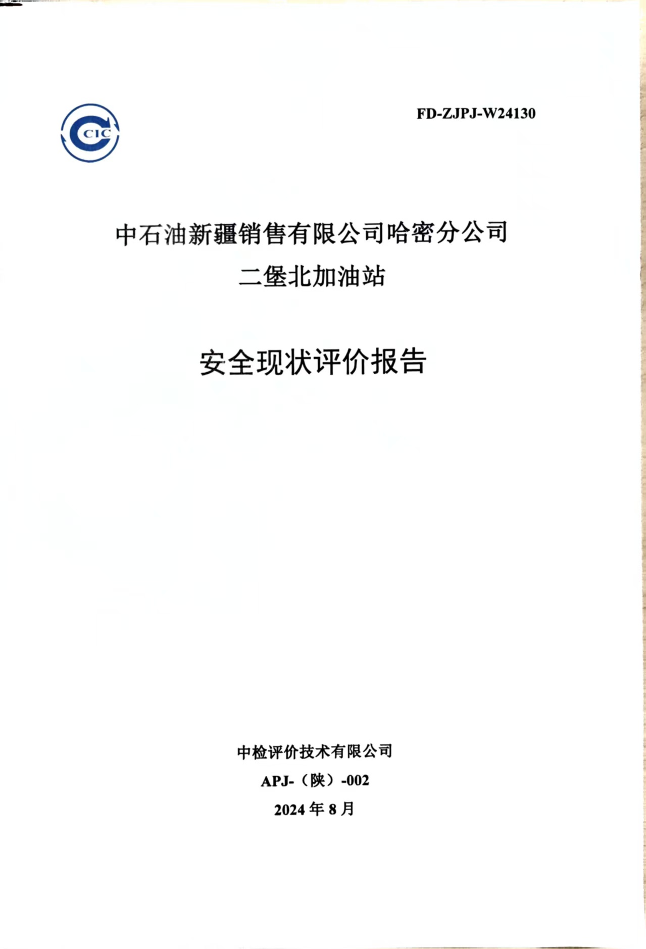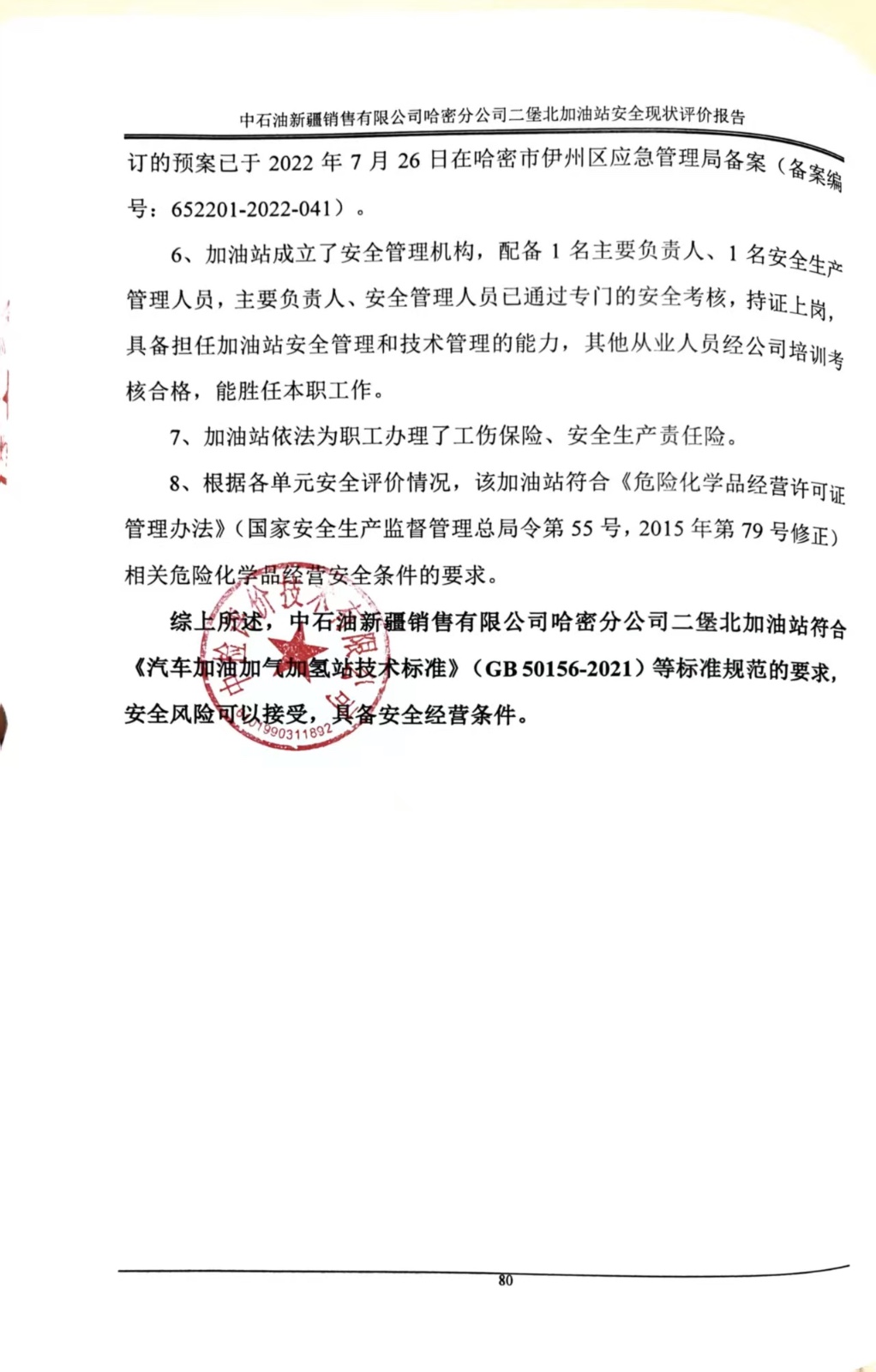 中石油新疆銷售有限公司哈密分公司二堡北加油站安全現(xiàn)狀評價報告