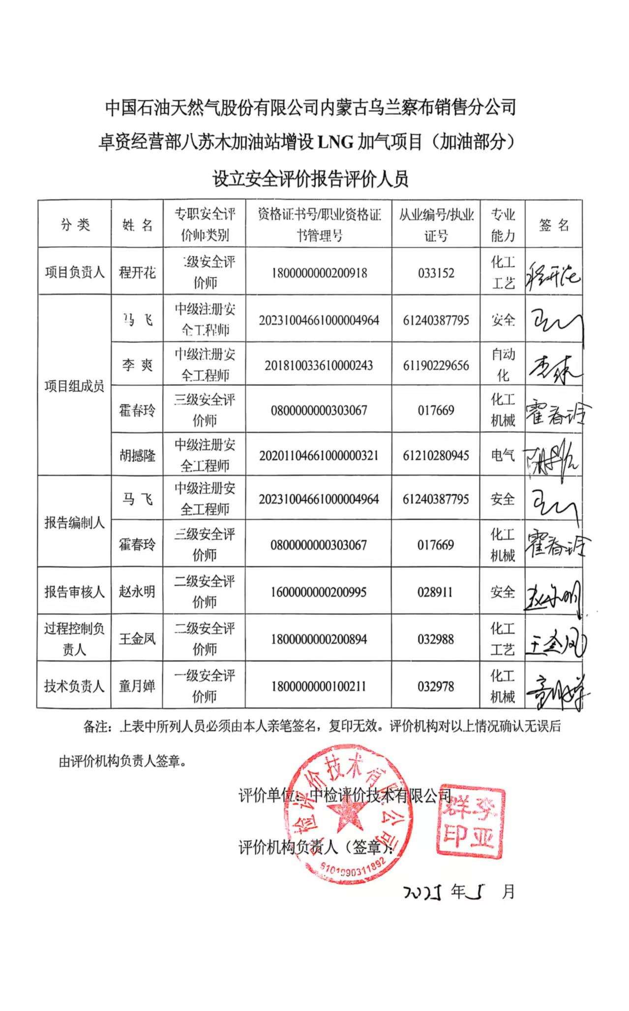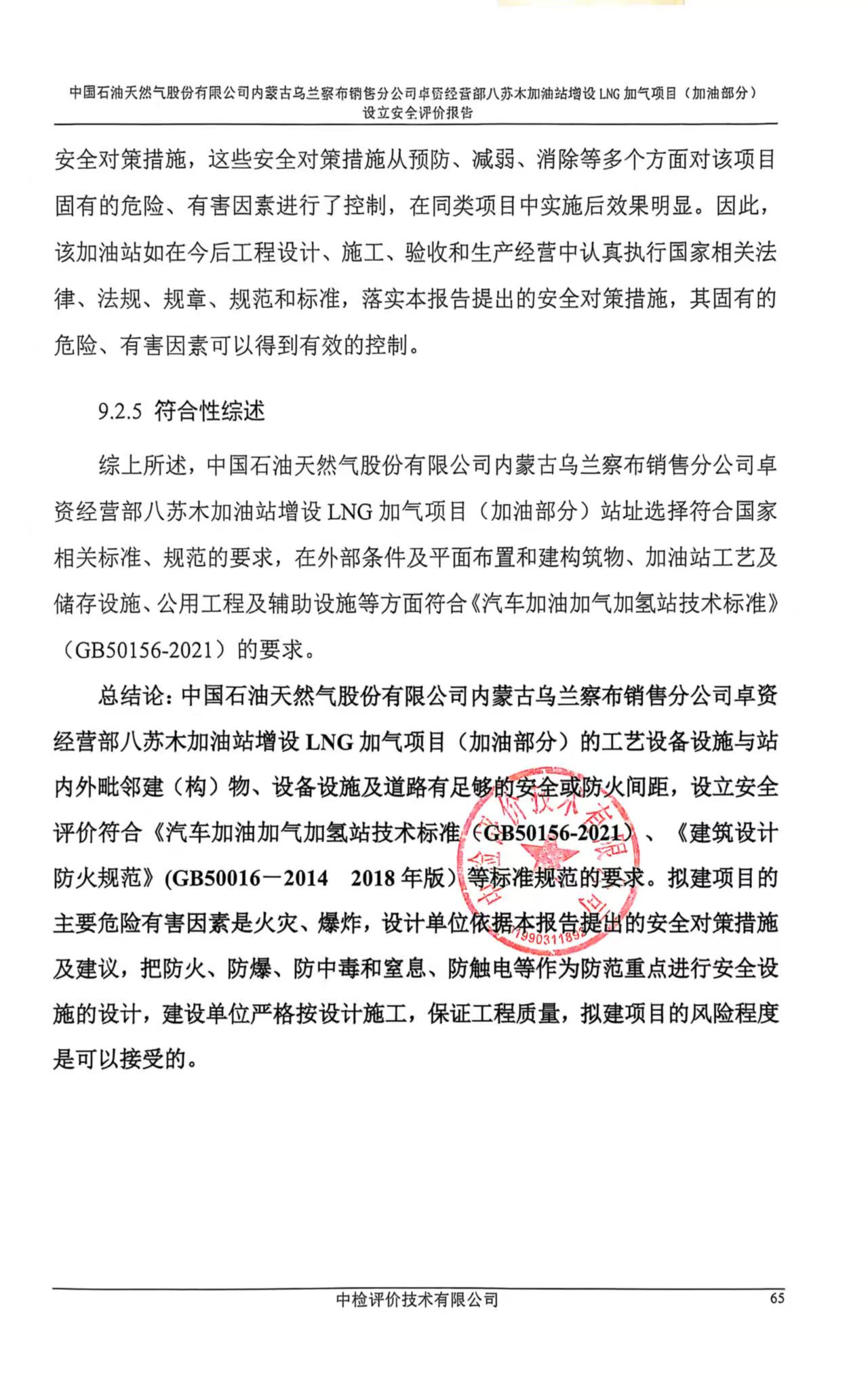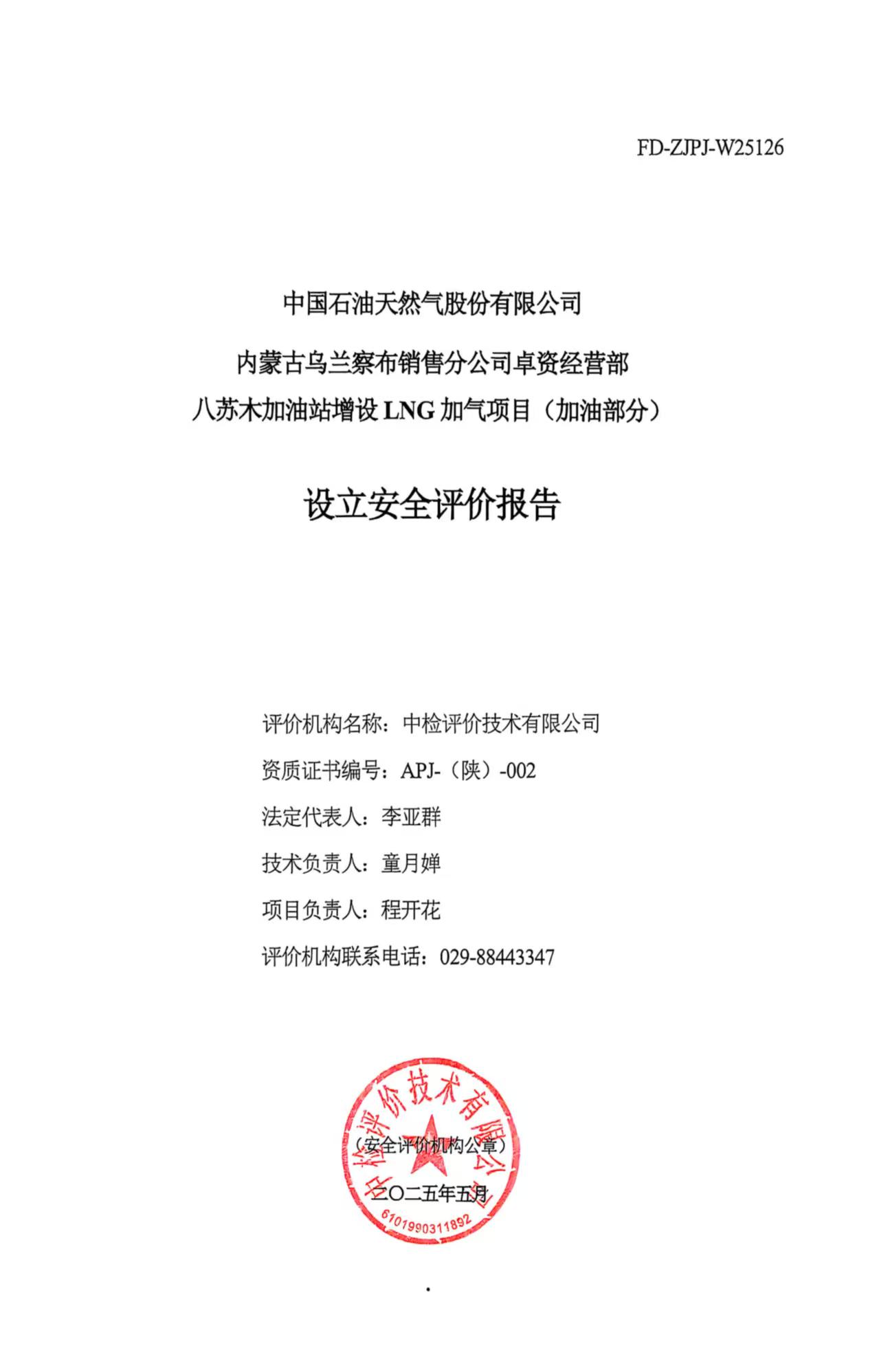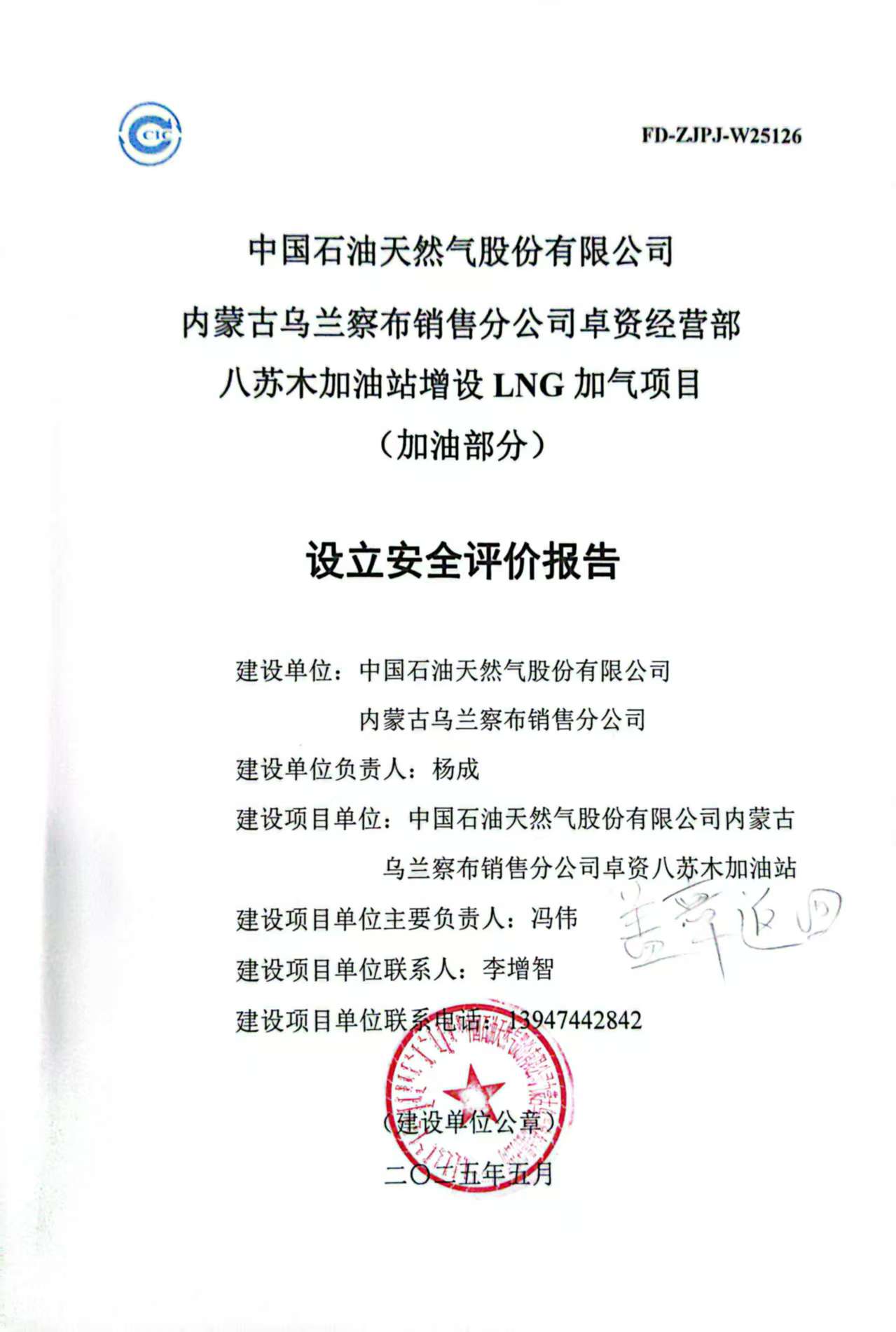 中國(guó)石油天然氣股份有限公司內(nèi)蒙古烏蘭察布銷售分公司卓資經(jīng)營(yíng)部八蘇木加油站增設(shè) LNG 加氣項(xiàng)目(加油部分)設(shè)立安全評(píng)價(jià)報(bào)告