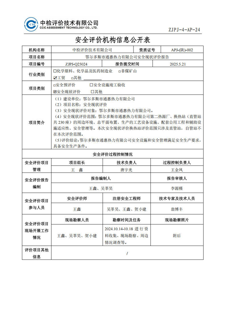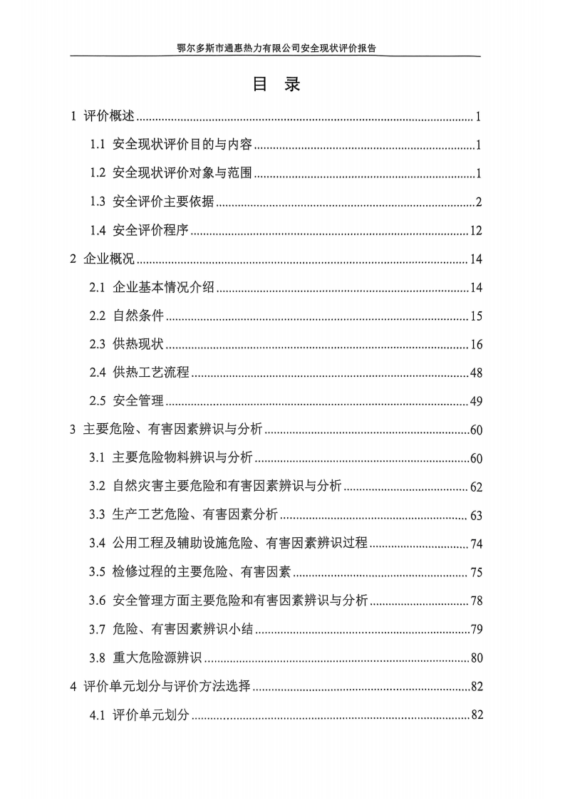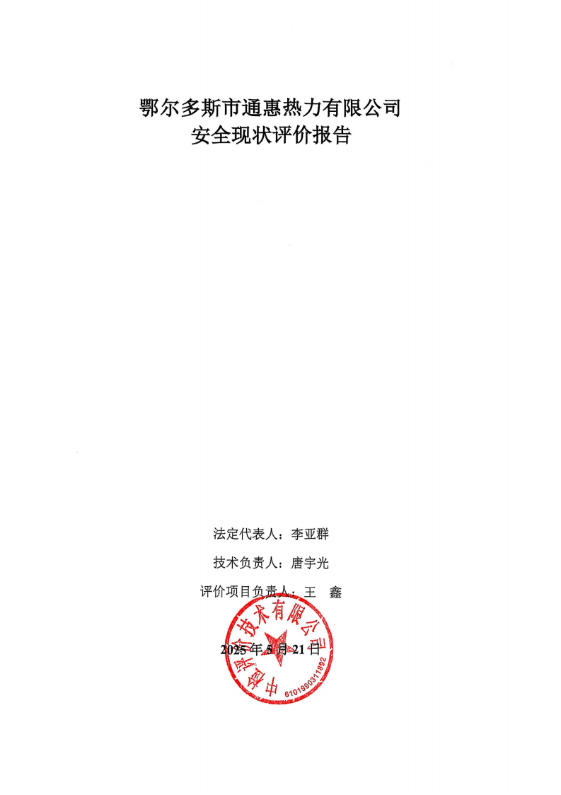 鄂爾多斯市通惠熱力有限公司安全現(xiàn)狀評價報告