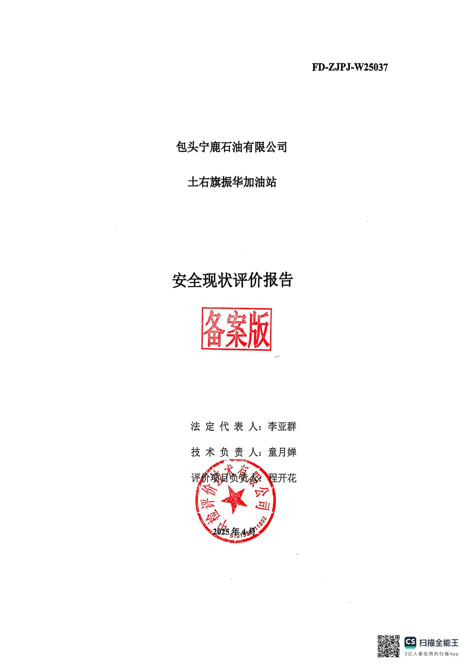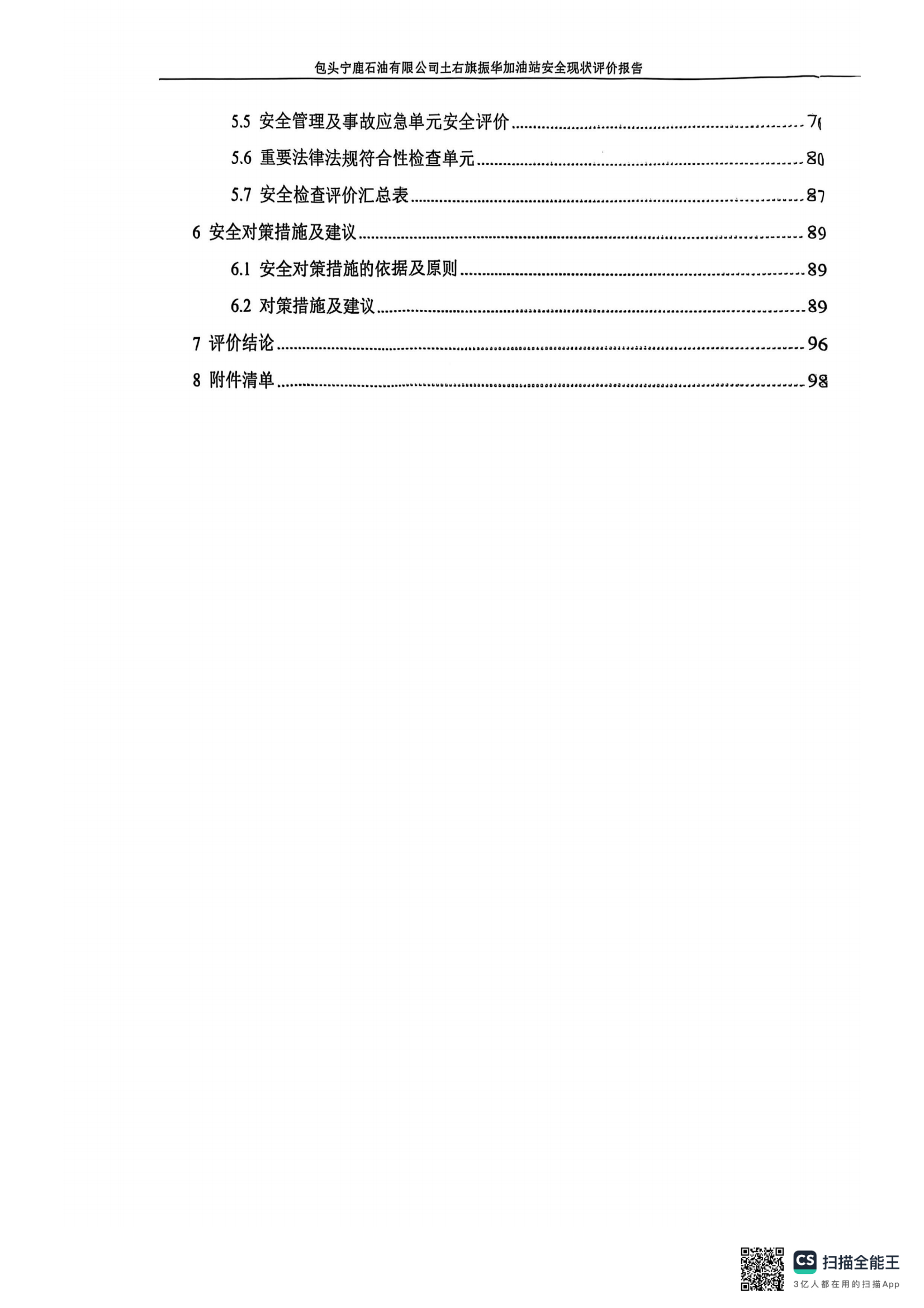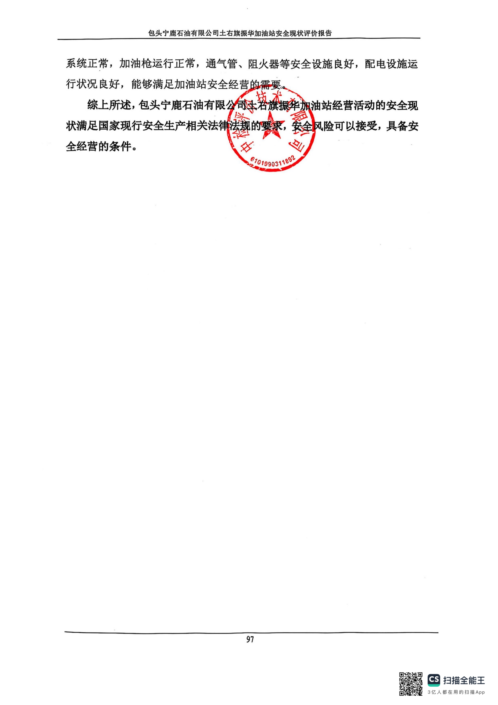 包頭寧鹿石油有限公司土右旗振華加油站安全現(xiàn)狀評價