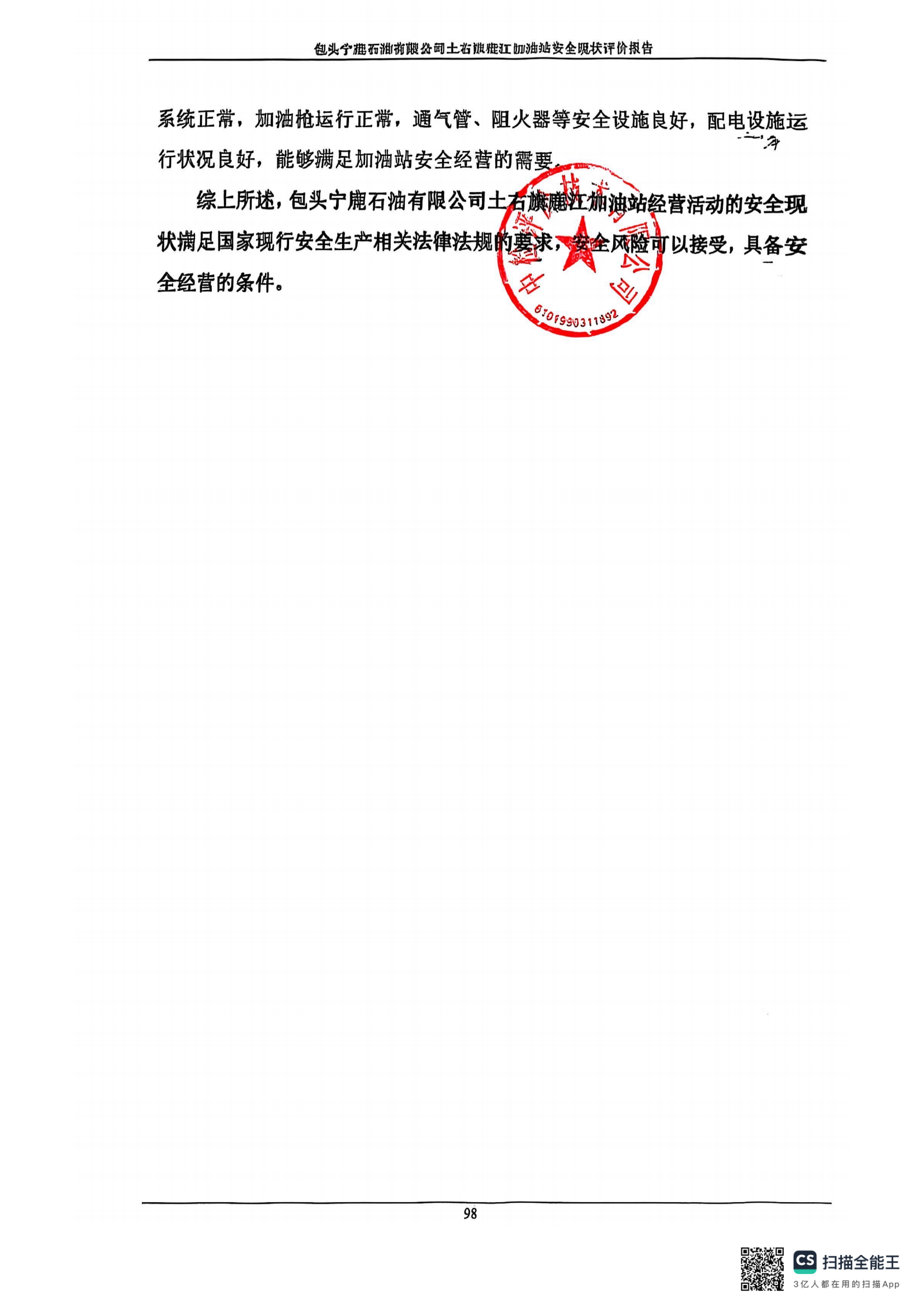 包頭寧鹿石油有限公司土右旗鹿江加油站安全現(xiàn)狀評價