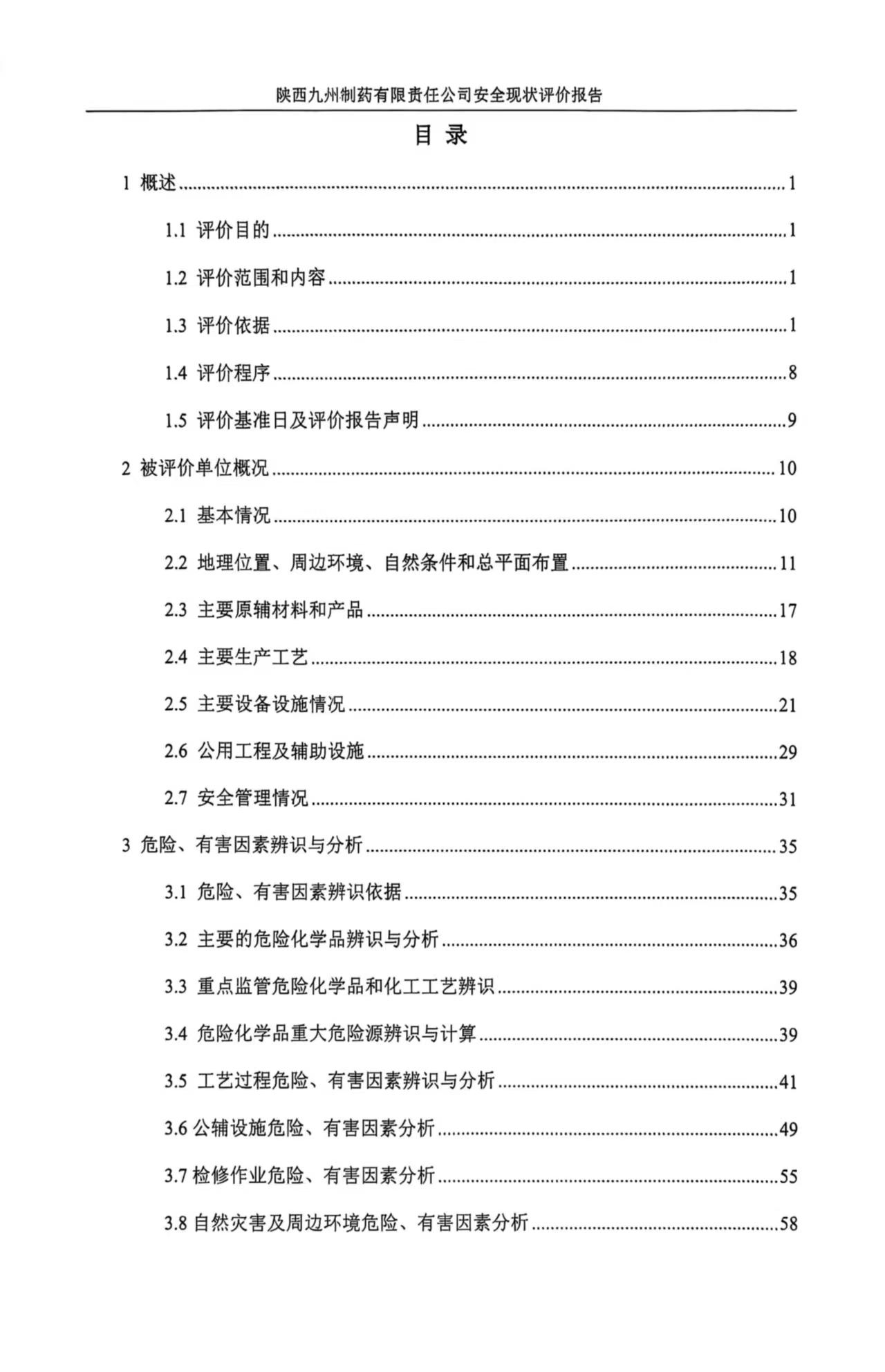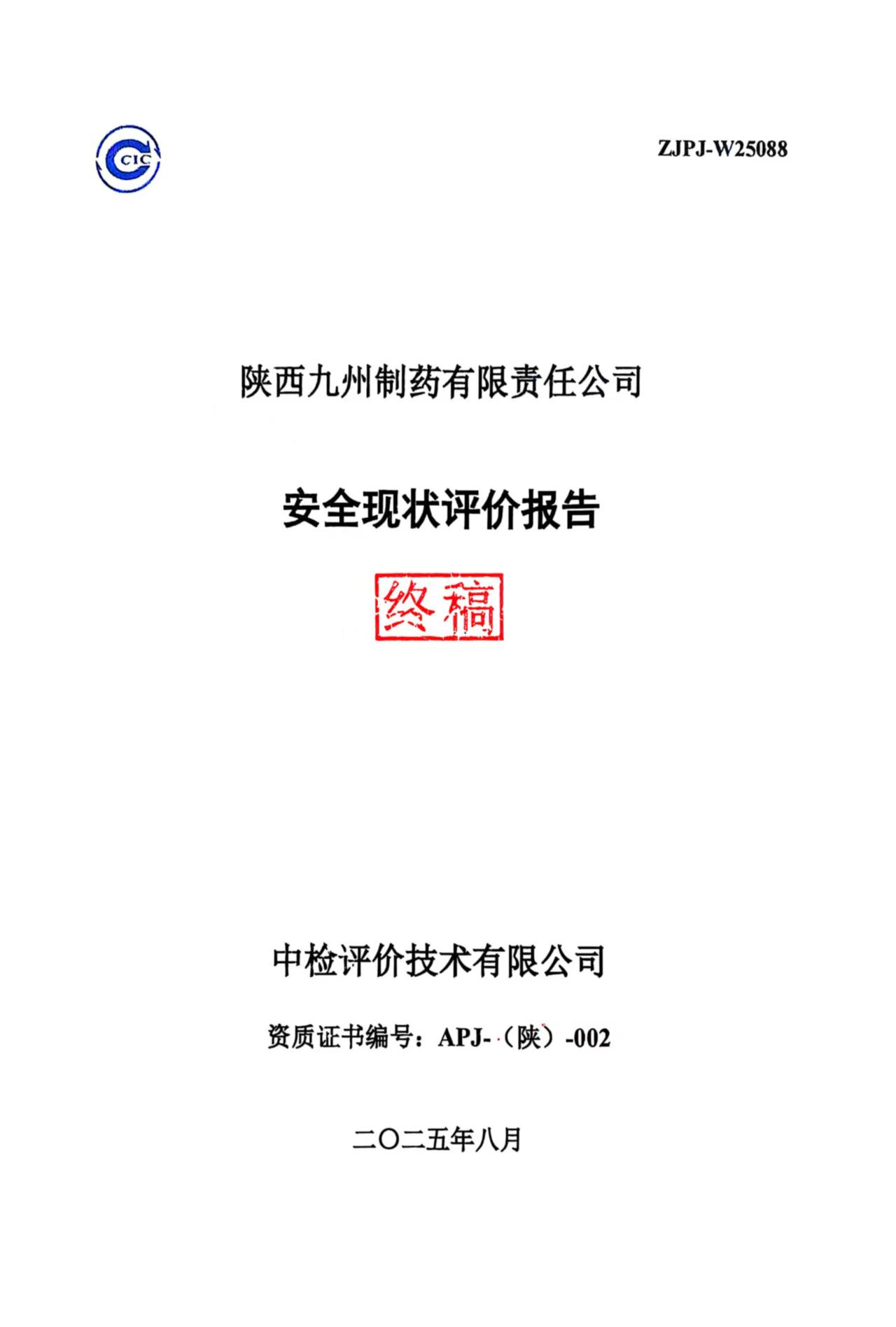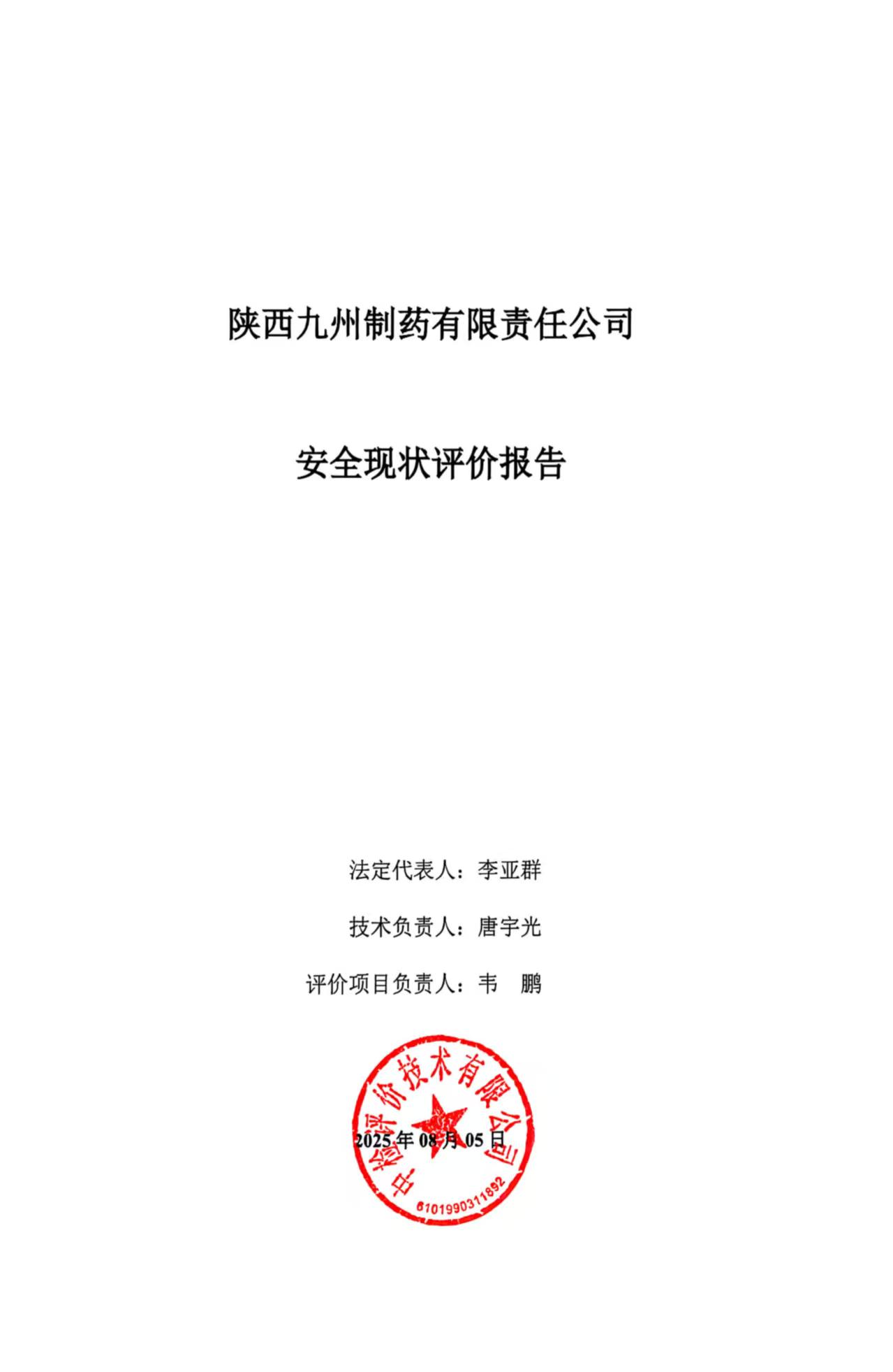 陜西九州制藥有限責(zé)任公司安全現(xiàn)狀評(píng)價(jià)報(bào)告