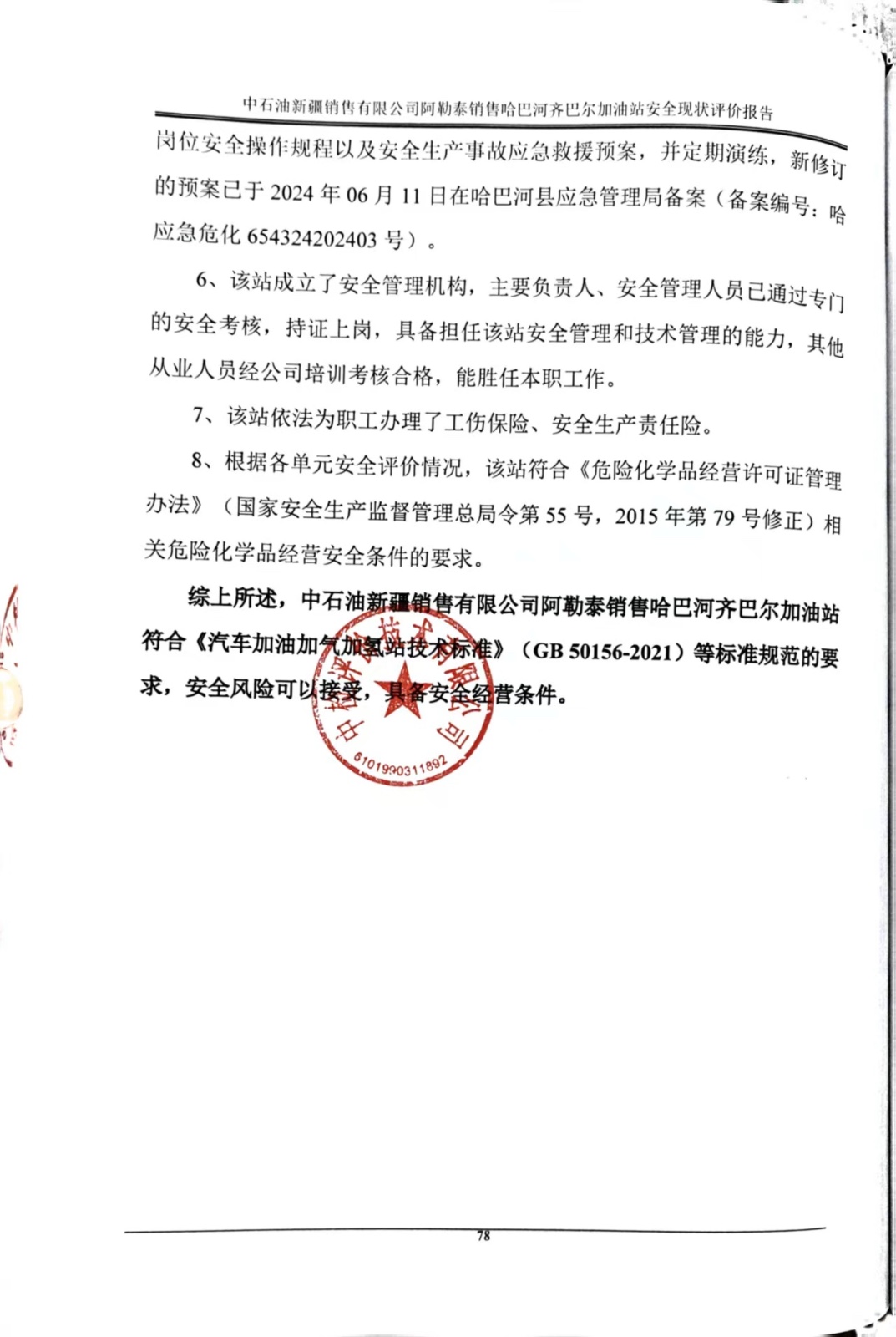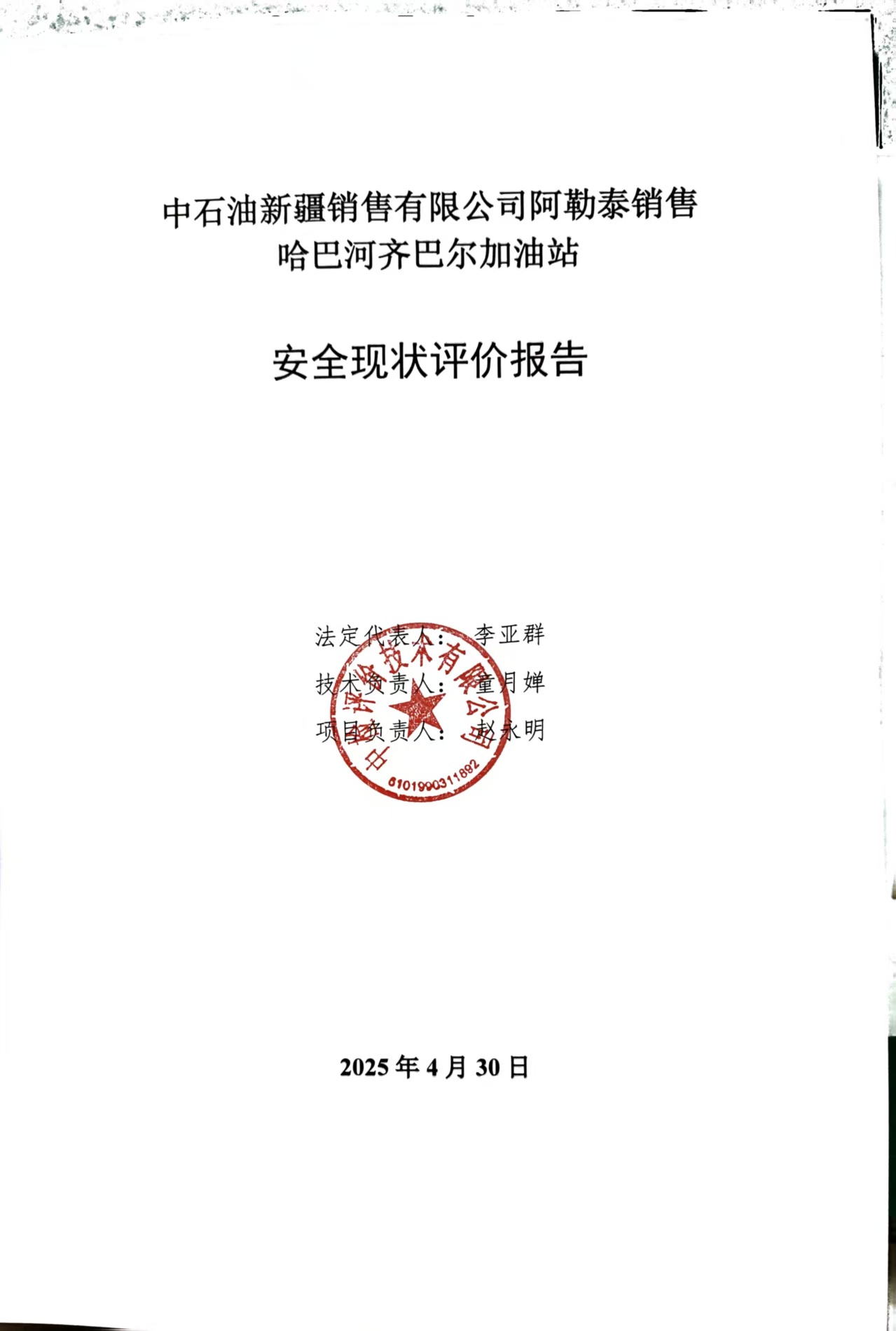 中石油新疆銷售有限公司阿勒泰銷售哈巴河齊巴爾加 油站安全現(xiàn)狀評價報告