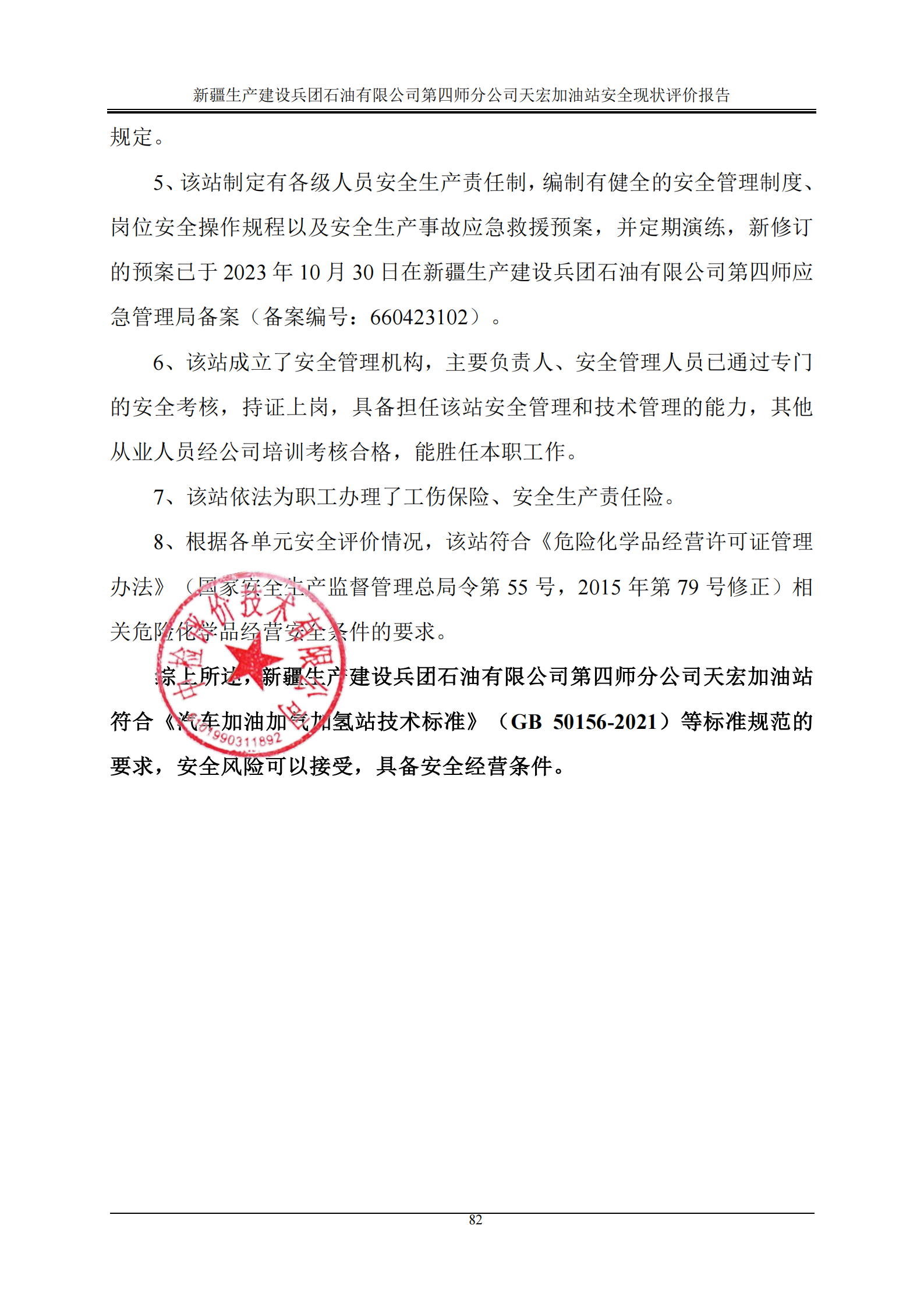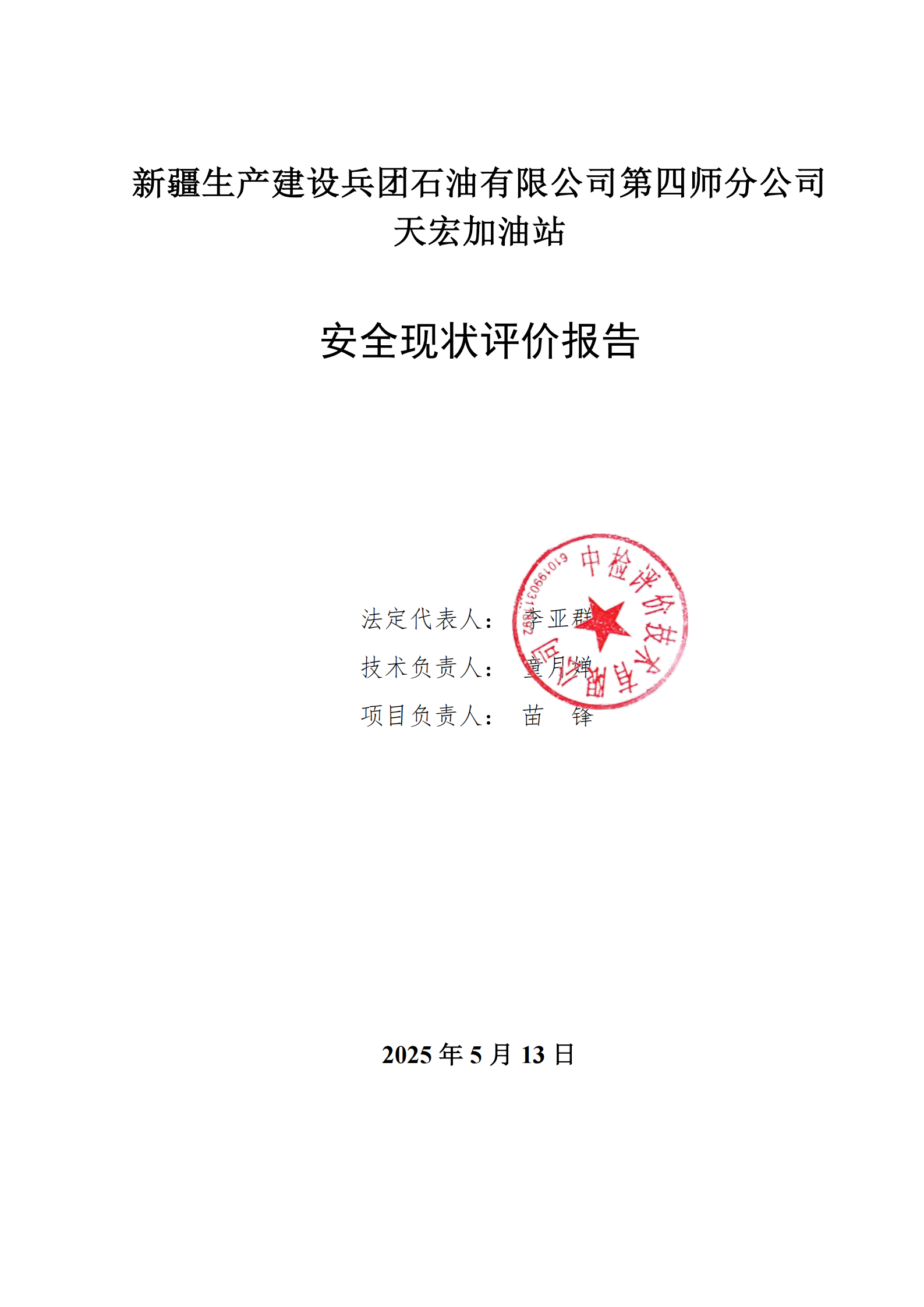 新疆生產(chǎn)建設(shè)兵團(tuán)石油有限公司第四師分公司天宏加油站安全現(xiàn)狀評價報告