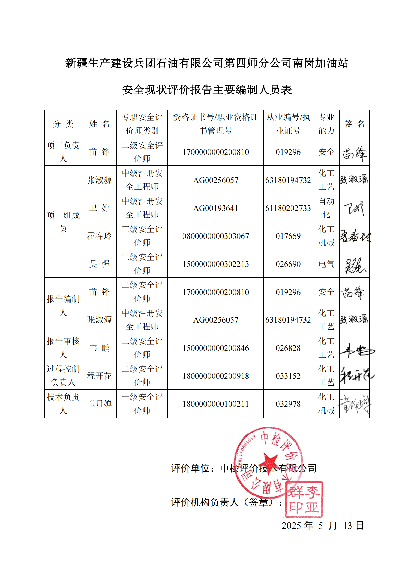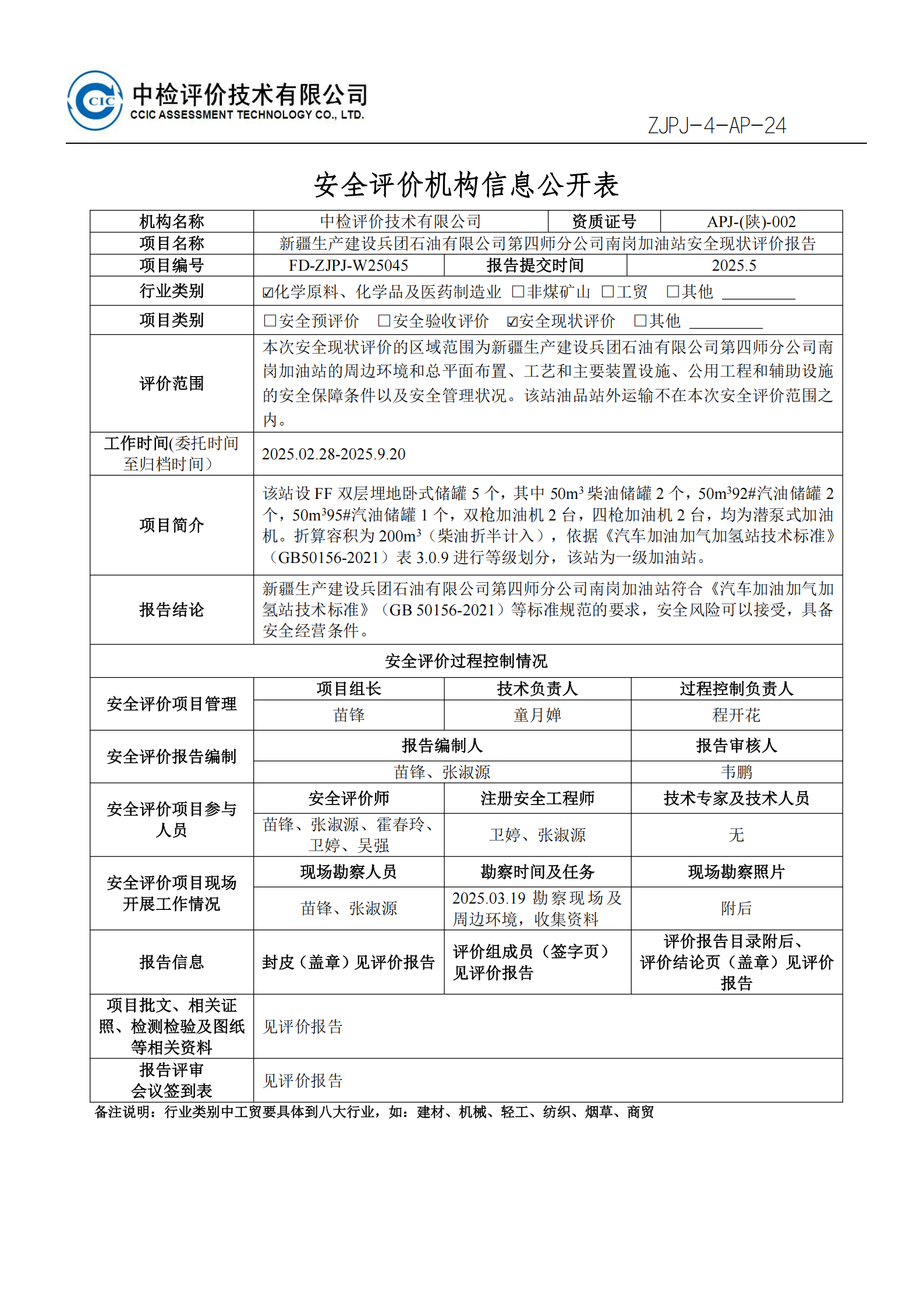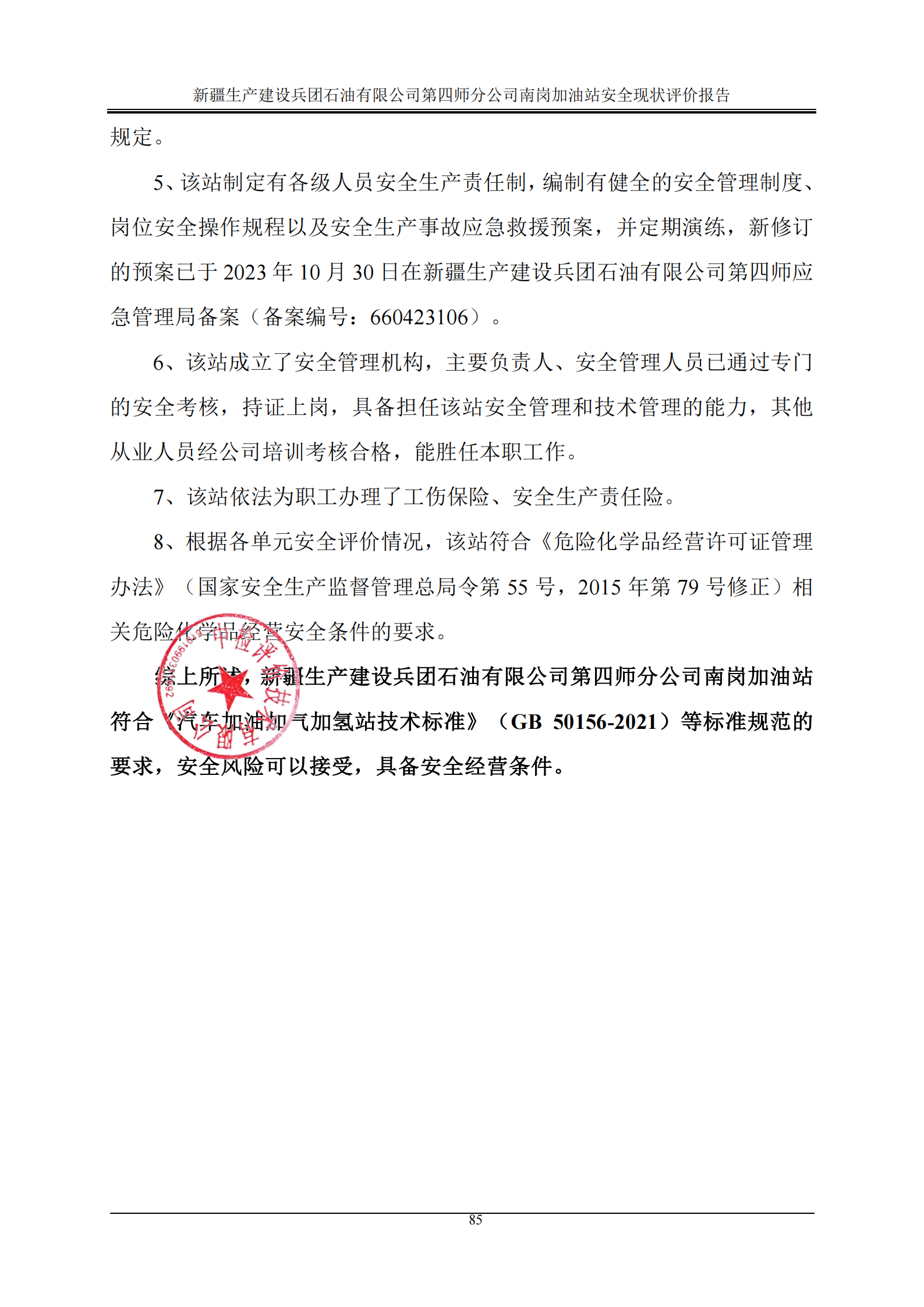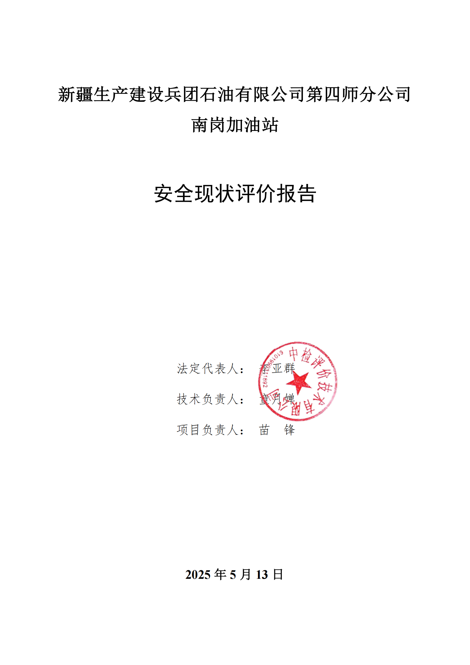 新疆生產(chǎn)建設兵團石油有限公司第四師分公司南崗加油站安全現(xiàn)狀評價報告