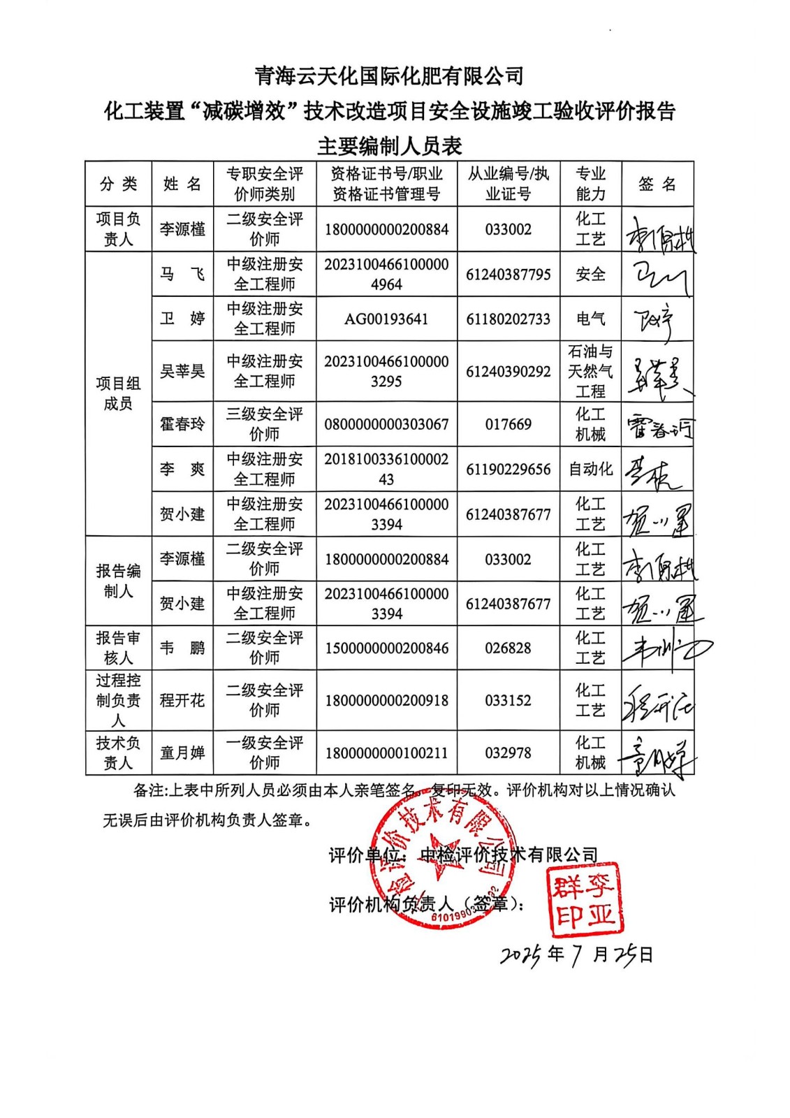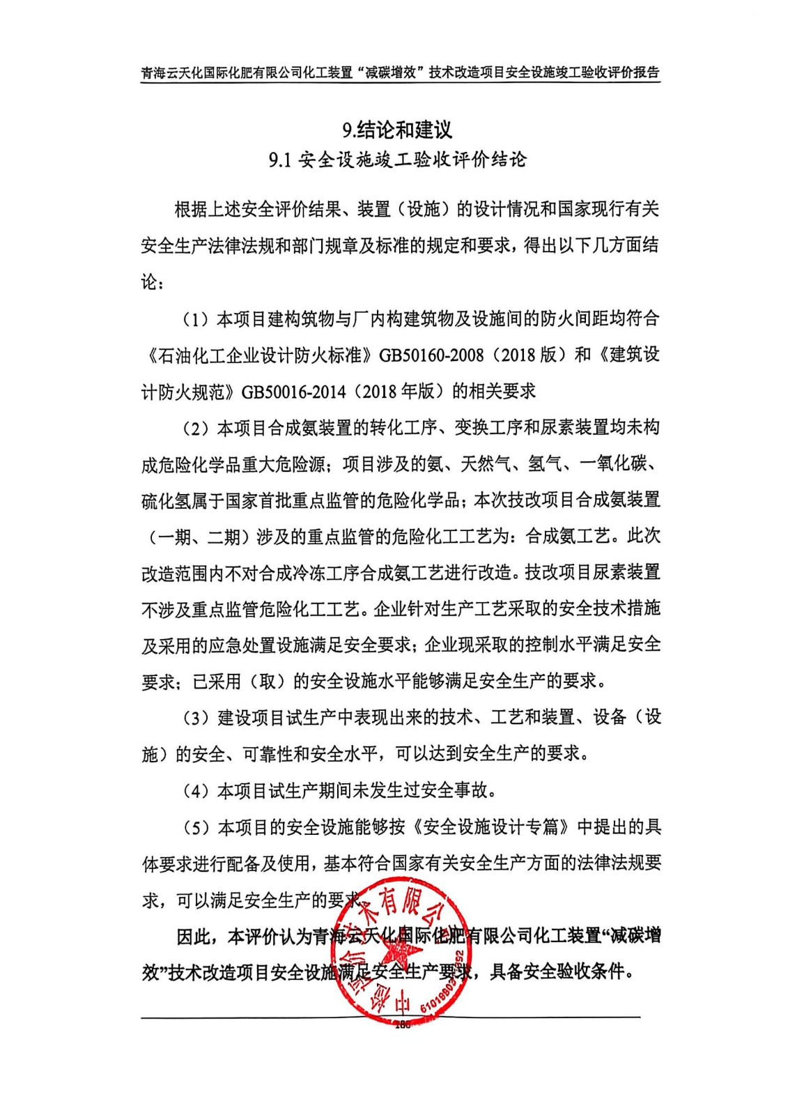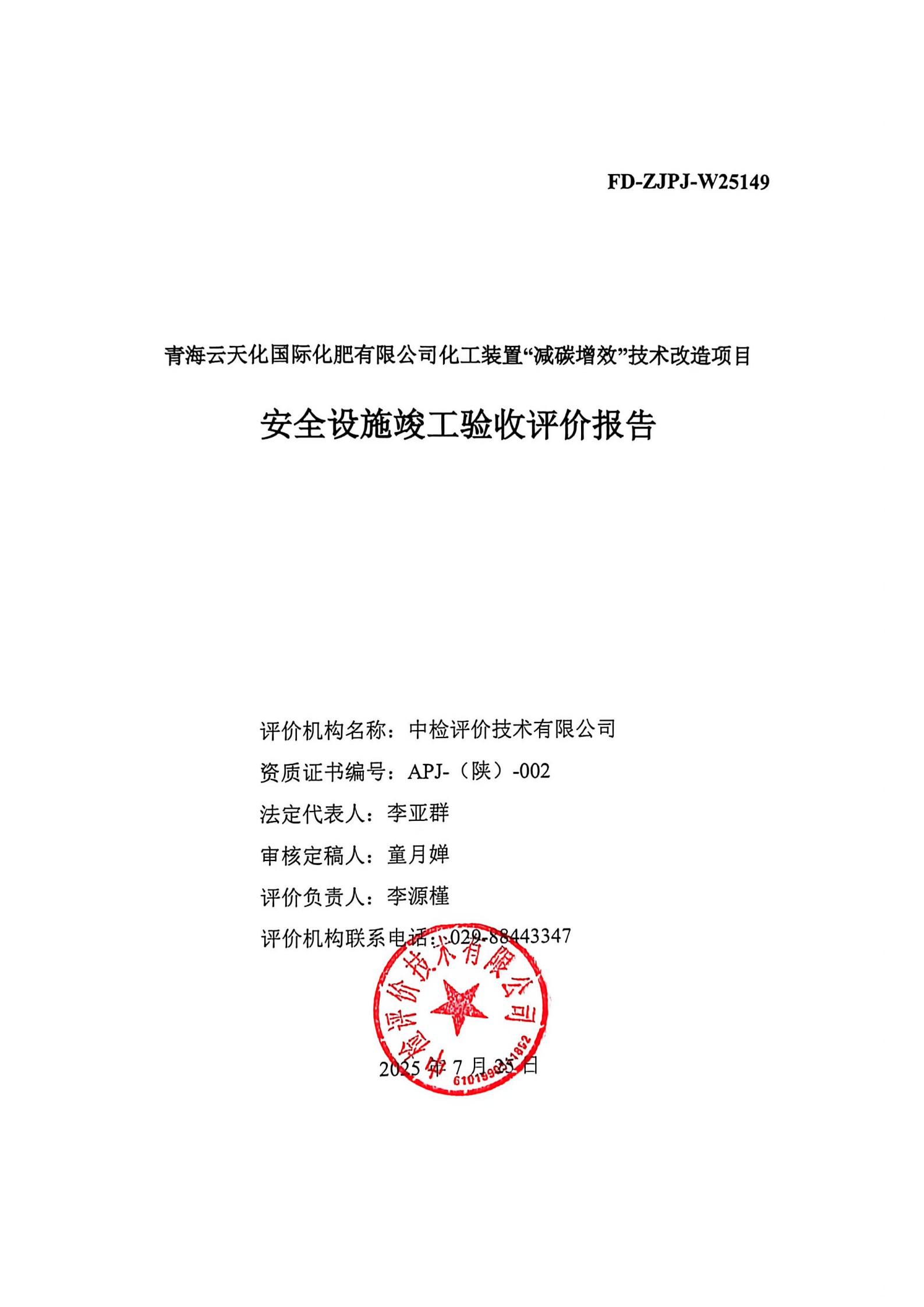 青海云天化國際化肥有限公司化工裝置“減碳增效”技術改造項目安全設施竣工驗收評價報告
